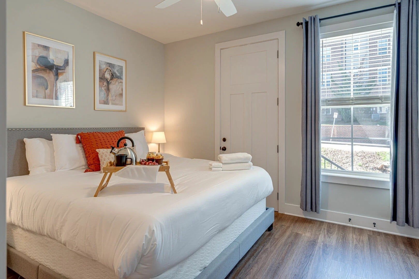 Located in the sought-after Melrose neighborhood, this contemporary 2-bedroom, 2-bath residence offers modern design, thoughtful finishes, and unbeatable convenience. Just minutes from Broadway and within walking distance of dining, shopping, and entertainment, Mesmerize Melrose delivers both lifestyle and comfort in the heart of Nashville. The open-concept living area features a bright and welcoming atmosphere with smart TV, designer furnishings, and seamless flow into the modern kitchen. Outfitted with stainless steel appliances, ample counter space, and bar seating, the kitchen makes everyday cooking and entertaining easy. Both bedrooms are generously sized and feature king beds, closets, and smart TVs. The primary suite includes a private en-suite bath with dual vanity and walk-in shower, while the second bedroom enjoys convenient access to a well-appointed full bath. Residents also enjoy access to a shared rooftop deck, ideal for entertaining or relaxing with panoramic city views. Whether enjoying morning coffee, watching the sunset, or taking in the city lights, the rooftop provides a unique outdoor living space. Additional features include in-unit laundry, secure entry, and dedicated parking. With Publix, Hattie B’s, and a variety of restaurants, coffee shops, and nightlife just steps away, this property combines modern living with walkable convenience. A rare opportunity to lease a stylish home in one of Nashville’s most vibrant neighborhoods.