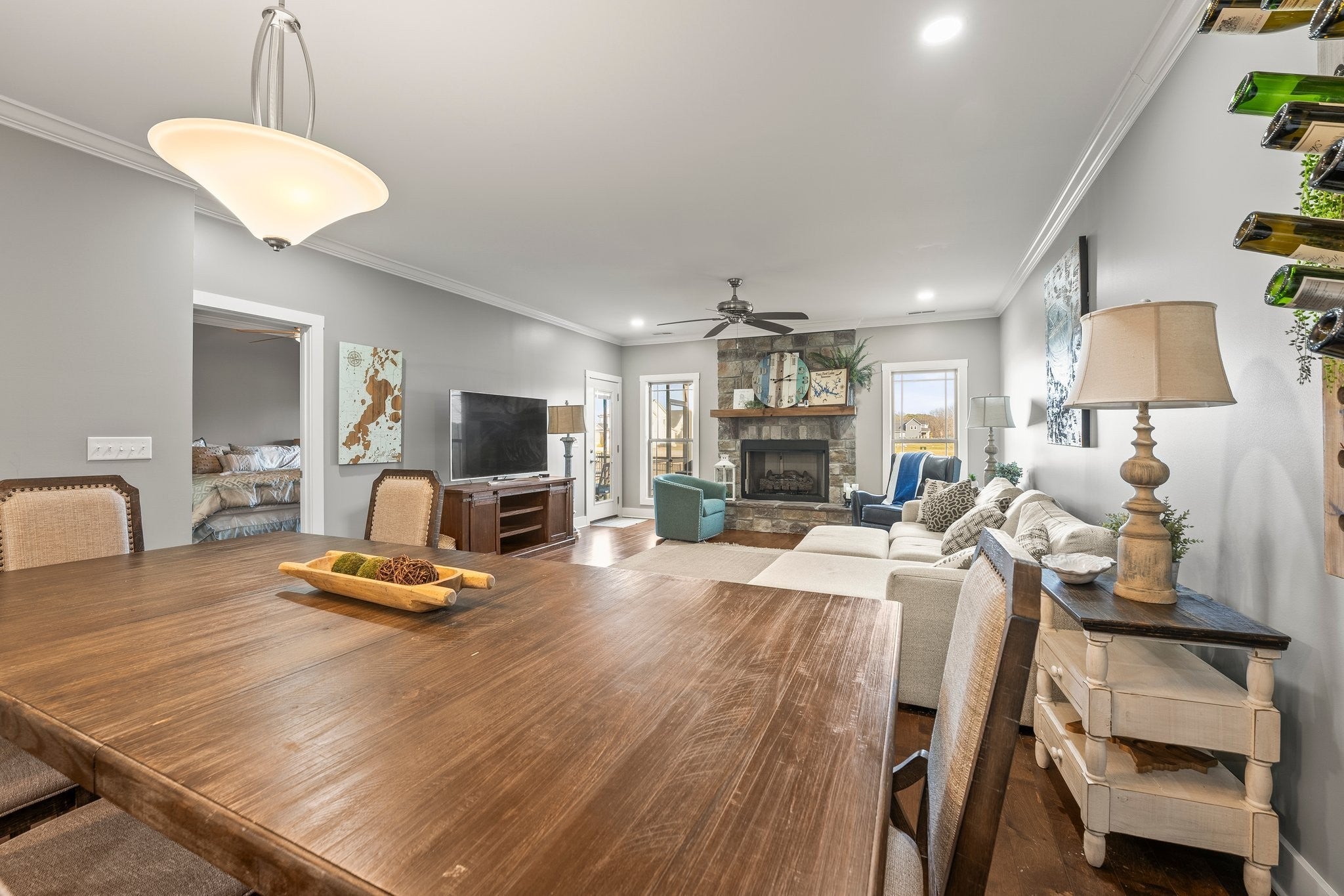 BEST DEAL IN TWIN CREEKS..... PRICE ADJUSTED TO MOVE.... COMES FURNISHED... Welcome to 105 Island Way – a 3 BR / 2.5 bath townhouse in the highly desirable Twin Creeks gated community! This well located property comes fully furnished, having previously been used by the owners as a vacation home (NOT a short-term rental!) With the layout of the community, the attached screen porch (with firepit) overlooks green space and a retention pond—ensuring privacy and an unobstructed view. The property’s open kitchen with granite, custom cabinets, and stainless appliances flows into a large living room with a stacked stone gas fireplace. First-floor owners suite with attached bath and walk-in closet opens right into the screen porch—perfect for enjoying morning coffee and the newspaper! Upstairs bonus room with large windows can be easily converted into a bunk-room to complement the two secondary bedrooms with walk-in closets. The Twin Creeks Community contains three pools, clubhouse, trails, and easy golf-cart access to waterfront restaurant, marina, and public beach.
