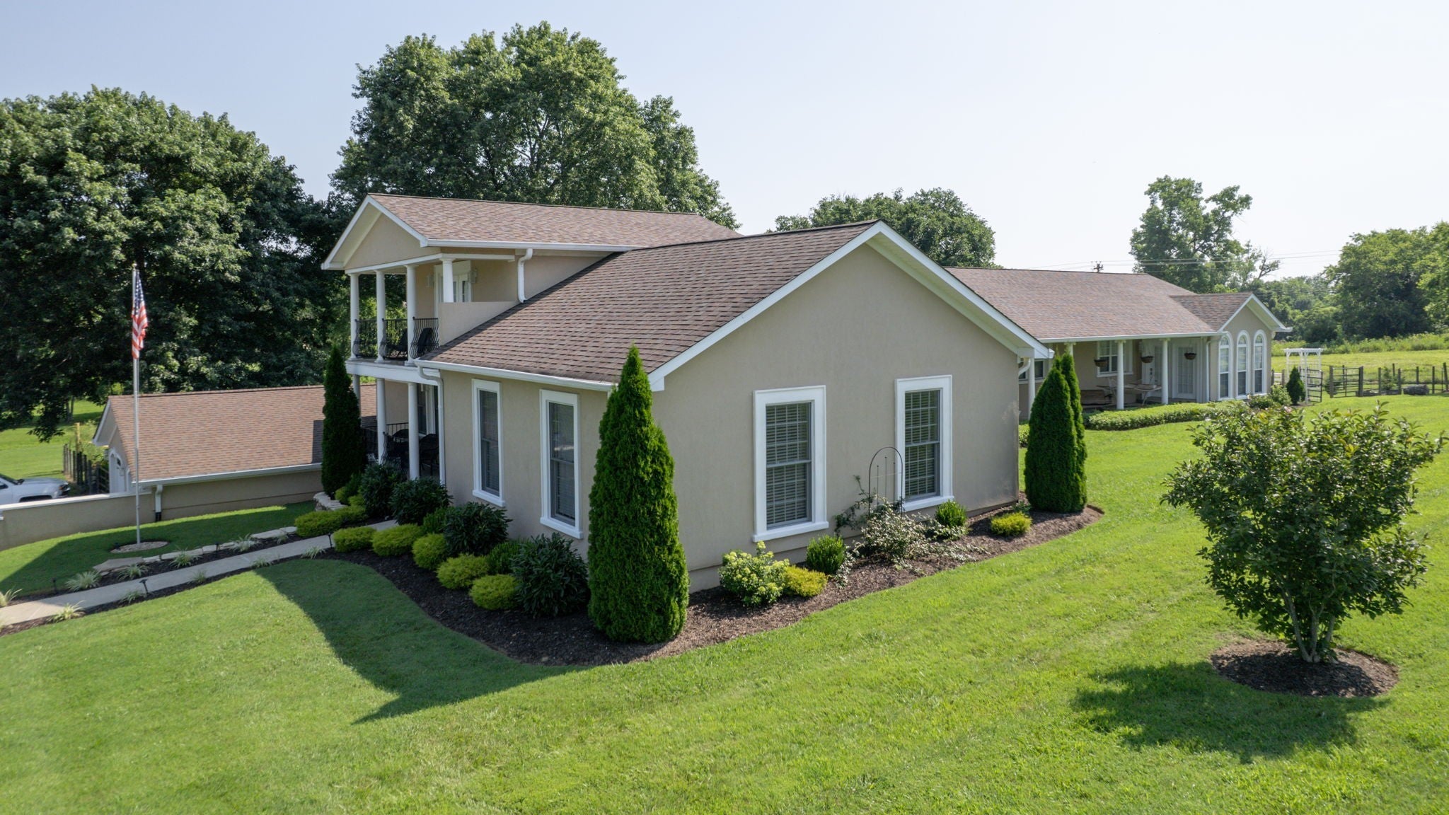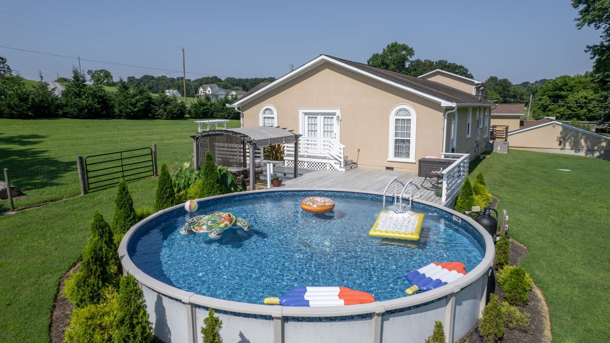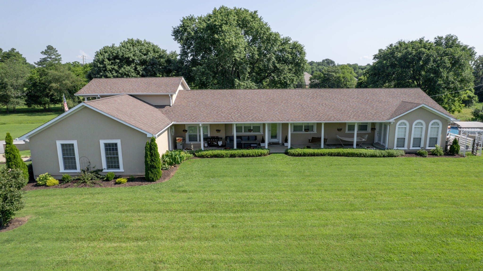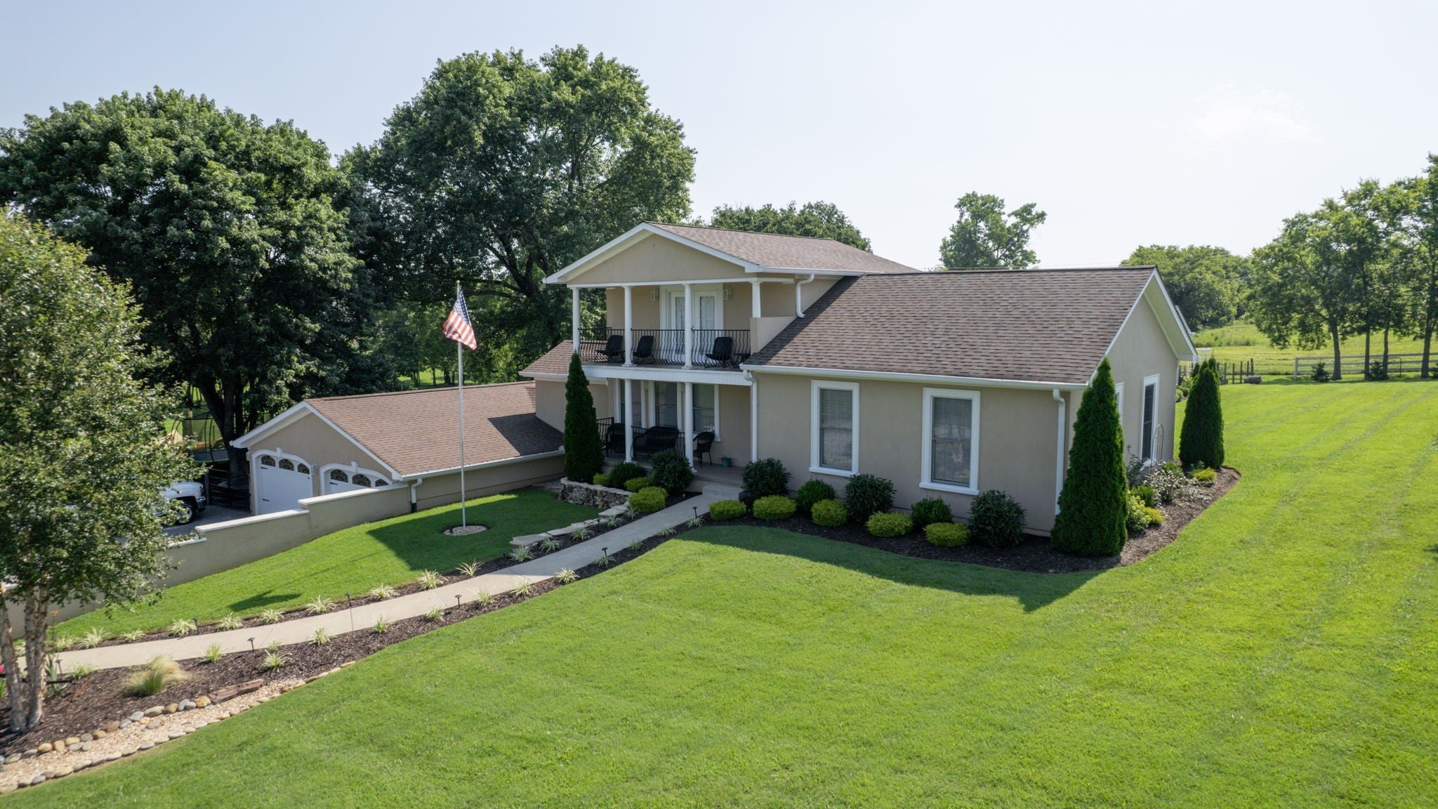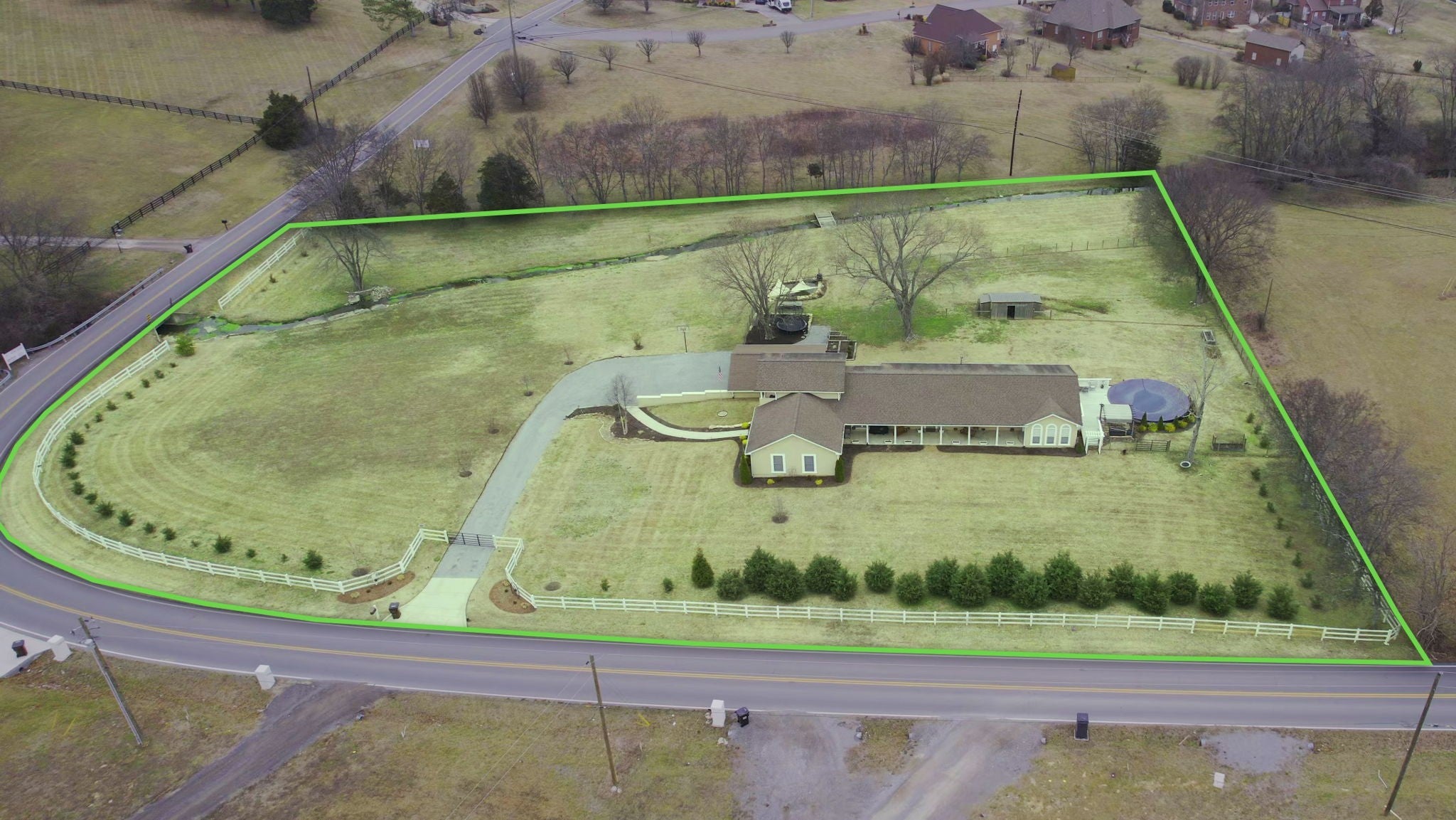 Come view this luxury home sitting on 3.2 immaculately manicured acres, with NO HOA! Featuring a modern, updated kitchen with a double oven and lovely backslash. Large walk in closets, the bathroom of your dreams, and plenty of space to entertain. The home also has a large, well kept garage. The backyard includes a pool that has been winterized for the season, and a beautiful koi pond.