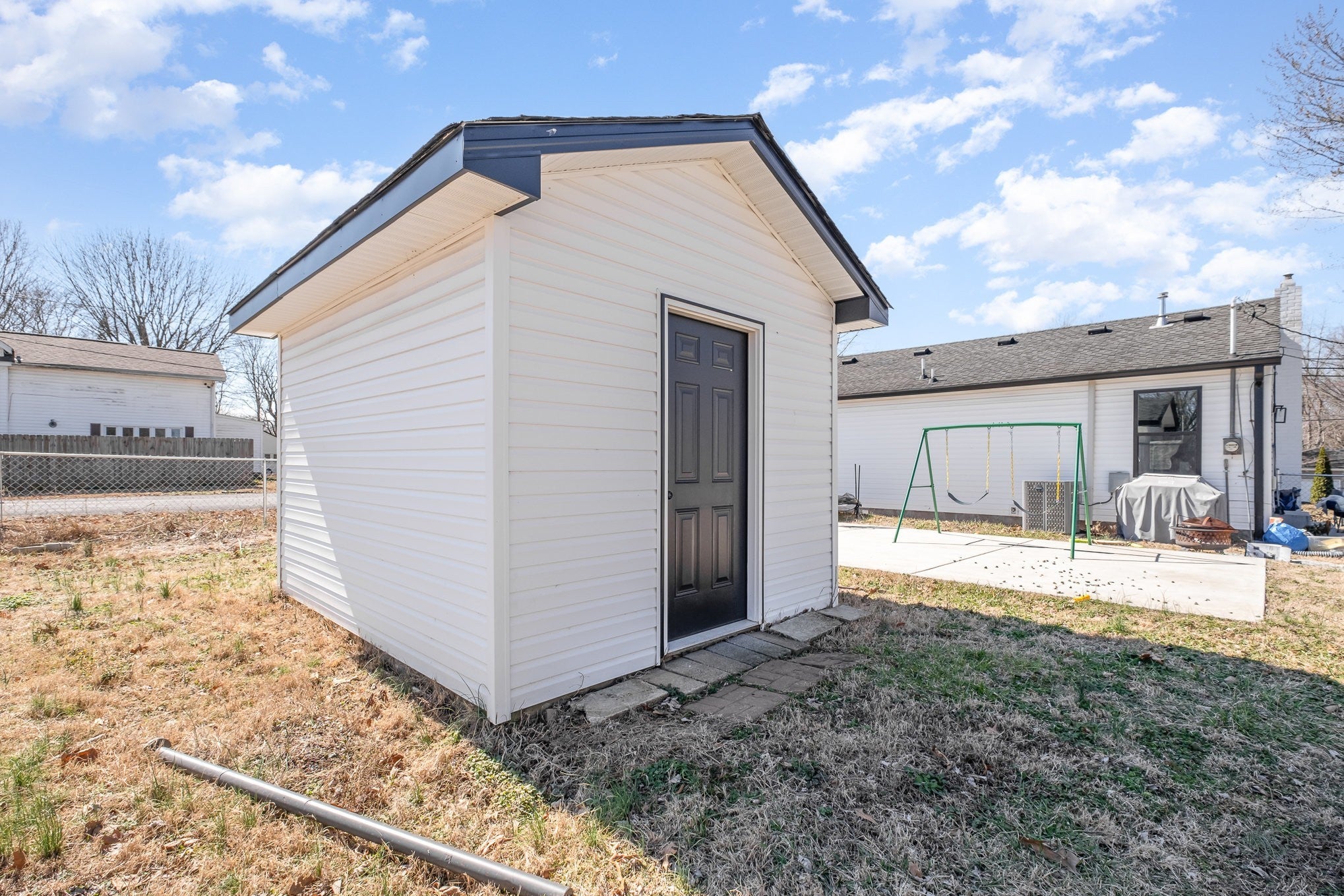 Short Sell bring offers!!! This beautifully remodeled home sits on a rare double corner lot and has been upgraded from top to bottom 2 years ago. Enjoy LVP flooring throughout, LED lighting, stainless steel appliances, board-and-batten vinyl siding, and striking black windows. The home offers a seamless flow from room to room, plus a wrap-around driveway, new landscaping, and fresh paint. Additional updates include a new HVAC, new plumbing, a new patio slab, fencing, craftsman-style trim and doors, and granite countertops. A detached building provides extra storage. Inspections welcome – selling as-is. Don’t miss this opportunity—seller is ready to make a deal!