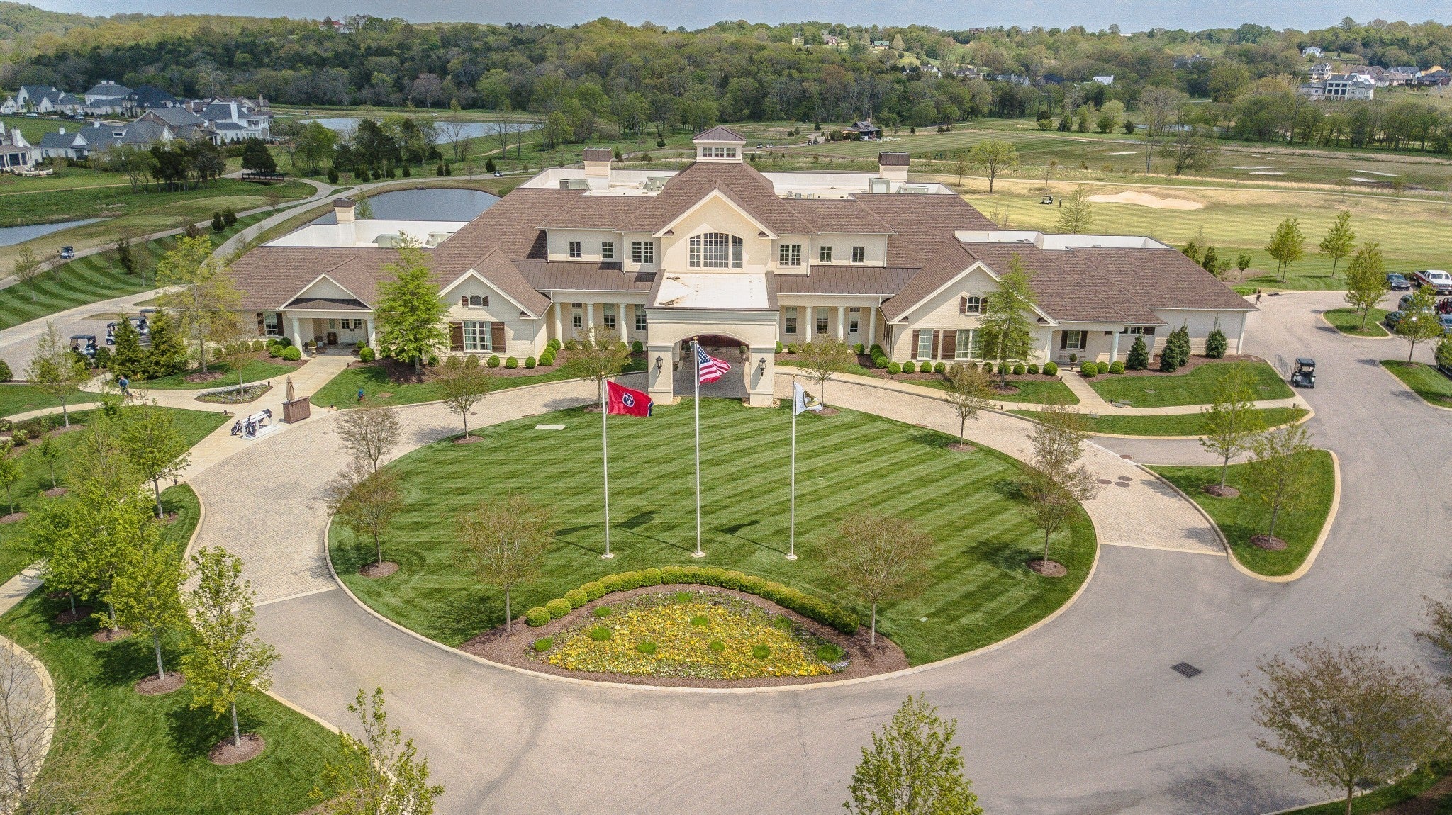 $100K towards Grove Membership with acceptable Offer. Stunning Custom Golf Course home located on the 4th Tee Box. Builders personal home! Gunite Pool & Spa. Open, Airy, light & fresh with an abundance of windows and doors! 12' soaring ceilings down, 10' Ceilings up. Sub-Zero Refrigerator, Ventless Water Heater. Approx. 1100 sq.ft. of separate - Live-In Ensuite with12' ceilings, full kitchen, Bath ,Washer/Dryer & ELEVATOR! Halo In-Duct Air Purifier throughout! Custom Putting Green.170" Theater Screen /Sony 4K Projector! Five security cameras... AUTO Close Smart-garage Doors! Appx 7500 SF of heated Living Area on two Levels. Appx.1800 SF. of Covered Porches with Columns, Tiled Pavers. Buyer/Buyers Agent to verify all school, taxes, square footage, & all pertinent info deemed important to buyers .
