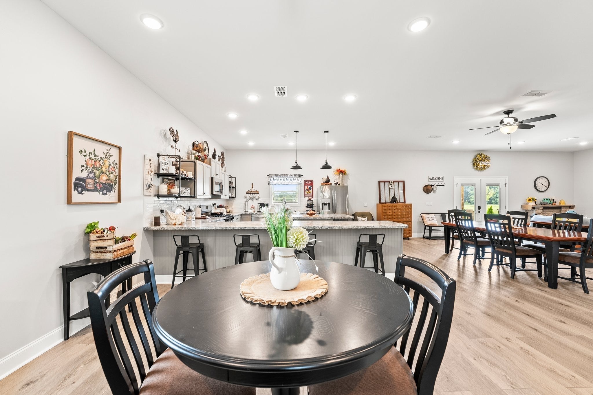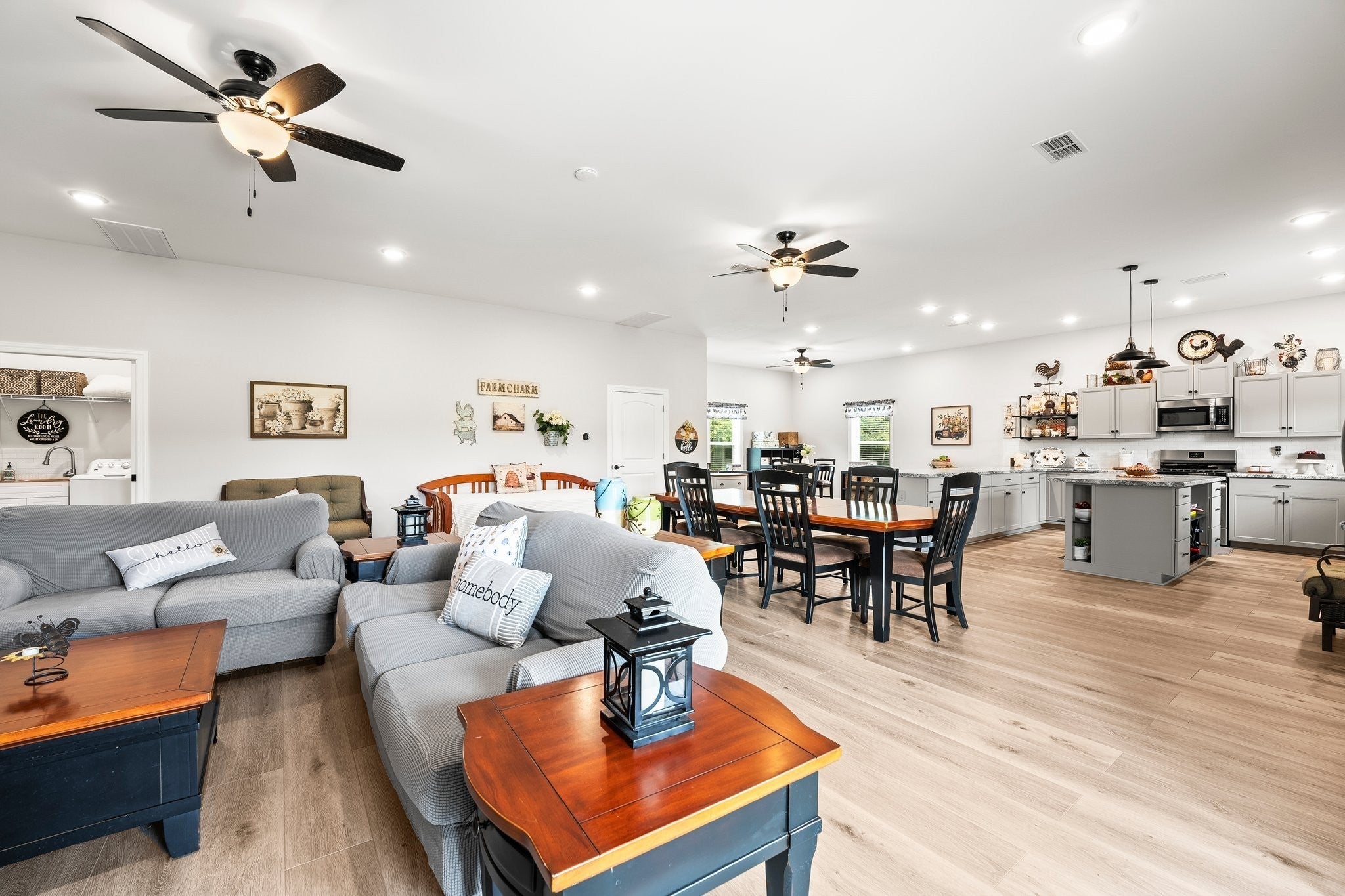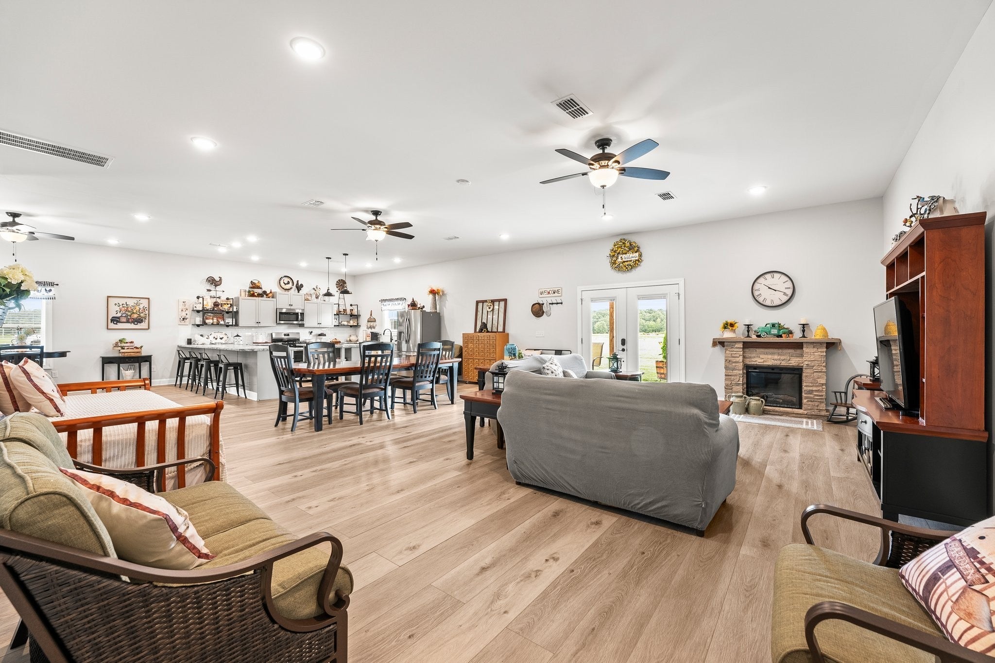 Sellers have an accepted offer with a 24 hour right of first refusal contingency. Gorgeous home that is absolutely immaculate! One level 3 bedroom 2 bath nestled approx. 16.6 acres with beautiful views. Additional 32’ x 60’ accessory building/guesthouse with 1,344 sqft finished area with open floor plan, large island kitchen, bathroom, utility room with a 10x40 covered porch. Includes 18’x32’shop. Main home features include 3 car garage, hickory wood floors, chef's kitchen with gas cooktop & large pantry, gas log fireplace, whole house generator, encapsulated crawlspace, enclosed sunroom with mini split HVAC system, tornado shelter in garage. Raised bed garden area. Only 8 minutes to Publix Grocery Store! Eligible for Greenbelt tax reduction. Unrestricted Property! Plenty of room for a pool or large pond. Room for possible private grass airstrip and hangar for small aircraft. Furnishings negotiable. See list of equipment for sale on the media page. Property includes two 1 acre lots platted out with electric and water at the lots.