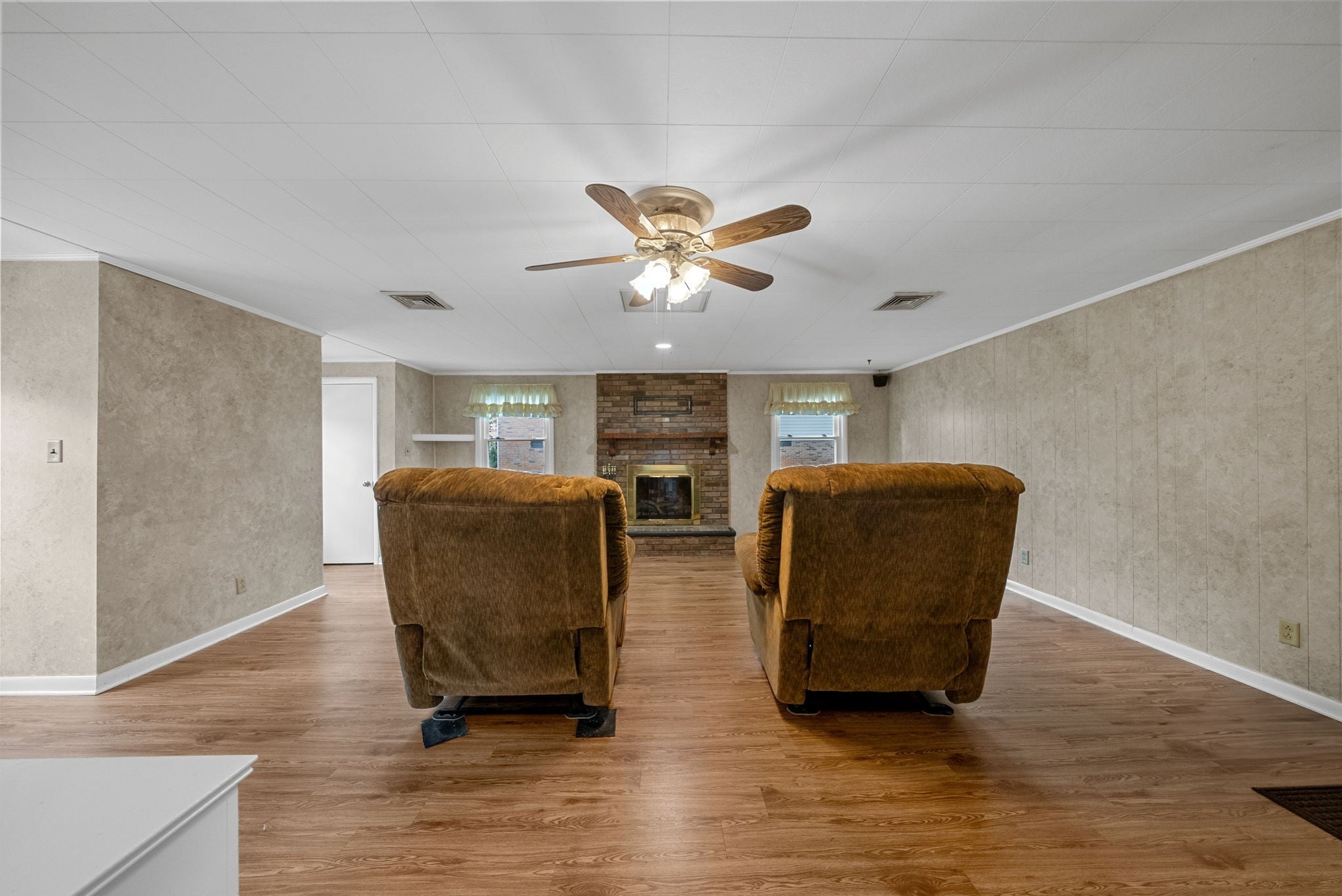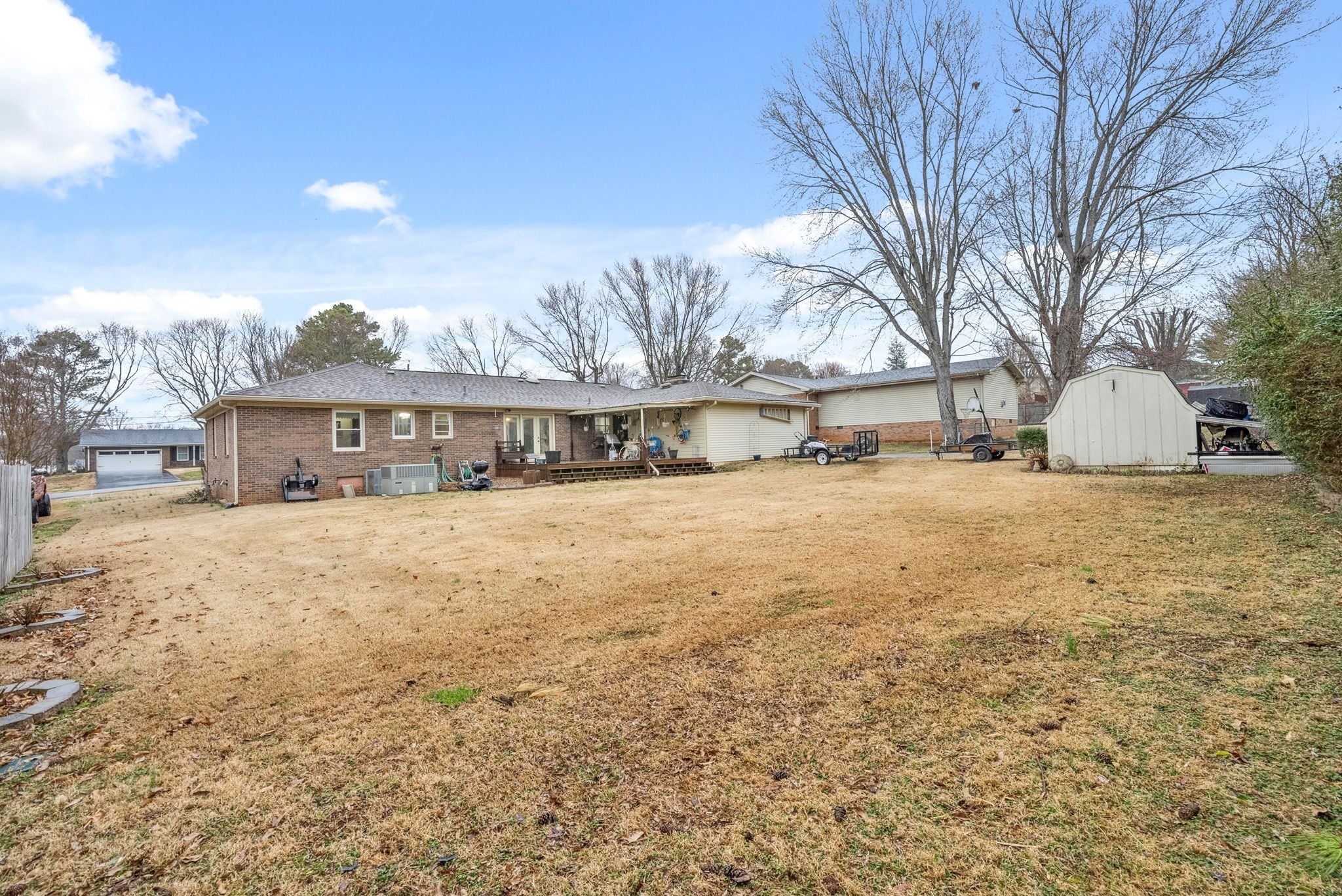 HARDWOOD FLOORING IS UNDER CARPET! 5,000 FLOORING ALLOWANCE WITH ACCEPTABLE OFFER! Move-in ready! This charming all-brick home features 3 bedrooms and 2 full bathrooms with numerous updates, including new windows, fresh paint, and a new water heater. Enjoy two spacious living areas, a cozy gas log fireplace, and a 2-car attached carport. Step outside to a covered deck perfect for relaxing, plus a storage shed for extra convenience. Don’t miss this well-maintained home!