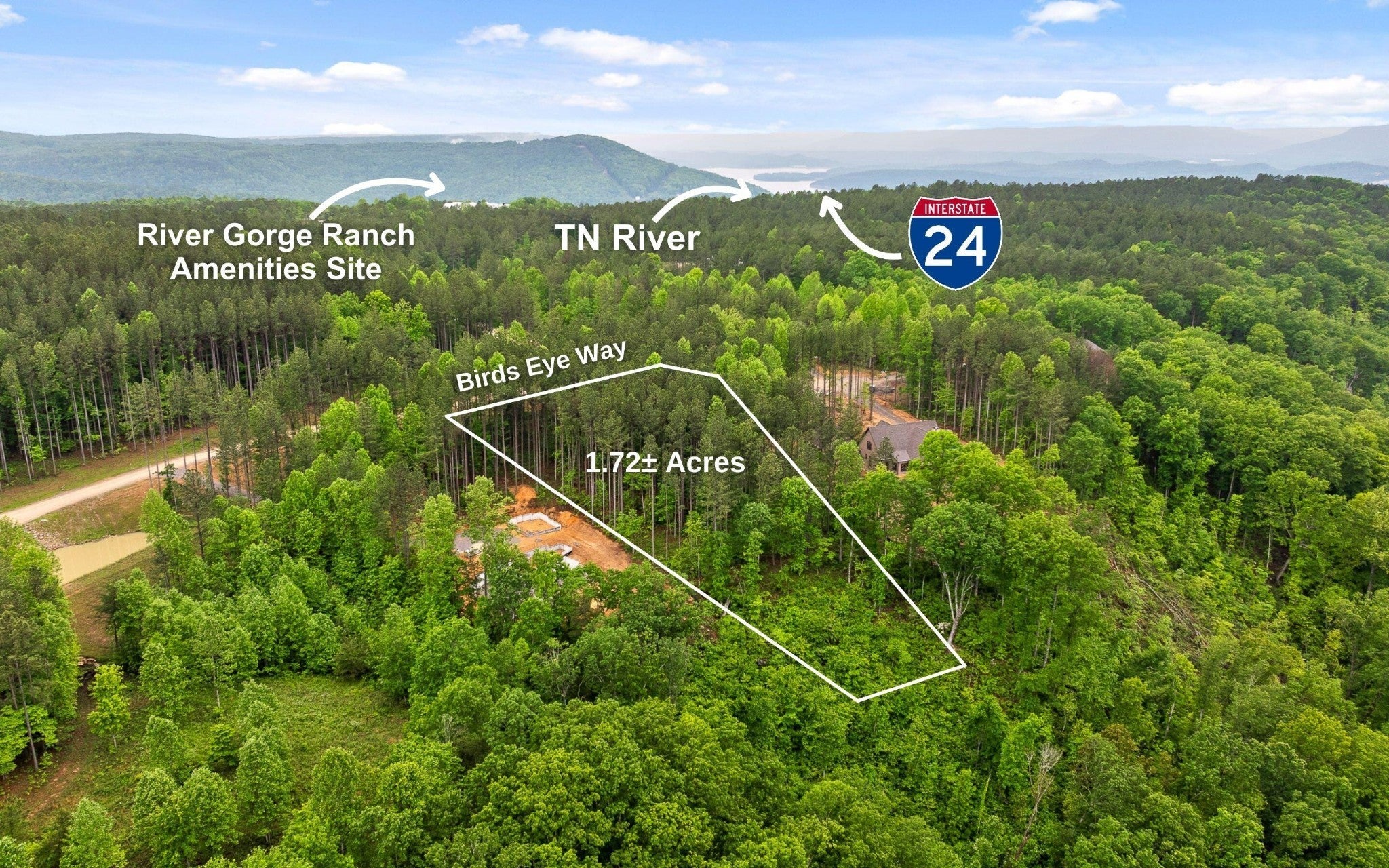BLUFF VIEW Homesite in River Gorge Ranch! FULLY USABLE 1.72± ACRES with privacy, nature, and convenience. Tucked inside this brand-new gated community, this serene property is dotted with mature trees, offering a peaceful retreat to build your dream home. Positioned near the front of the neighborhood for easy access, this lot features a level to gently sloping terrain...ideal for your future home and back porch views. Skip the waitlist and start building now! Pre-approved for a 3-bedroom home, with power, water, and GIG-speed fiber optic internet readily available. Enjoy breathtaking mountain vistas while being just moments from the Tennessee River's boating, fishing, and outdoor adventures. River Gorge Ranch is designed for those who love both nature and modern comforts. Soon, residents will have access to a 27-acre Village Square featuring dining, retail, a pavilion, rental cabins, a fitness center, a community pool, a pond, and outdoor recreation spaces. Whether you're into hiking, mountain biking, or simply soaking in the natural beauty, this location has it all. Conveniently located less than 30 minutes from Jasper, Kimball, and South Pittsburg--and only 40 minutes from Chattanooga--you'll have the best of both worlds: a peaceful mountain retreat with quick access to vibrant city life. With easy connections to I-24, you're centrally positioned between major hubs like Nashville, Knoxville, Atlanta, and Birmingham. Don't miss this rare opportunity to own a breathtaking homesite in River Gorge Ranch--ready and waiting for your vision! (House Plan Available in Documents Section) (Any and all property lines on photos are simulated and are approximate. Some images may be virtually staged. Buyer is responsible to do their due diligence to verify that all information is correct, accurate and for obtaining any and all restrictions for the property deemed important to Buyer.)