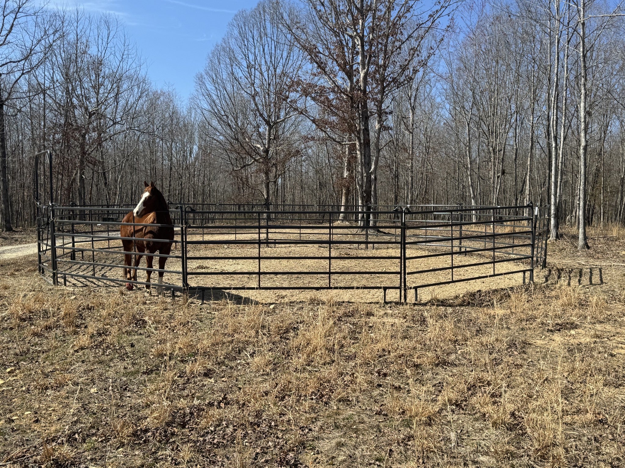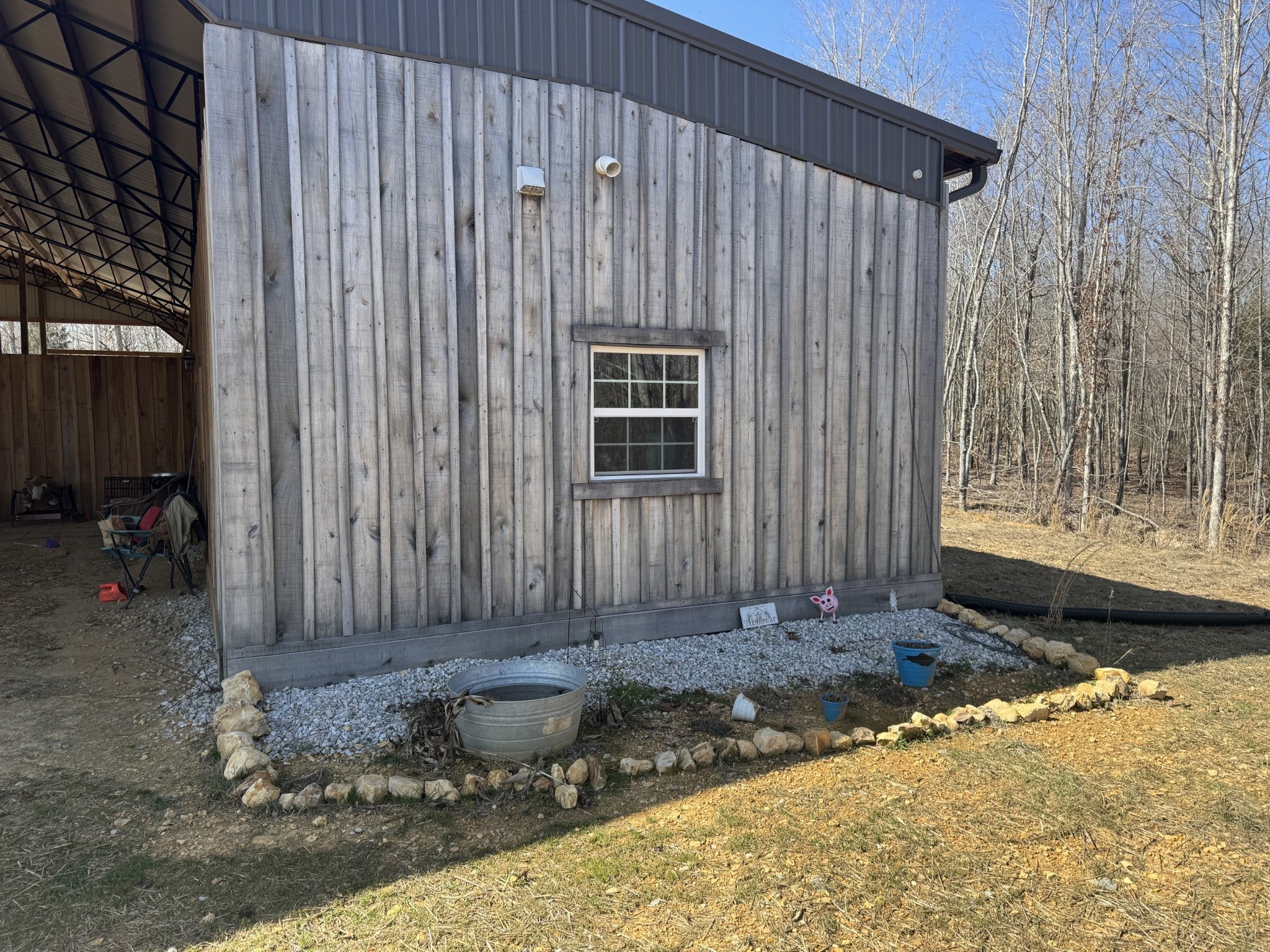 Hunting Camp, Equestrian Retreat, or Your Forever Home? Discover this secluded 44 acres (+/-) abundant with wildlife and mature trees, including some marketable timber. The land is ideally suited for clearing additional pasture or remains heavily wooded for hunting enthusiasts. The underground electric, well, and barn structure are all less than two years old. The barn measures 80x72 and features camper hookups, along with a new concrete washdown bay equipped with hot and cold water, making it perfect for animals or hunting needs. While the living quarters are not an approved residential dwelling, they are quite livable and could serve as a fantastic temporary space while you build your dream home on one of the many excellent sites available on the property. This space includes a full kitchen with appliances included, custom handmade cabinets, one bathroom, a tankless water heater, and the potential for two bedrooms. Whether you're bringing horses, livestock, or hunters, this property is ready to meet all your needs.