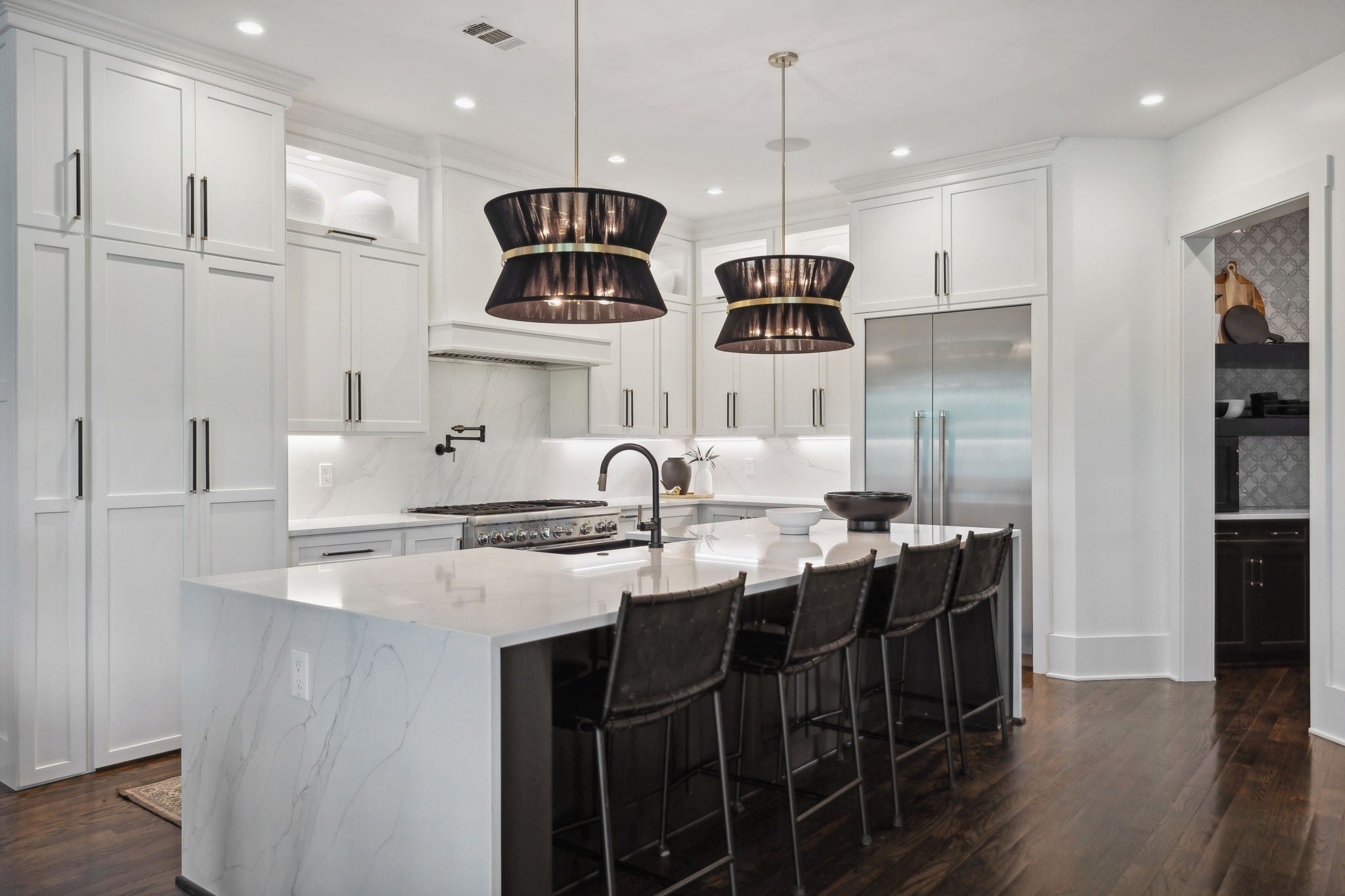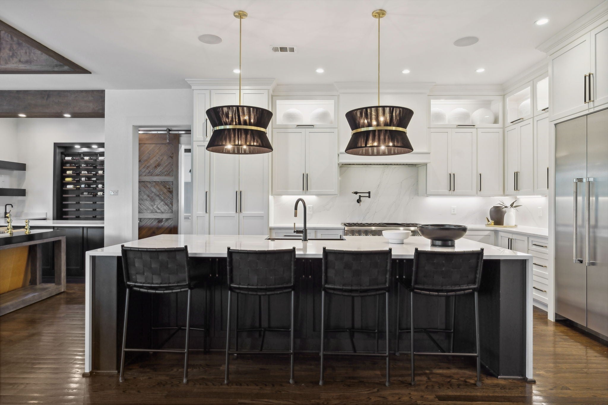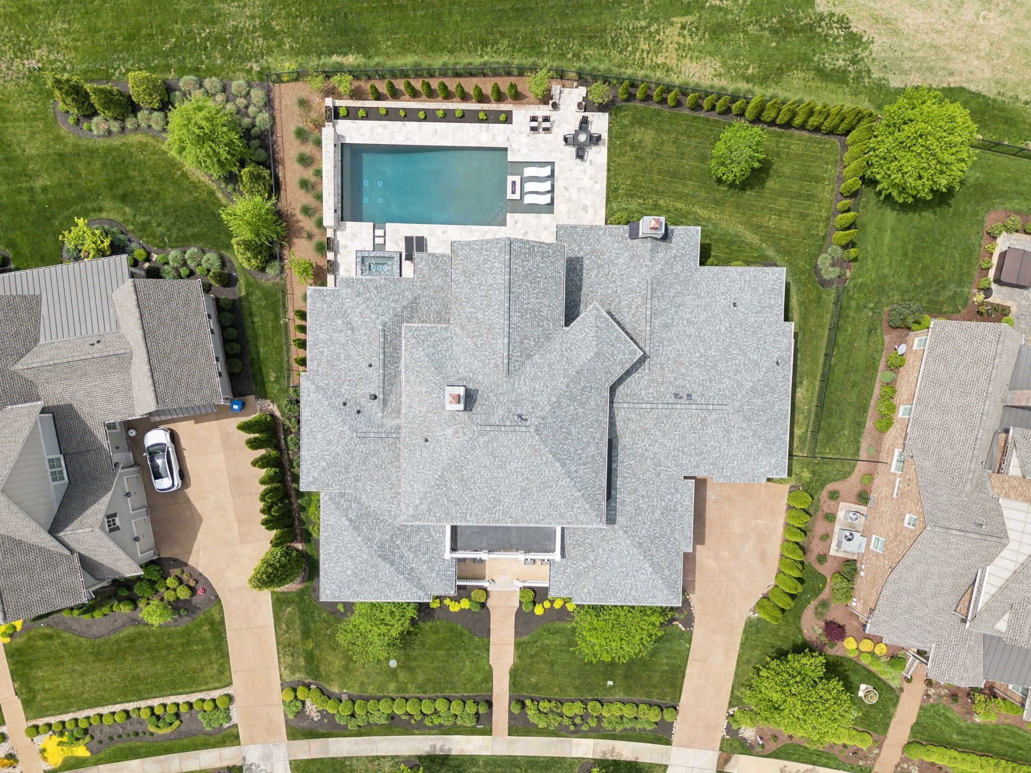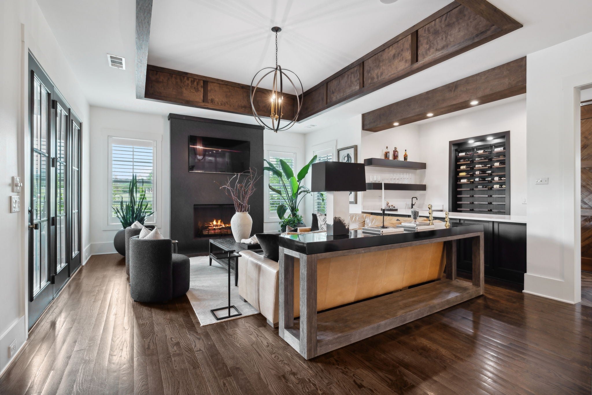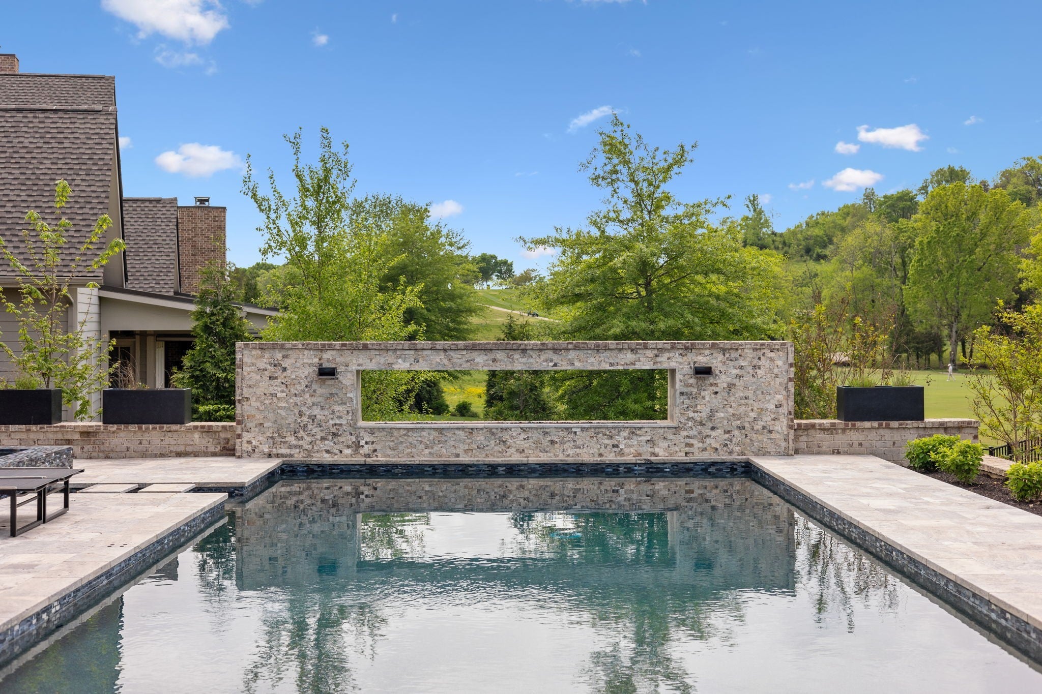 Luxury golf course living in The Grove—Middle Tennessee’s premier gated community offering resort-style amenities including clubhouse, fine dining, spa, pool, fitness center, and championship golf. This custom all-brick home for sale in The Grove College Grove TN sits on fairway #2 and showcases timeless design, modern luxury, and breathtaking views. Step inside to an open-concept living room with floor-to-ceiling tile fireplace, gas logs, and expansive golf course views. The gourmet chef’s kitchen is a centerpiece, boasting a quartz waterfall island, stainless steel appliances, ceiling-height custom cabinetry, pot filler, under-cabinet lighting, and hidden walk-in pantry. A second living area with wood-accented tray ceiling flows into a designer wet bar with wine display and dual beverage coolers—ideal for entertaining. The main level also features a formal dining room with butler’s pantry, private office with custom built-ins, spacious laundry room with island, and drop zone. The primary suite retreat overlooks the golf course with white brick accents, spa-inspired bath, soaking tub, dual vanities, and oversized dual-entry shower. Two additional en-suite bedrooms plus a powder room complete the main floor. Upstairs offers a fourth bedroom with full bath, flex office space, and large rec room with wet bar opening to a private balcony with hanging daybed and golf course views. Enjoy resort-style outdoor living with a screened porch featuring retractable screens, built-in outdoor kitchen, pool with sun shelf, tiled spa, fire pit, and lush fenced yard.