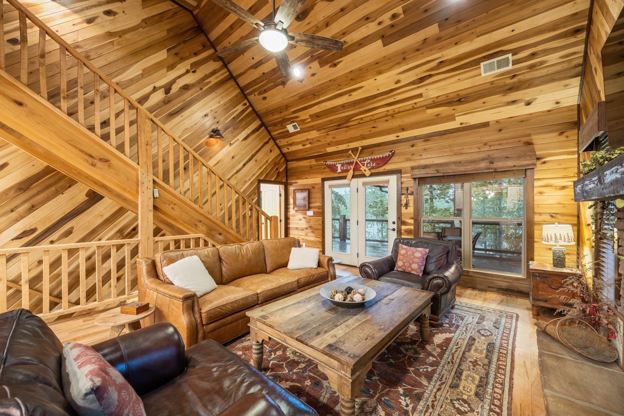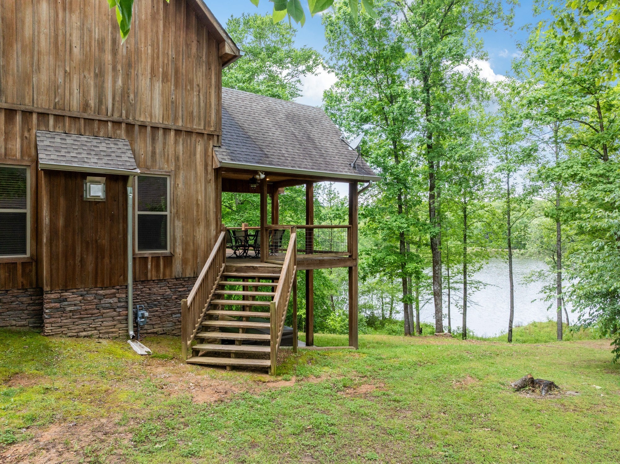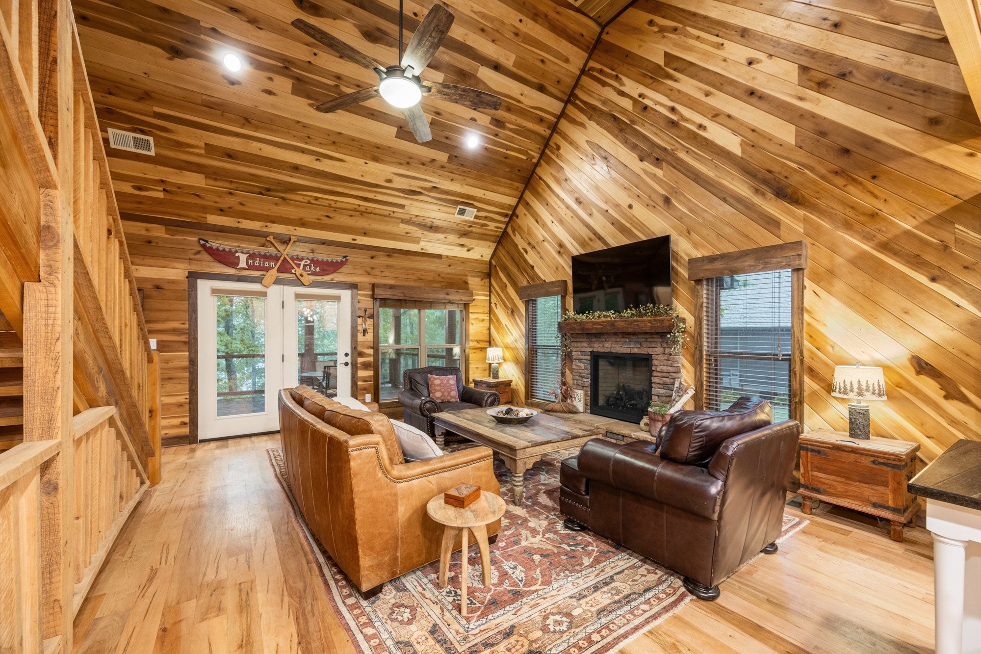 Custom lakefront home in the gated Indian Lake community. There are beautiful views of the lake from almost every room in the house. The open living area leads out to the covered back deck which sets up perfectly for entertaining. There are so many custom details in this home, it's just too many to list. The primary suite is on the main level, making it easily accessible for anyone. Upstairs has a bedroom, full bathroom & nice loft overlooking the living room for a great place to curl up with your favorite book. The basement has a bedroom, safe room & a recreation room with a pool table. Walk out of the basement to the covered back patio with a hot tub that overlooks the lake. For the avid fisherman, Indian Lake is a professionally managed lake that's endorsed by Jimmy Houston. This home is a must see because pictures just don't do it justice. New private dock & boardwalk installed September 2025.