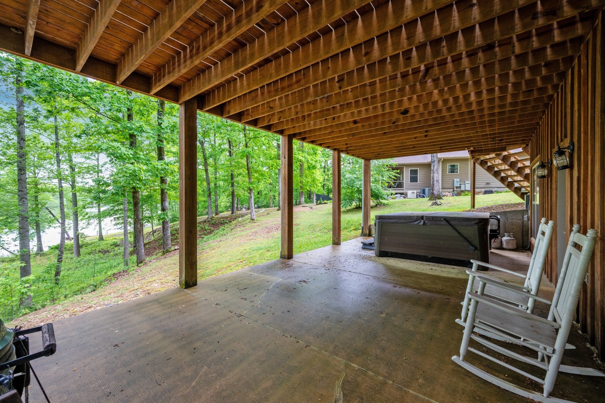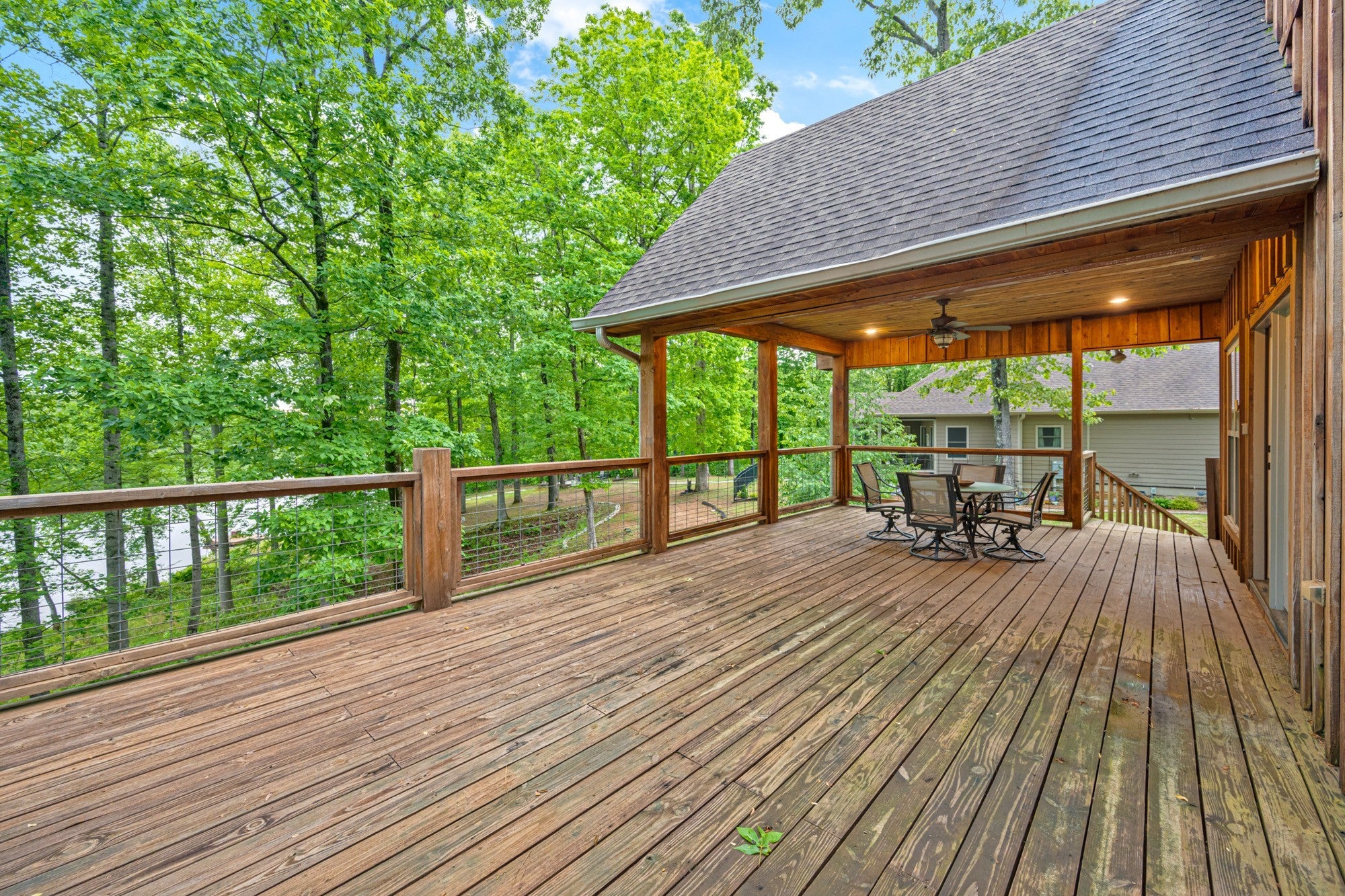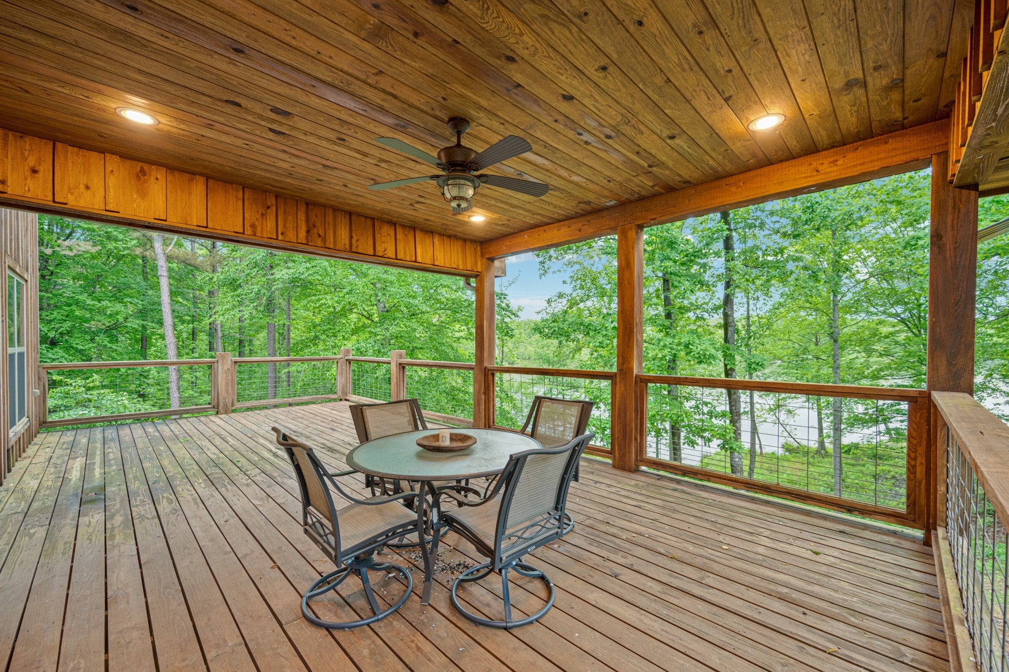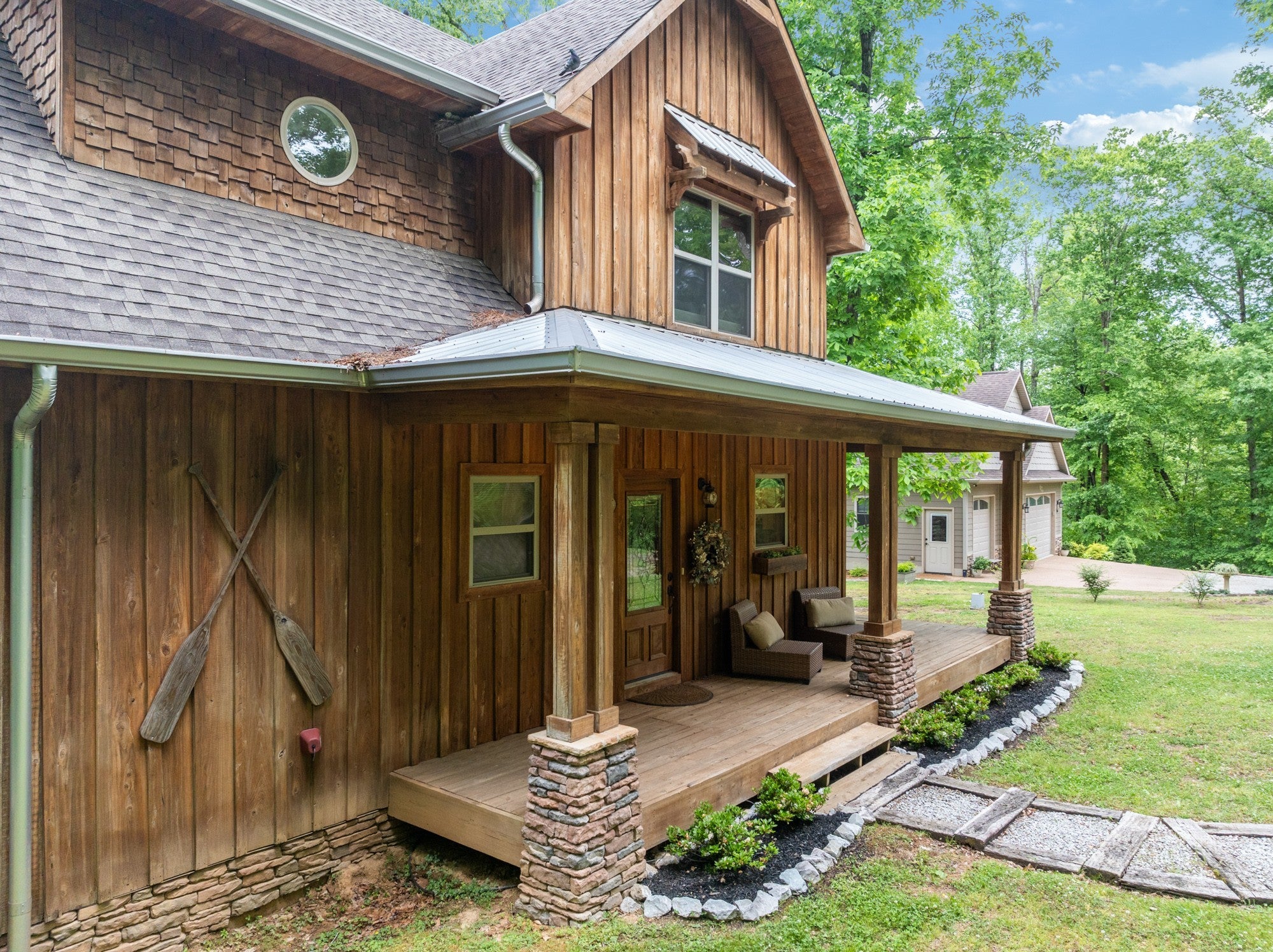 Custom lakefront home in the gated Indian Lake community. There are beautiful views of the lake from almost every room in the house. The open living area leads out to the covered back deck which sets up perfectly for entertaining. There are so many custom details in this home, it's just too many to list. The primary suite is on the main level, making it easily accessible for anyone. Upstairs has a bedroom, full bathroom & nice loft overlooking the living room for a great place to curl up with your favorite book. The basement has a bedroom, safe room & a recreation room with a pool table. Walk out of the basement to the covered back patio with a hot tub that overlooks the lake. For the avid fisherman, Indian Lake is a professionally managed lake that's endorsed by Jimmy Houston. This home is a must see because pictures just don't do it justice. New private dock & boardwalk installed September 2025.