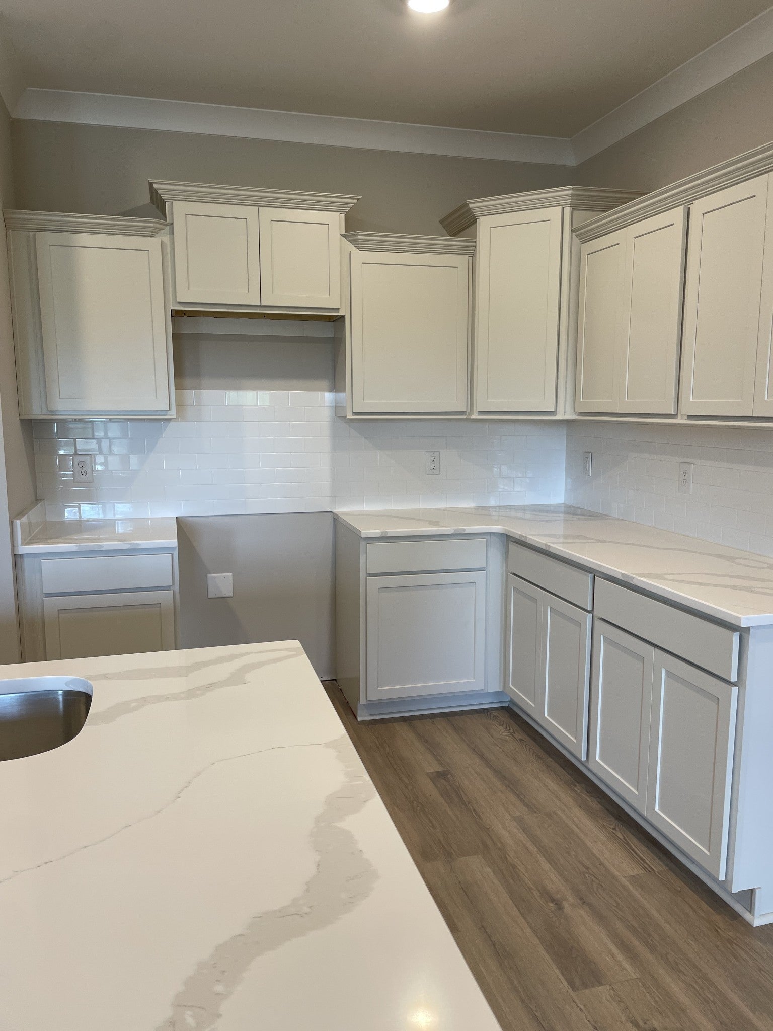 1555 Plan - Experience luxury and convenience in this 2-story townhome featuring 3 bedrooms and 2.5 bathrooms, all with a maintenance-free exterior. Nestled in a peaceful setting and within walking distance to the Music City Star train station, it’s the perfect blend of tranquility and accessibility. Open kitchen and great room, showcasing a stylish tile backsplash and luxurious quartz countertops. Highlights include elegant oak stair treads, a versatile flex room, a grand primary bedroom with a spacious walk-in closet, and a fantastic laundry room with a convenient countertop.