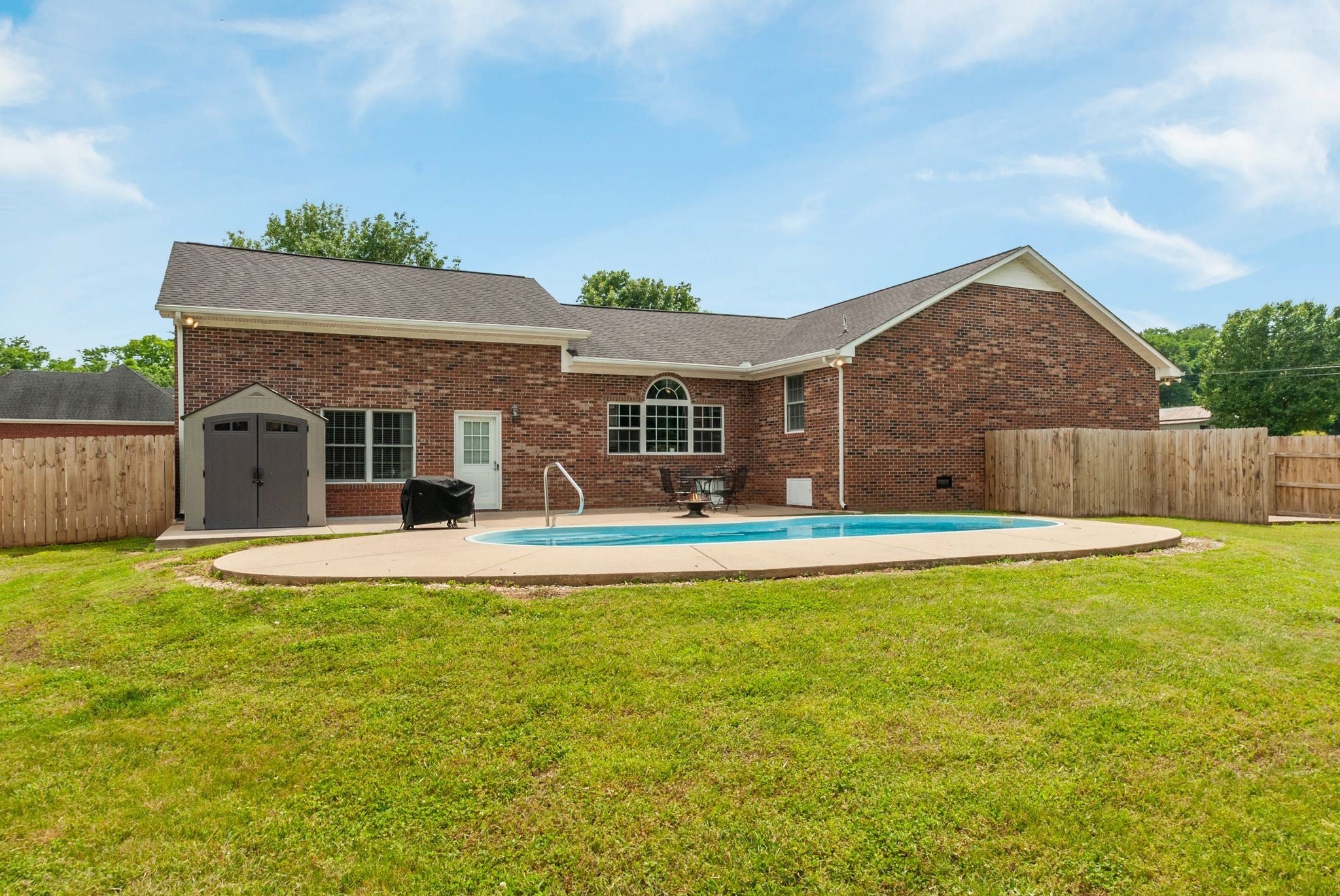 Completely renovated all-brick home on a private 1-acre lot with inground pool. Renovation completed in 2020 includes: new roof, new paint, new flooring, new kitchen cabinets with granite countertops, new appliances, new Bryant HVAC system, new bathroom vanities, new fireplace insert, and new pool equipment. Home features 4 bedrooms on the main level, 2 full bathrooms, living room, bonus room, utility room, and kitchen with bar seating. Additional finished room and loft area upstairs. Oversized double garage, paved driveway, fenced backyard, and large outdoor space perfect for entertaining.