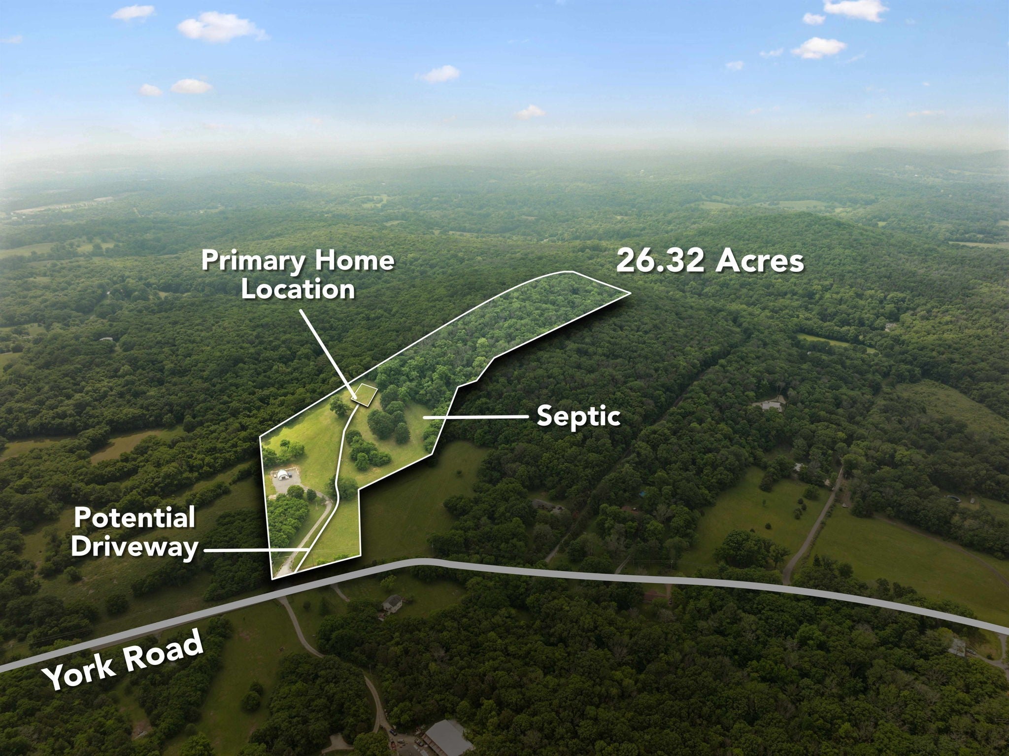 FULLY READY TO BUILD!! Bring your Builder or use our preferred Builder. Discover your dream homesite perched atop one of Williamson County’s most sought-after ridgelines. This property, locally known as Flag Hill, offers 26.32 acres of ready-to-build land with sweeping views of the Nashville skyline—a rare blend of natural serenity and city proximity. Already equipped with power on-site and water, this fully conforming and permit-ready parcel features a 4-bedroom approved septic soil site, saving you critical time and investment in site prep and approvals. Whether you're envisioning a legacy estate, equestrian retreat, or modern farmhouse, this gently rolling land offers the ideal topography and infrastructure to bring your vision to life. The property is rich in abundant wildlife, with deer, turkey, and more frequently seen roaming the landscape. You'll enjoy the peaceful privacy of country living while soaking in views of the Nashville skyline from your front porch. If you’re dreaming bigger, the adjoining 23.29-acre tract at 2677 York Road is also available. Combine both parcels for nearly 50 acres of prime, buildable land in one of Middle Tennessee’s most desirable settings. Ideally situated just minutes from Nolensville, Franklin, and Nashville, this is a rare chance to enjoy pastoral beauty and panoramic views without sacrificing proximity to schools, shopping, and major commuting routes. Property currently in Greenbelt. Your elevated life begins here.