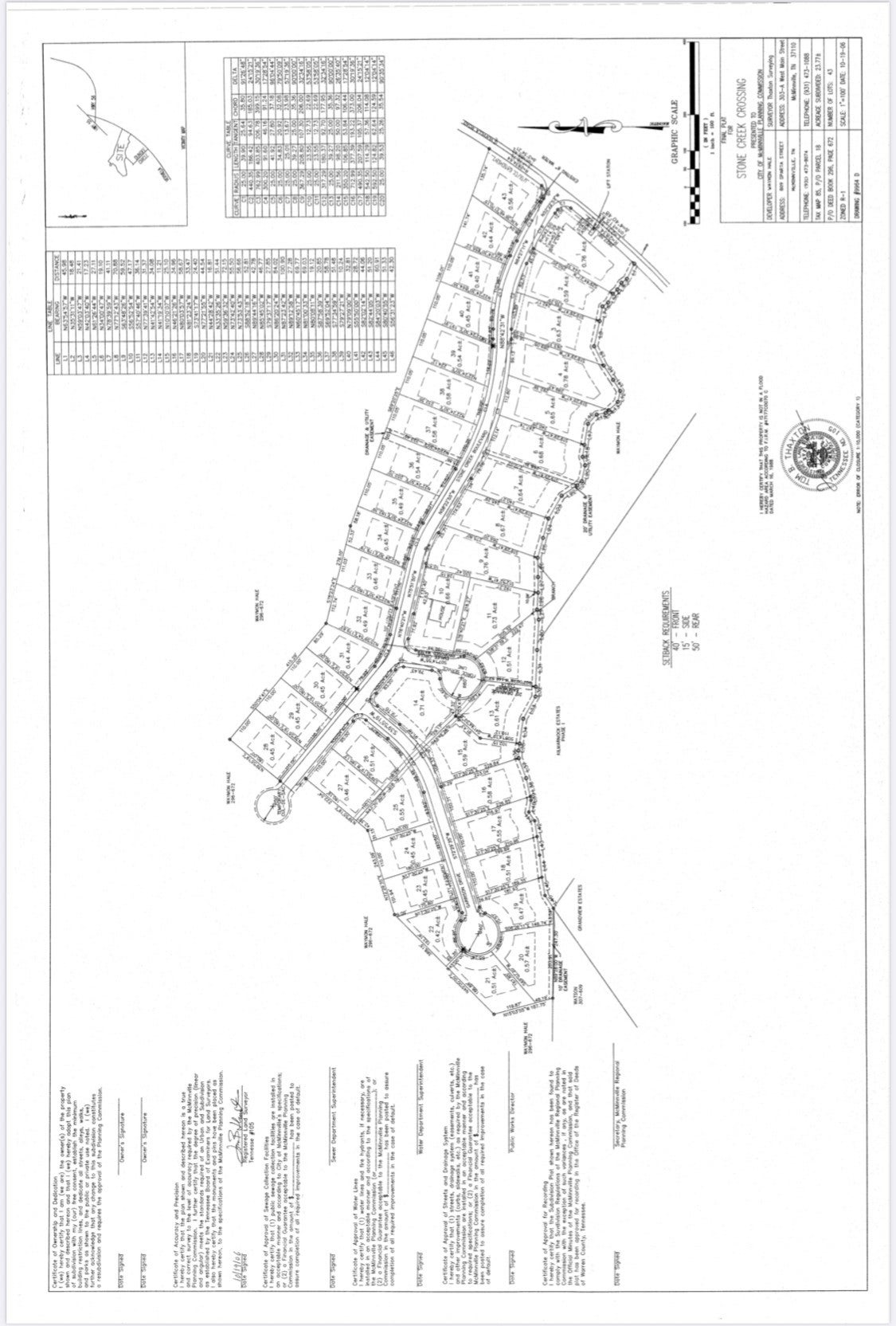 **Investor/Builder Opportunity – 15 Build-Ready Lots in Stone Creek Crossings, McMinnville, TN** An exceptional opportunity awaits in the highly desirable **Stone Creek Crossings Subdivision** in McMinnville, Tennessee. This **bundle of 15 residential lots** is perfect for builders or investors looking for a ready-to-go development project in a growing and well-established community. **Included Lots:** Lots **5, 9, 11, 12, 13, 14, 15, 21, 22, 26, 29, 32, 34, 38, and 40** All available lots are in WHITE. Each lot comes **fully equipped with utilities at the street**, including **natural gas, sewer, electricity, and city water**—saving you time and development costs. The neighborhood offers paved roads, underground utilities, and a peaceful setting near local schools, shopping, and amenities. **Some neighborhood restrictions apply** (please see attached documents for details) to maintain the integrity and value of the community. This is truly a **turnkey development opportunity** for a buyer with vision. Whether you're planning custom homes, spec builds, or investment properties, this collection of prime lots provides a solid foundation for long-term returns. Professional photos coming soon.