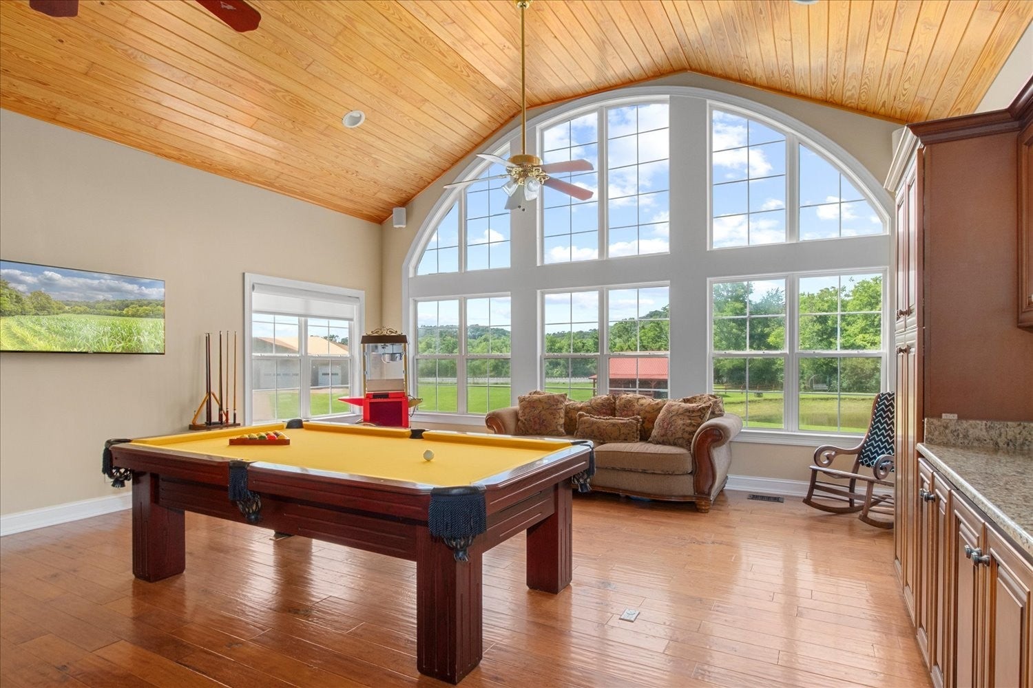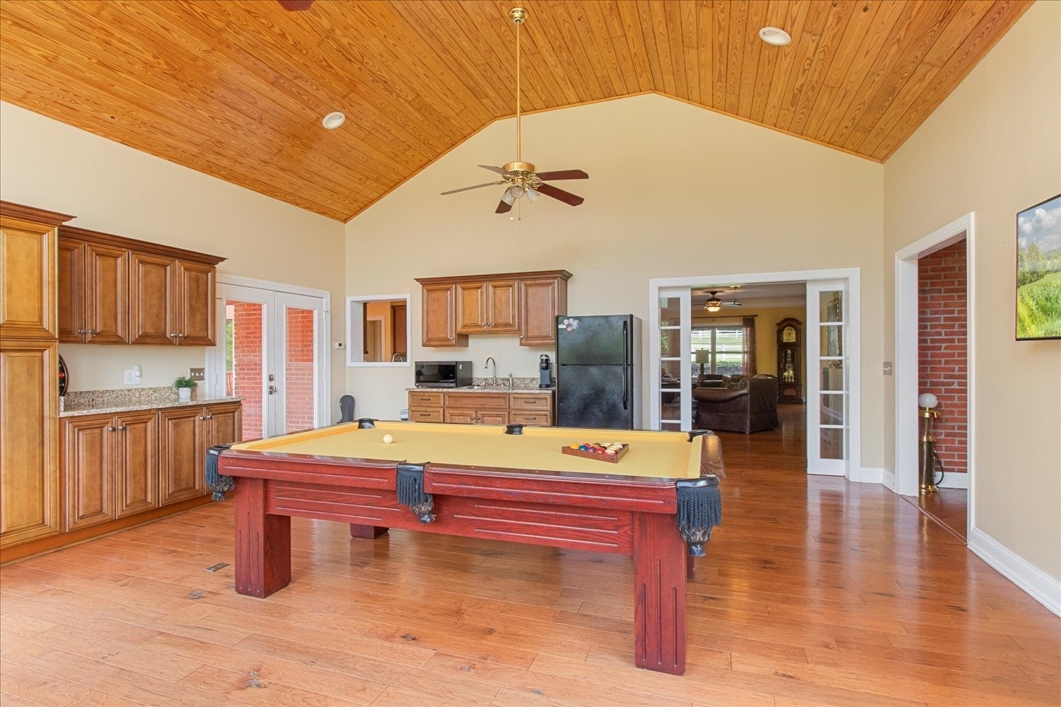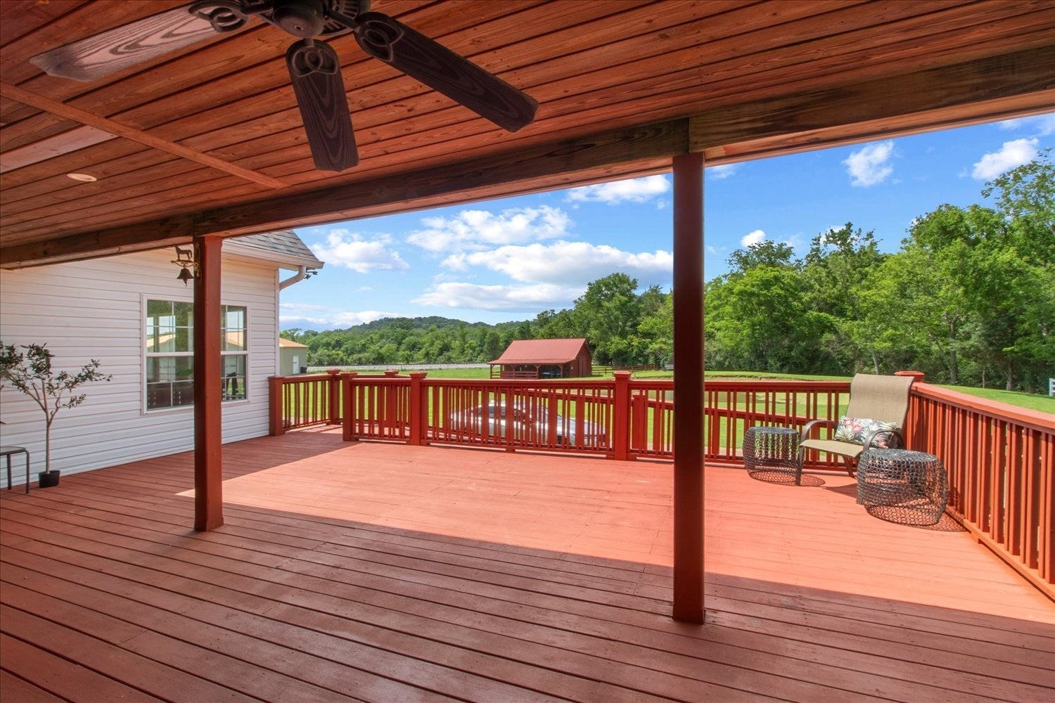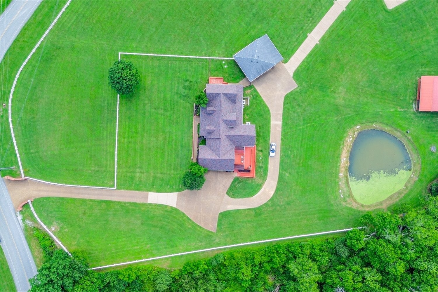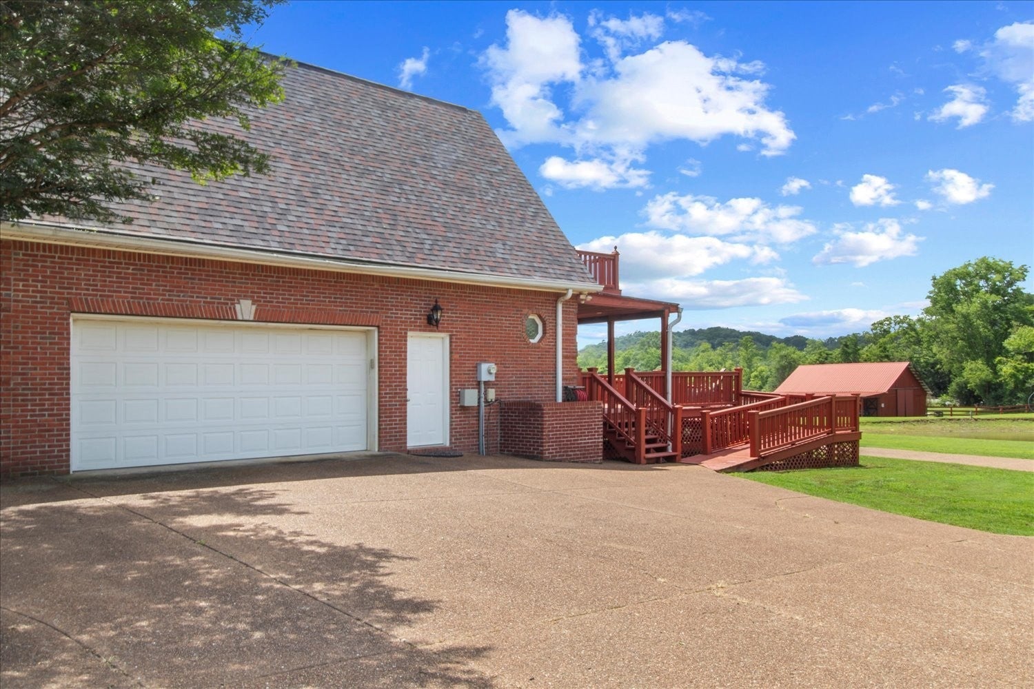 Stunning 5.75-acre estate just minutes from Historic Downtown Franklin. This 5,313 sq. ft. all-brick home offers 4 bedrooms, 3.5 baths, and two primary suites for multi-generational living. The remodeled first-floor primary bath features dual vanities and a custom tile shower. Gourmet kitchen with cherry cabinetry, granite, stainless appliances, and walk-in pantry opens to a sunroom with countryside views. Outdoor living includes tiered decks, a pond, and fenced pastures. Car enthusiasts will love the 3,400 sq. ft. climate-controlled garage/man cave with car lift, full bath, plus a 3-car detached garage and 2-car attached garage. Two-stall barn with tack room and hay loft. Recent updates: roof (2022), tankless water heater, hardwoods, built-ins, and EV supercharger.
