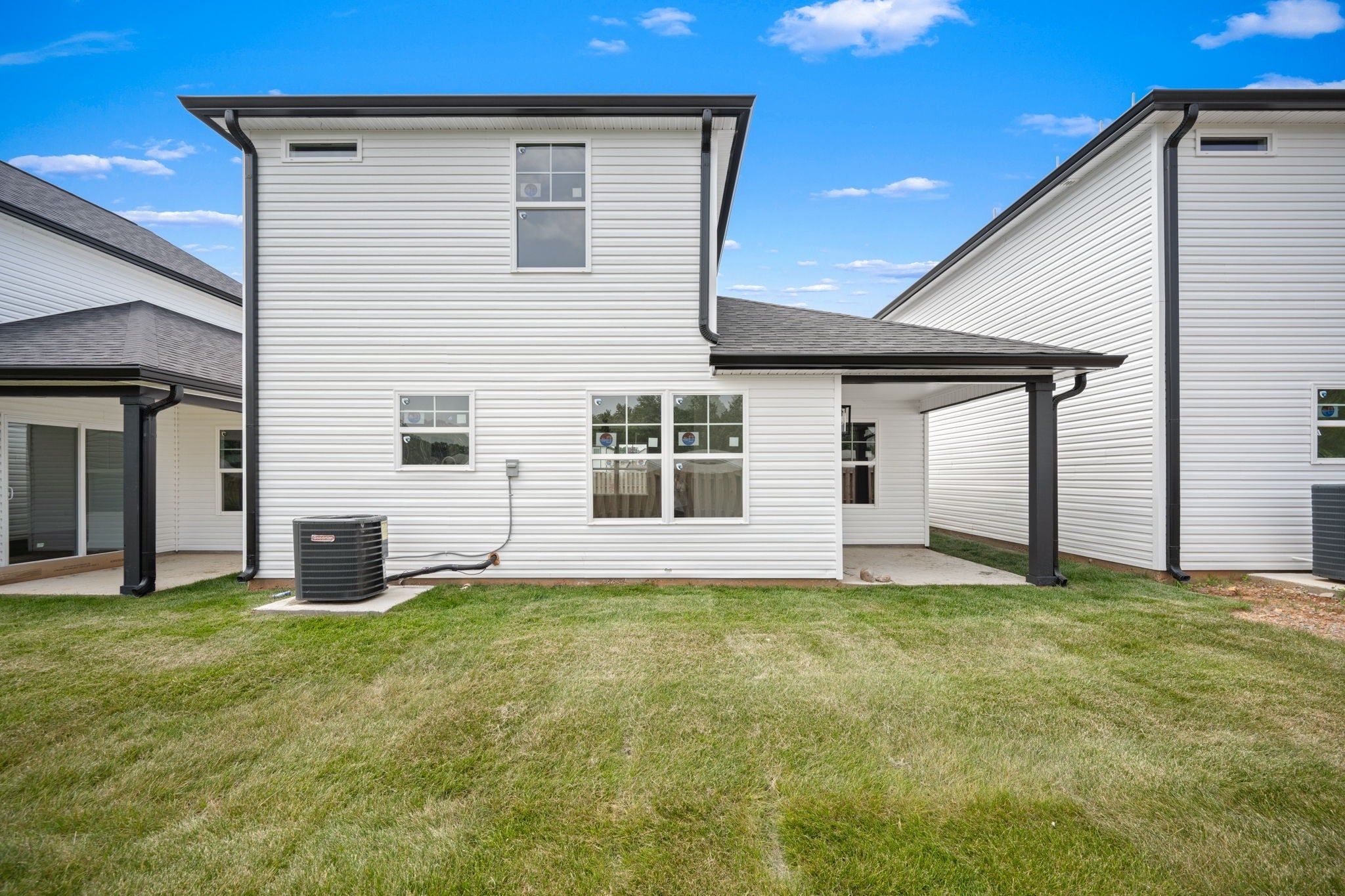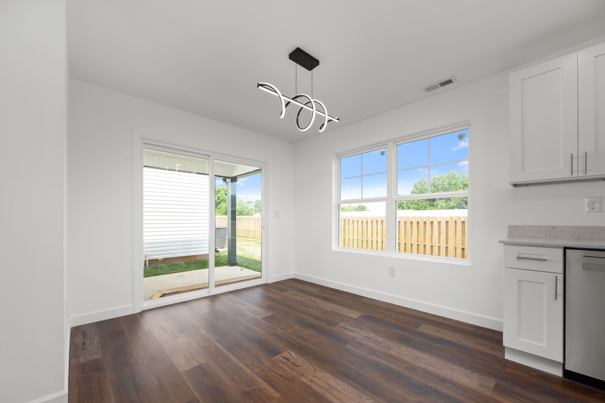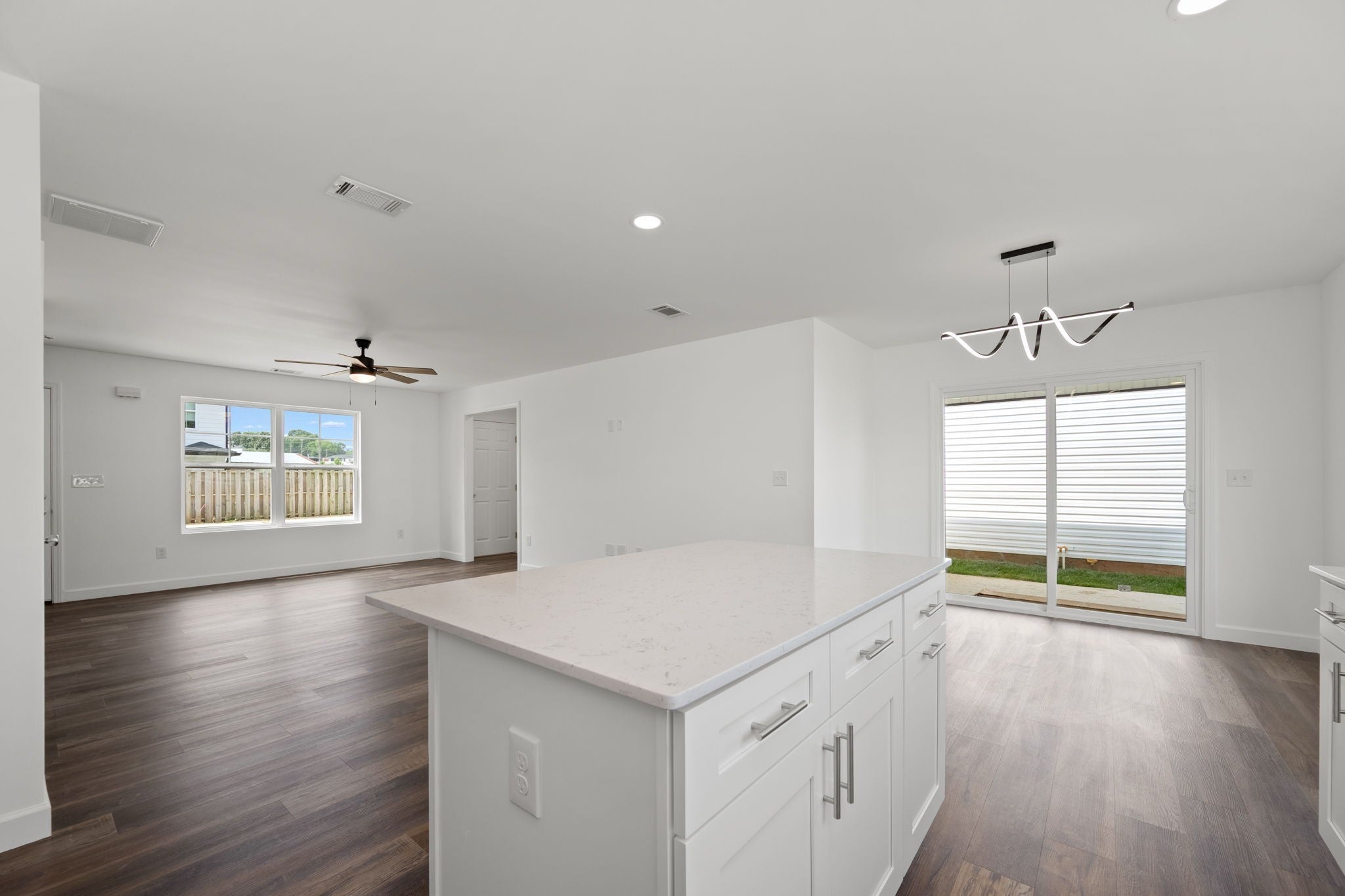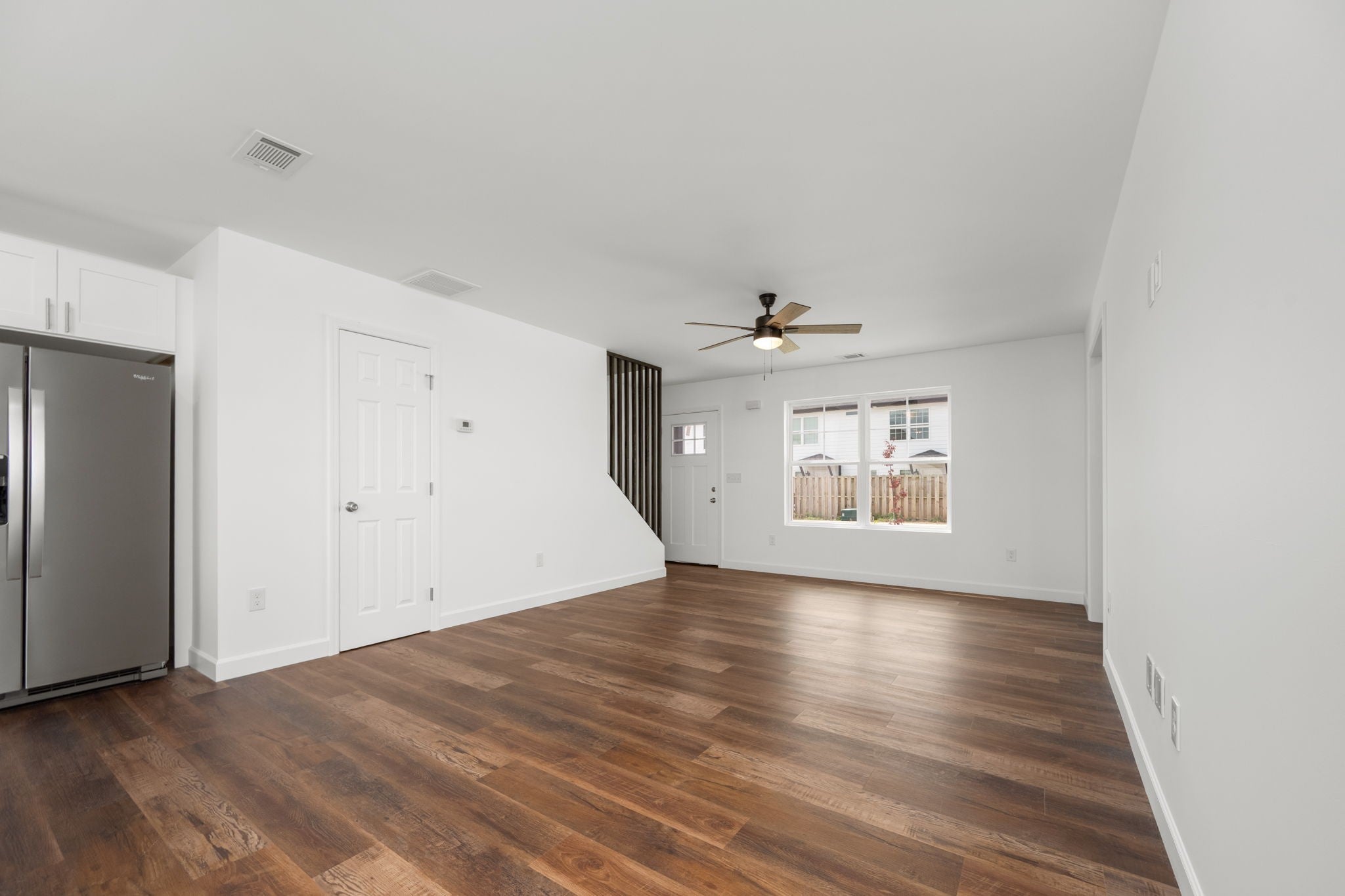 The builder is offering a rate buy-down or closing costs with an acceptable offer—flexible based on buyers needs. Welcome to a beautifully designed detached townhome that offers the privacy and peace of a single-family home, with the low-maintenance perks of townhome living. No shared walls, no connecting roofs—just your own space, thoughtfully built for comfort, design, and everyday function. Step inside to an open and airy layout where luxury vinyl flooring flows seamlessly throughout, and tile accents every wet area for both beauty and durability. The custom soft-close cabinetry, quartz countertops, and modern finishes in the kitchen create a sleek, elevated atmosphere perfect for both casual living and entertaining. The primary suite is conveniently located on the main level, offering privacy and ease, complete with its own en-suite bath. Upstairs, two additional bedrooms await—including one with dual closets—and a generous landing area perfect for a compact home office or reading nook. Details like shutters on every window, a fenced backyard area, and a unique wooden staircase feature wall add charm and character, while the washer and dryer hookups, ample closet space, and community green space offer everyday convenience. This home blends thoughtful design with function and style in a way that supports every chapter of life—whether you’re hosting guests, working from home, or just enjoying quiet moments to yourself.