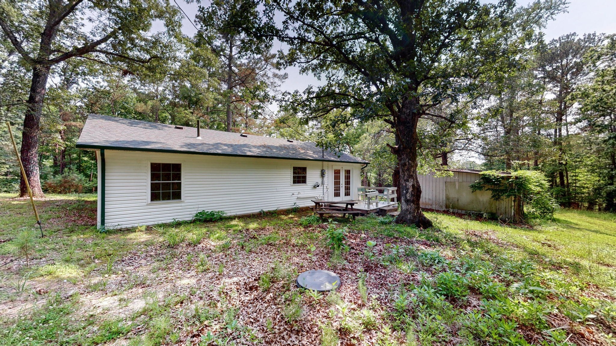 Consider settling in to this place of tranquility. Soak in the lush green surroundings and the sounds of nature. Be undistrubed and have privacy while relaxing. This cabin retreat is nestled on an acre of old oaks and young magnolias. It borders a national forest (Ft Donelson complex) to its east and the TVA boundary land to its south. Just a short stroll (2/10 mile) brings you to the beach and marina of Missing Hill Resort. Lakeview cottages and marina are 1 mile away and Cypress Springs Restaurant and Marina is just over 2 miles away. The beautiful Patterson Point and free boat ramp is 1.5 miles away at the endpoint of Kline Trail itself. Coming inside, you'll walk into a large well windowed South facing living room, flanked by two bright bedrooms. The sit-in sized kitchen features Corian countertops and dual deep sinks within light wood custom cabinetry. The adjacent utility room has two exits, one of which leads through French doors to the back porch and beyond to the woods. Soak in the views or soak in the deep clawfoot tub, made in 1926. Stay in touch with the world with the available fiber optic WK&T internet with 1 Gig plus service available. Note: This parcel has two electric service connections to West KY RECC. This 2nd connection and the 2023 installation of a 1500 septic tank could support a second dwelling, boathouse or both. Locals recall that this property was called Mrs. Kline's fish camp for fishermen and boaters. According to local legend, in the late 1940s, Mr. Kline develeoped "Kline's Dock" for fishermen and boaters (now the modern day Missing Hill Resort). At this cabin, Mrs. Kline would cook up the fishermen's "catch of the day" and serve them up in the large entry room. Grab your chance to live near the lake, surrounded by the beauty of the natural forests that surround Kentucky Lake. Located approx 2 hours from Nashville