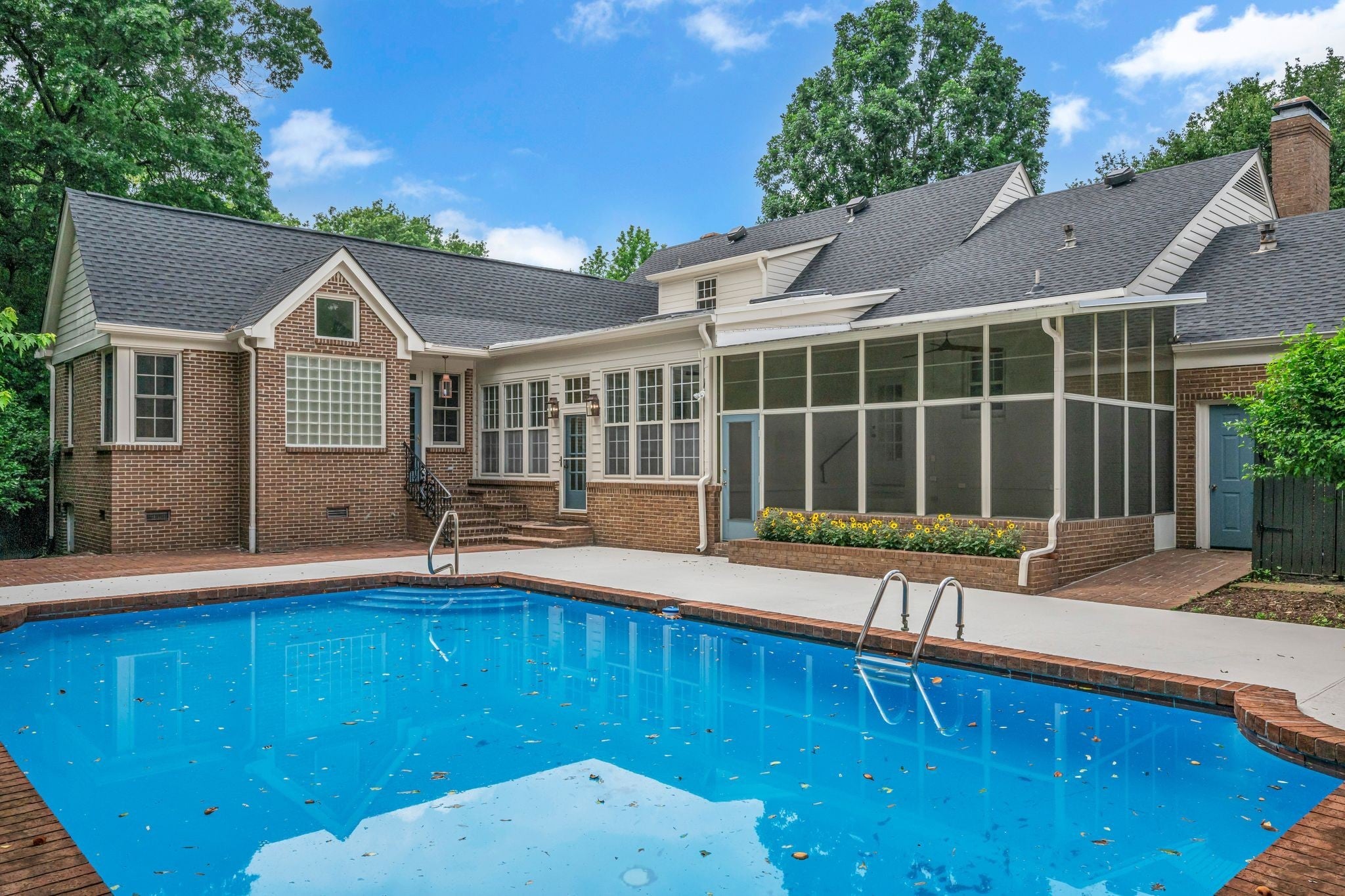 Tucked away in Foxhall Close, a prominent Green Hills address, this classic and spacious Williamsburg-style home is completely updated with freshly refinished hard wood floors and paint throughout, new light fixtures and ceiling fans, a new outdoor kitchen overlooking a private salt-water swimming pool and more. #4 Foxhall Close has generous living spaces for entertaining with 9-foot ceilings downstairs including formal living and dining rooms, a large cozy den with beams and new wine cooler, an abundant family room and a downstairs primary suite with an immense closet. There are a total of 3 bedrooms including 2 upstairs and also a back stairway to a bonus room. The home is secluded in the established Foxhall neighborhood in the heart of Green Hills. Additional features include a new roof and new paint inside and outdoors, new HVAC, encapsulated crawlspace, a 2-car attached garage, and a screened porch. #4 Foxhall is zoned for Julia Green School and within a few moments of Green Hills Mall and Belle Meade.