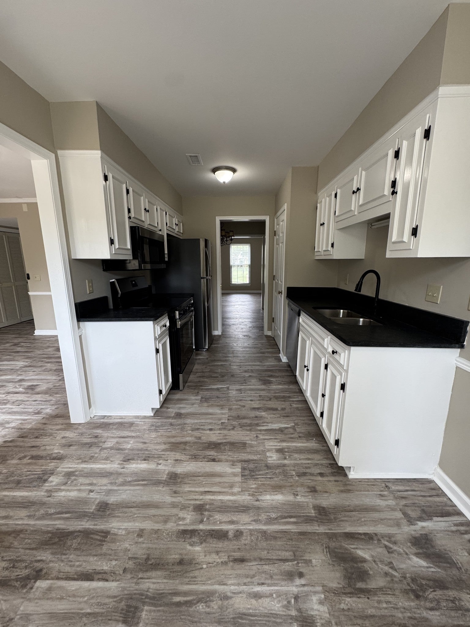 - Electric Range, Dishwasher, Disposal, Microwave, Refrigerator, Stainless Steel Appliance(s)