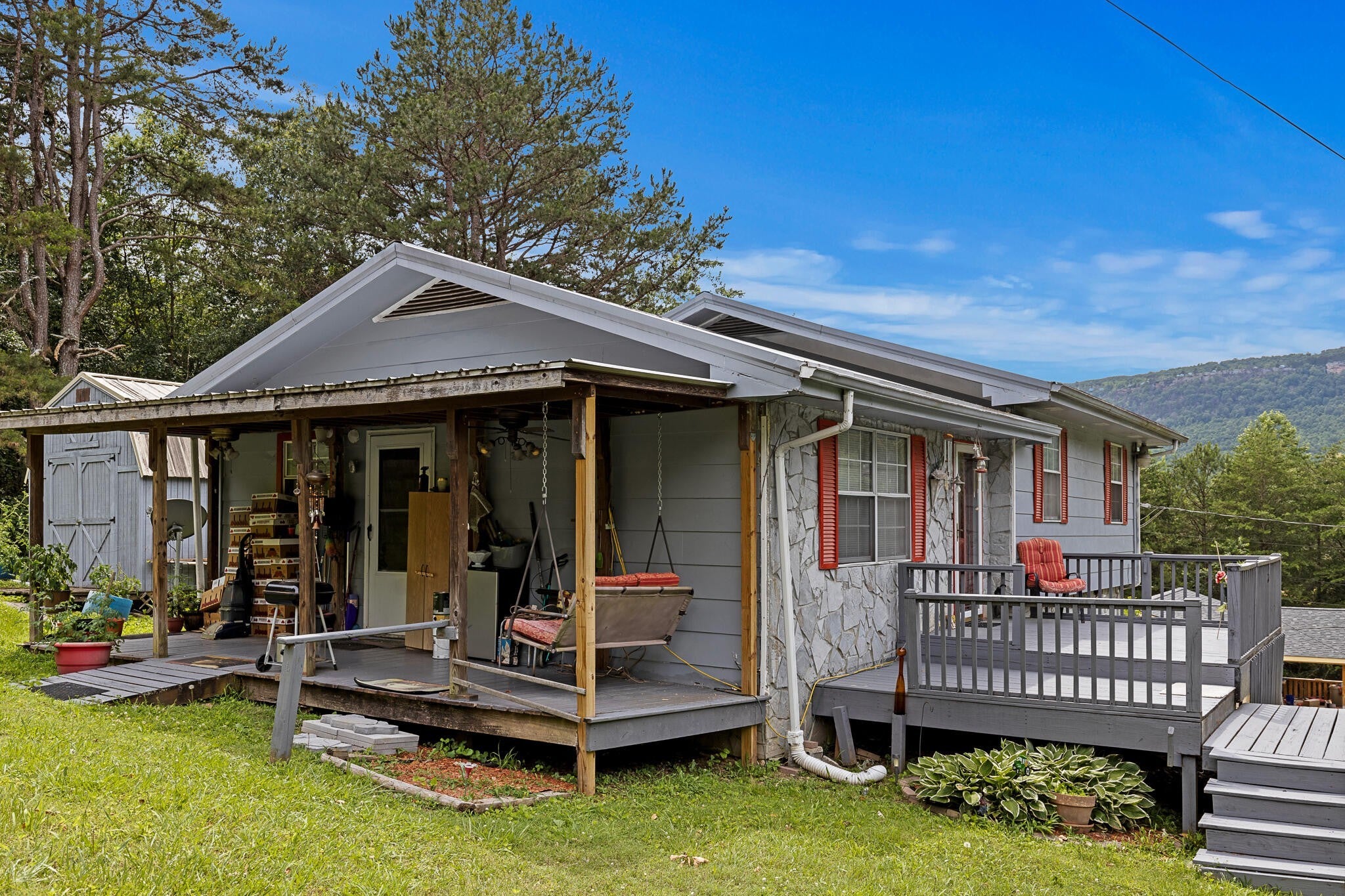 Discover the calm and comfort of countryside living at 460 E Georgia Ave, a peaceful 3-bedroom, 1.5-bath retreat tucked away on a spacious lot with wide-open skies and sweeping mountain views. From the moment you arrive, the stillness of the setting invites you to slow down and settle in. The home welcomes you with a generous front deck, perfect for quiet mornings or soft twilight evenings. To the side, a classic porch swing sways gently in the breeze—a perfect place to listen to the birds, sip tea, or simply be still. Inside, the home offers a cozy, thoughtful layout, with a finished basement that extends your space for relaxation, creativity, or quiet moments with loved ones. Set against a backdrop of natural beauty, the lot provides plenty of room to breathe, with the added convenience of a detached storage shed. Whether you're stargazing from the yard or watching the mountains fade into dusk, this is a place where peace comes easy and every day feels a little slower, a little softer, and a lot more like home.