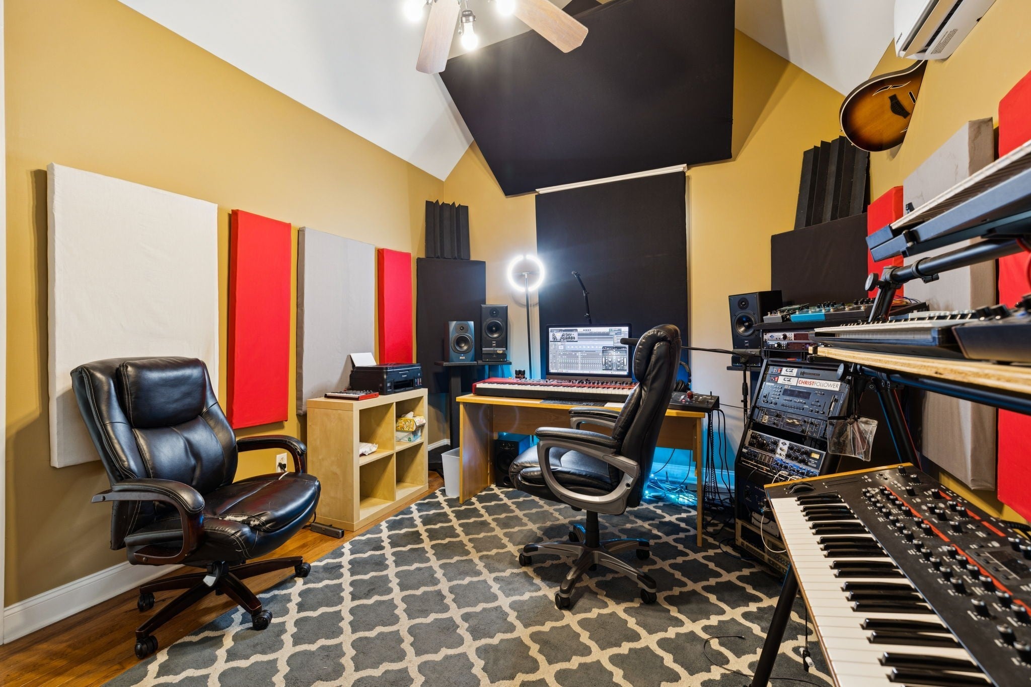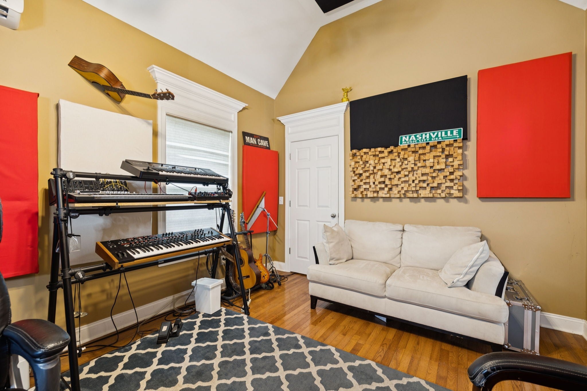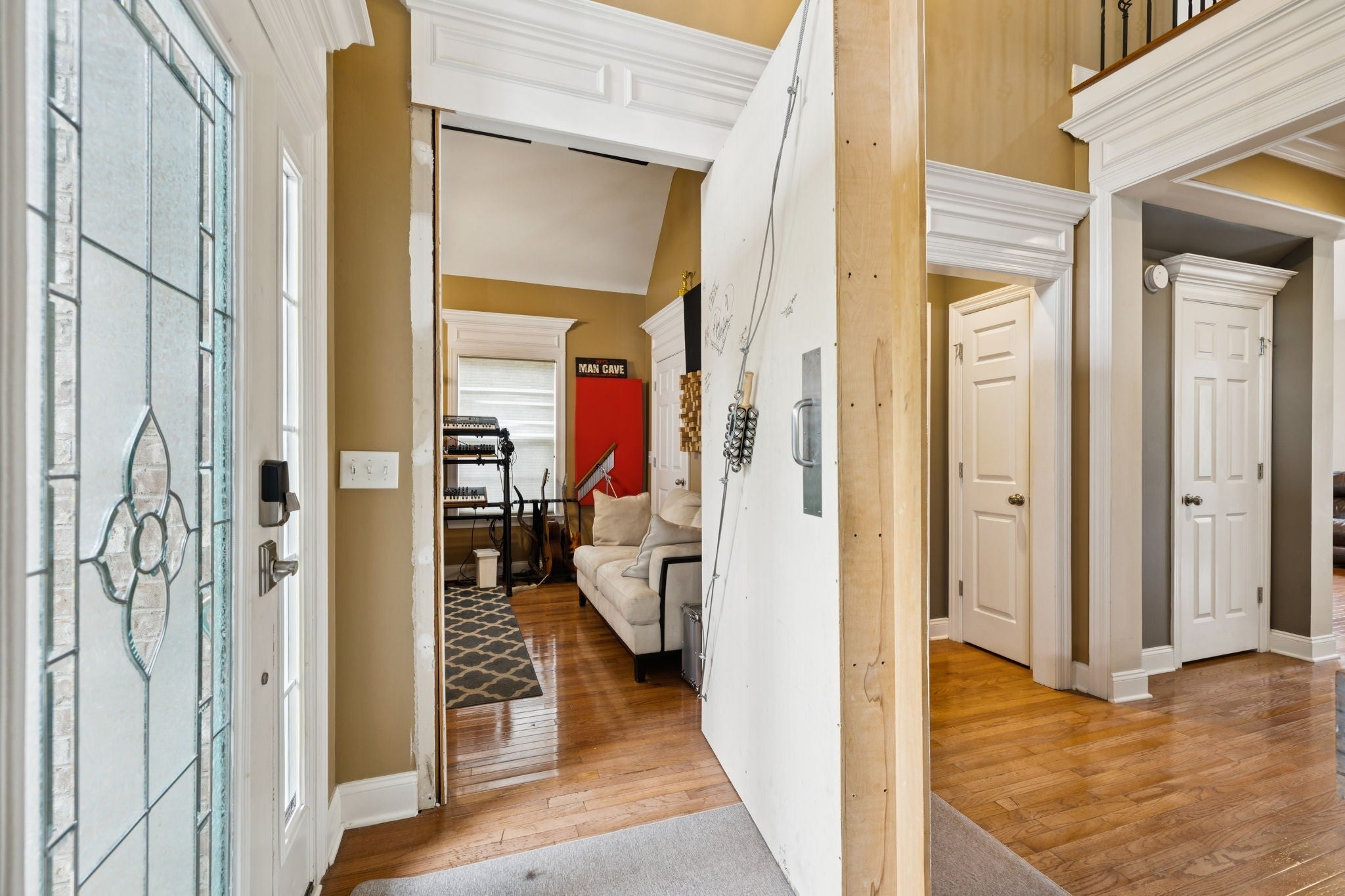 Welcome to 3002 Stow Crossing where thoughtful design meets everyday functionality in one of Murfreesboro’s most sought-after areas. This full-brick home sits on a level corner lot with a spacious fenced-in backyard and 3-car side entry garage. Inside, you’ll find an open, bright floor plan with 5 bedrooms and 2.5 baths, including 2 bedrooms on the main level—one currently used as a state-of-the-art professional recording studio, complete with soundproofing and a full vocal booth cleverly hidden behind a custom bookcase. The kitchen is built for both function and style, featuring granite countertops, a gas range, stainless steel appliances, and a large walk-in pantry. The living room offers a cozy gas fireplace, and just off the eat in kitchen, the covered back porch provides the perfect space to relax or entertain. Upstairs you’ll find a spacious loft/rec room open to the main level below, plus 3 additional bedrooms and a full bath. Located just minutes from Publix, Costco, shopping, and dining—with zoned access to Triple Rockvale schools, this home offers the perfect balance of comfort, convenience, and character. Additional features include a new roof, new carpet, fresh paint, transferable home warranty, and a hidden gem for music lovers. Don’t miss your chance to own this unique and beautifully maintained home in Rutherford County. 48 hr. Kick out clause in effect.