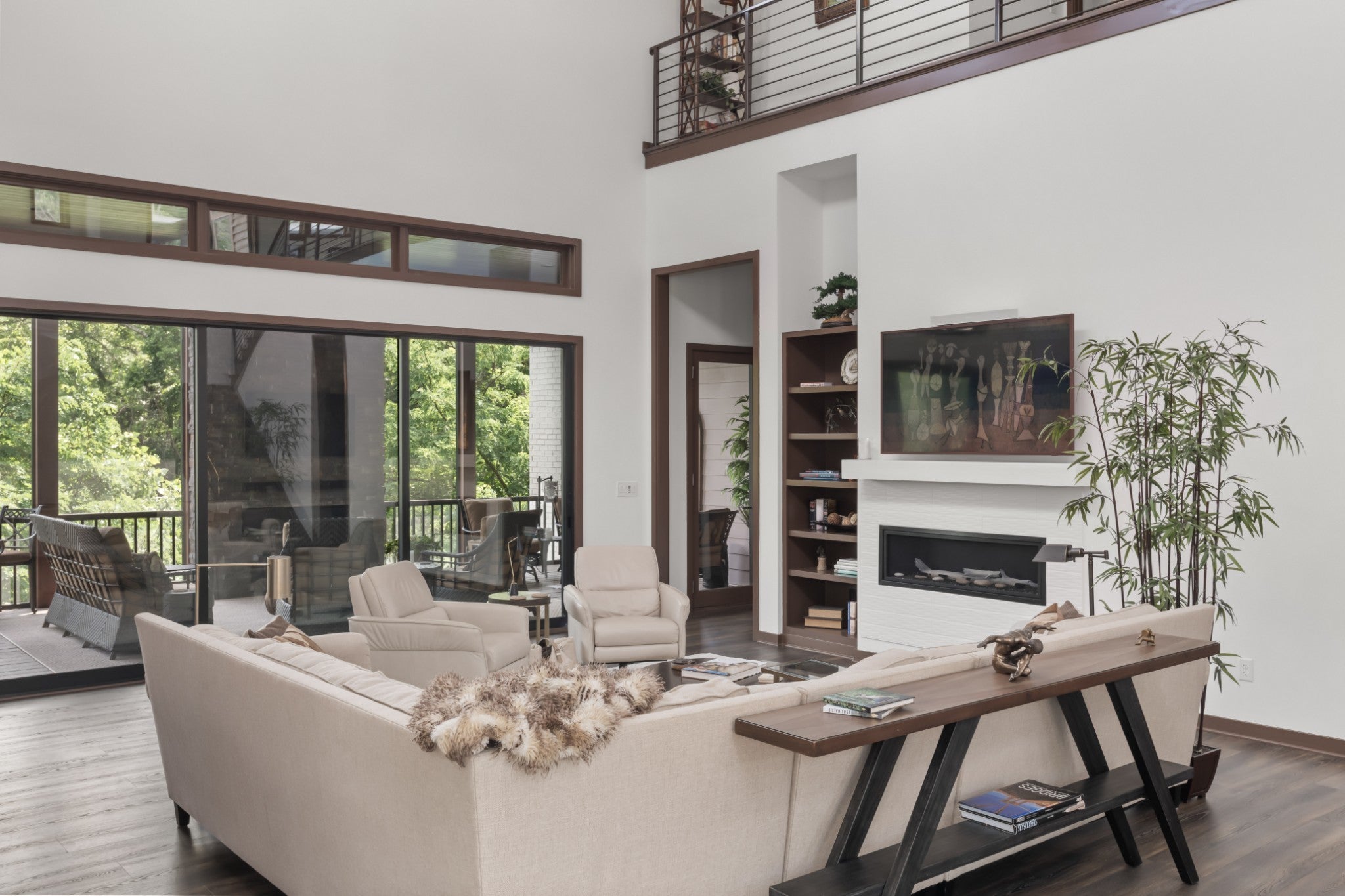 **Contact agent for info on a 5% down payment with no mortgage interest through our preferred lender** Tucked into one of Nashville’s best-kept secrets, this Frank Lloyd Wright inspired home in the private enclave of The Boulders is as approachable as it is polished. Wrapped in greenery and alive with natural light, it spans three thoughtfully designed levels, each space inviting connection, comfort, and quiet retreat. What truly sets this home apart is its effortless flow for entertaining. High-end appliances anchor a kitchen designed for gathering, while the open-concept living space transitions seamlessly into 1,780 square feet of outdoor living. Screened porches, an outdoor kitchen, multiple decks, and a rooftop retreat create settings for everything from summer dinners to stargazing. All four bedrooms are en suite, offering comfort and privacy for family and guests alike. A dedicated study provides a serene work-from-home space, while the oversized flex room adapts to your lifestyle. Movie nights, game days, workouts, or guest overflow, it evolves as your needs do. Wildlife wanders by. Sunsets steal the show. And downtown Nashville is just 20 minutes away. Close enough for convenience, yet a world away in spirit. Private, polished, and undeniably special, this is more than a home. It’s a life waiting to be lived.