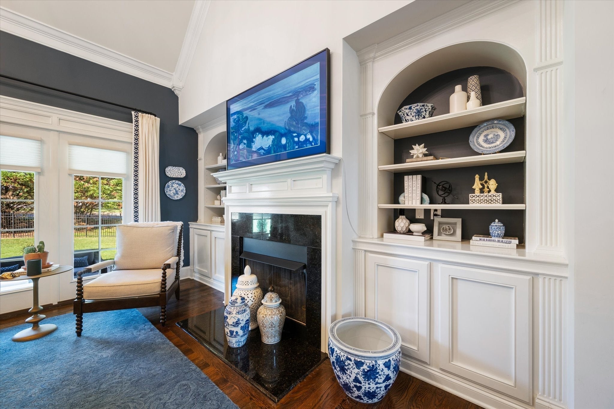 - Bookcases, Built-in Features, Ceiling Fan(s), High Ceilings, Walk-In Closet(s), Wet Bar