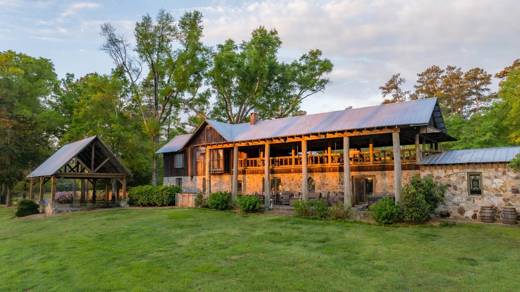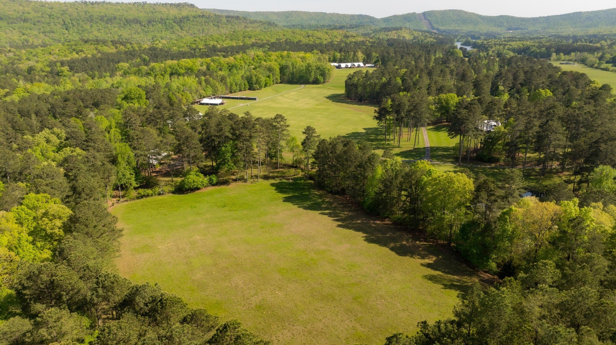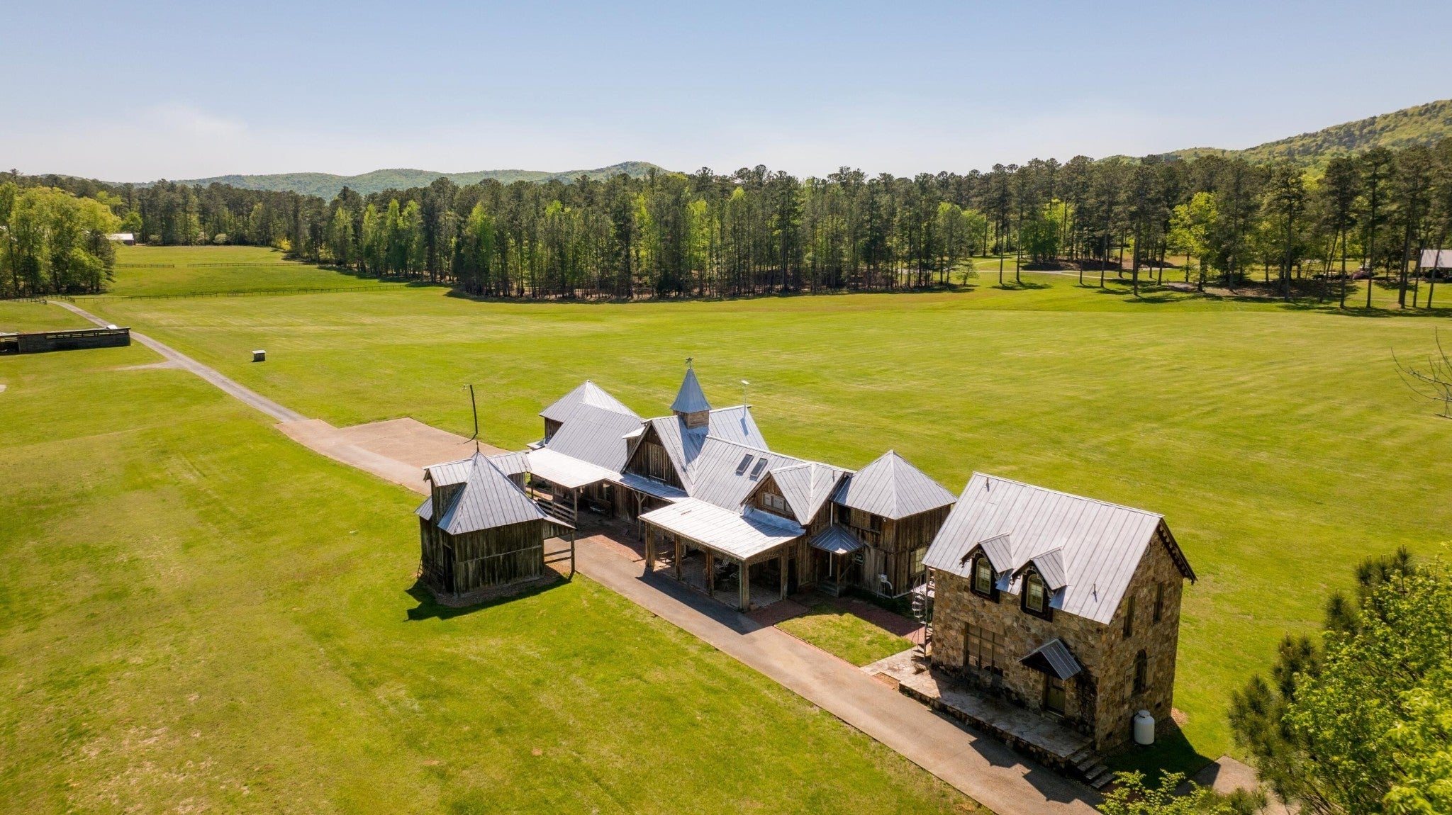 Located in the heart of scenic Big Texas Valley in northwest Georgia, this remarkable 307± acre estate offers a rare opportunity to own a legacy property with a unique blend of natural beauty, thoughtful improvements, and versatile utility. Just outside historic Rome and within easy reach of Atlanta and Chattanooga, the property expands from rolling pastures surrounded by mature pines and hardwoods to dramatic mountain terrain climbing 500± feet up Simms Mountain. It lies directly across from the 5,000-acre Rocky Mountain Recreation Area—known for its fishing, two lakes totaling 559 acres, and trails—and is surrounded by other large landowners within the boundary of the 750,000± acre Chattahoochee National Forest. The estate has a rich legacy in northwest Georgia's equestrian and hospitality circles, formerly operated as Zion Farms Equestrian Center by the Cooper family—local leaders in both agriculture and business. The architectural centerpiece is the striking European-style stable originally constructed by the Coopers as a boarding barn and later transformed into a beautifully appointed event venue. The structure retains its full equestrian potential and offers immediate function as an event venue. The land has been thoughtfully improved with a collection of structures designed for gathering, retreat, and recreation. A total of ten living quarters are spread throughout the property, providing options for a family compound, guest accommodations, or income-generation. A private main lodge, a mountain cabin, a dedicated office, and a collection of charming cottages provide flexibility and comfort, while extensive infrastructure—trails, roads, ponds, wells, and utility buildings—support both lifestyle and land management goals. Convenient to shopping, dining, and private aviation at the nearby Richard B. Russell Regional Airport (RMG), this is a turnkey opportunity to acquire one of northwest Georgia's most distinctive and versatile rural properties.
