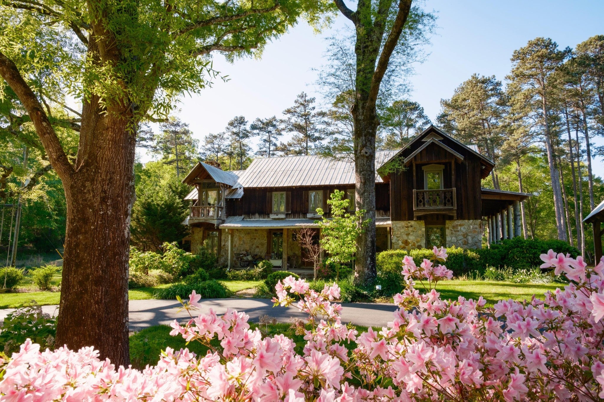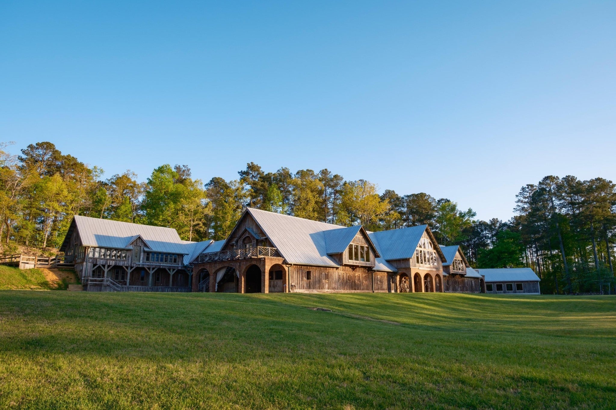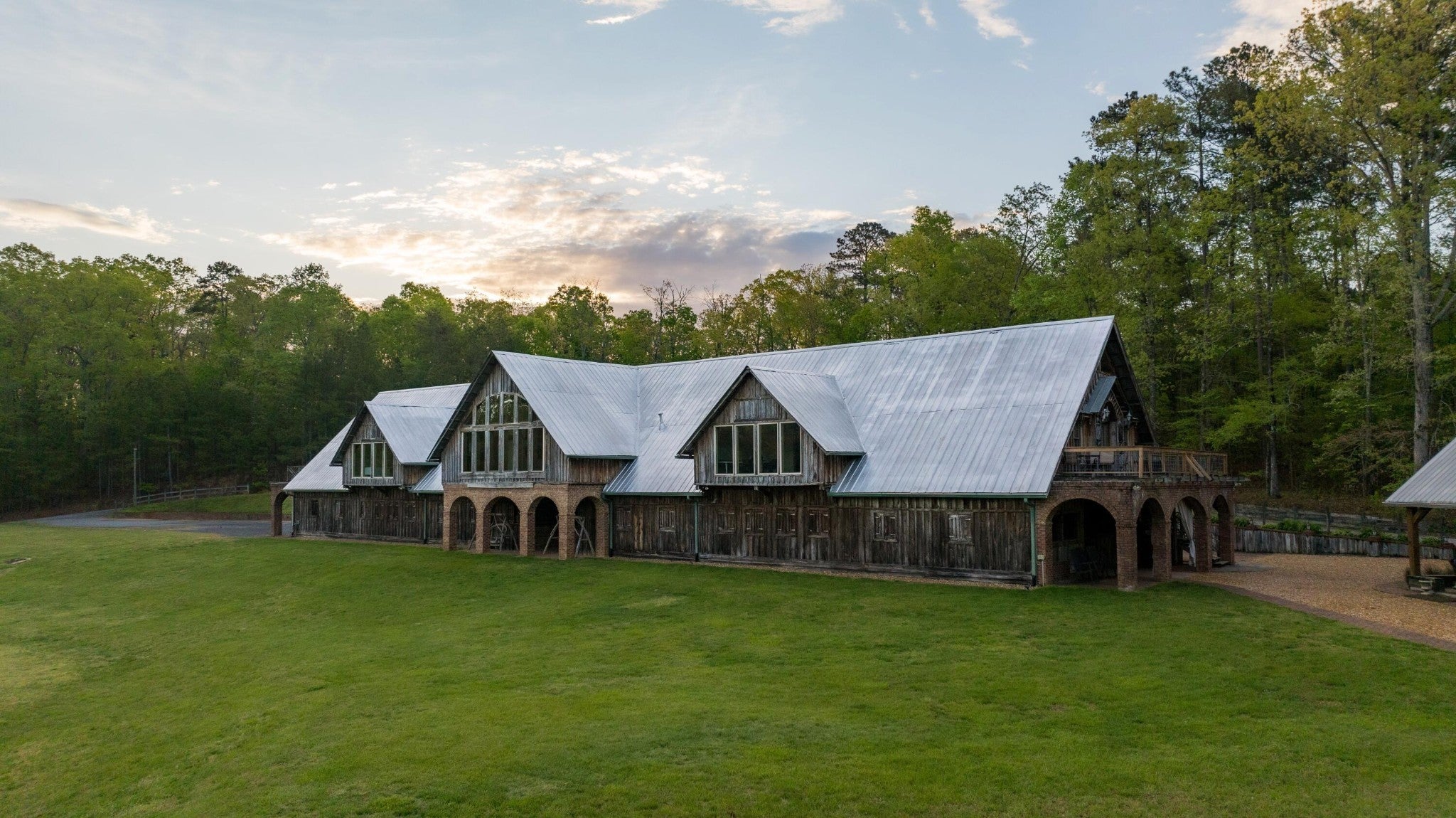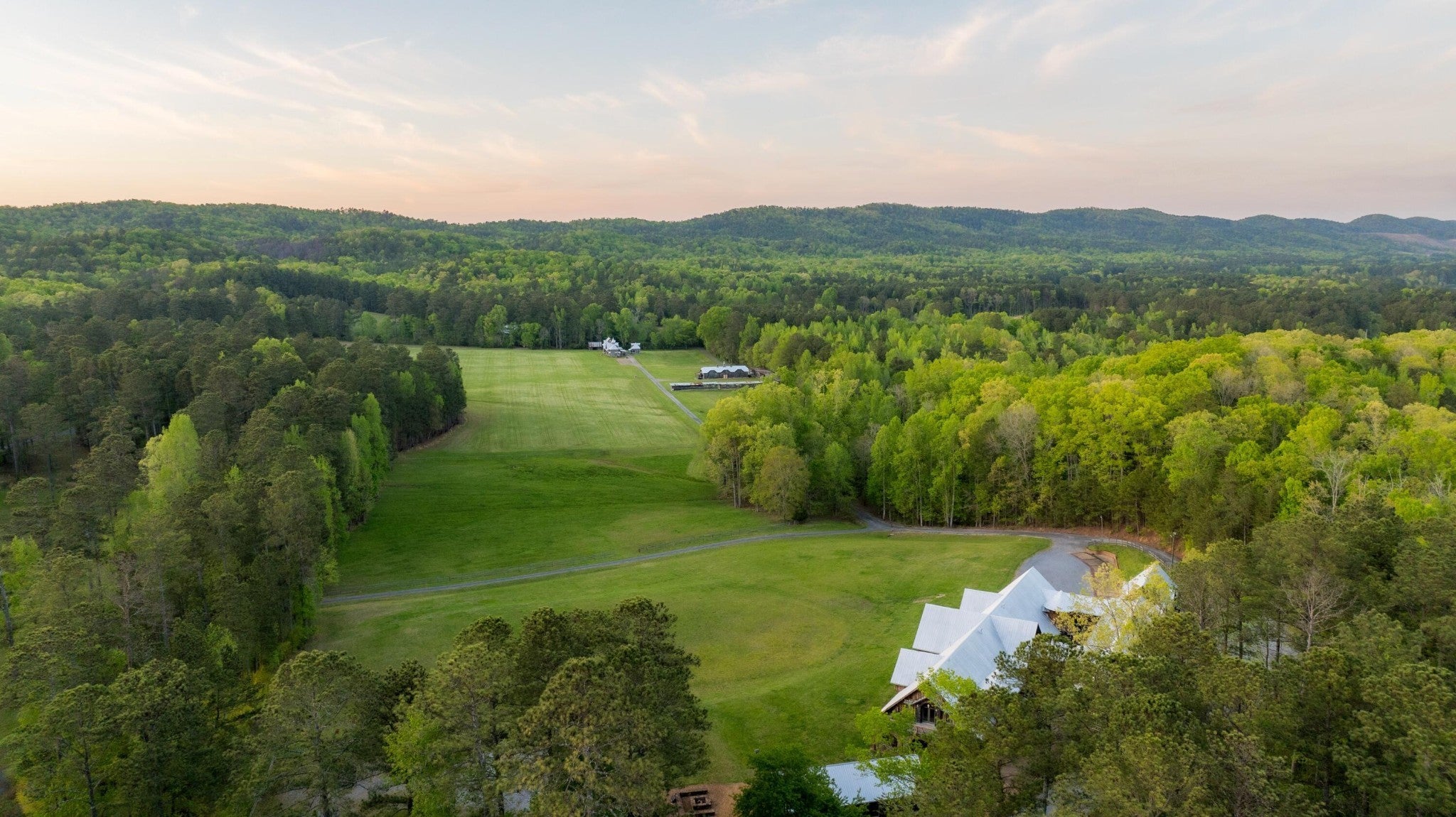 Located in the heart of scenic Big Texas Valley in northwest Georgia, this remarkable 307± acre estate offers a rare opportunity to own a legacy property with a unique blend of natural beauty, thoughtful improvements, and versatile utility. Just outside historic Rome and within easy reach of Atlanta and Chattanooga, the property expands from rolling pastures surrounded by mature pines and hardwoods to dramatic mountain terrain climbing 500± feet up Simms Mountain. It lies directly across from the 5,000-acre Rocky Mountain Recreation Area—known for its fishing, two lakes totaling 559 acres, and trails—and is surrounded by other large landowners within the boundary of the 750,000± acre Chattahoochee National Forest. The estate has a rich legacy in northwest Georgia's equestrian and hospitality circles, formerly operated as Zion Farms Equestrian Center by the Cooper family—local leaders in both agriculture and business. The architectural centerpiece is the striking European-style stable originally constructed by the Coopers as a boarding barn and later transformed into a beautifully appointed event venue. The structure retains its full equestrian potential and offers immediate function as an event venue. The land has been thoughtfully improved with a collection of structures designed for gathering, retreat, and recreation. A total of ten living quarters are spread throughout the property, providing options for a family compound, guest accommodations, or income-generation. A private main lodge, a mountain cabin, a dedicated office, and a collection of charming cottages provide flexibility and comfort, while extensive infrastructure—trails, roads, ponds, wells, and utility buildings—support both lifestyle and land management goals. Convenient to shopping, dining, and private aviation at the nearby Richard B. Russell Regional Airport (RMG), this is a turnkey opportunity to acquire one of northwest Georgia's most distinctive and versatile rural properties.