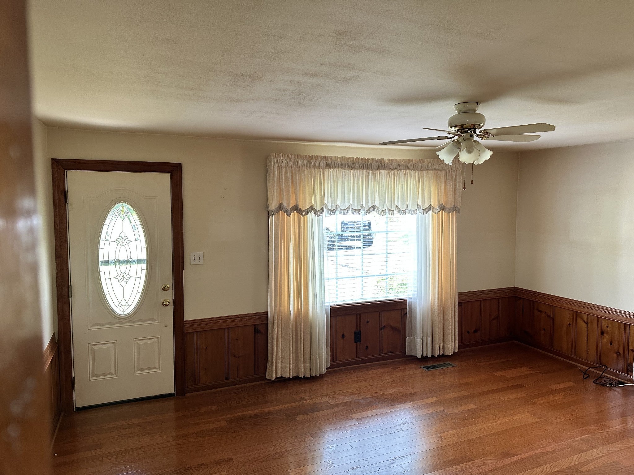 Charming country home with original hardwood floor throughout. Bedroom's carpet can be removed to reveal hardwood floors. 2bedroom 1 bath well taken care of and cleaned, Ready for that new couple buying first home. Solid oak construction will sturdy comfortable home for years to come. Large 2 acre lot with extra driveway connection to highway 100 gives plenty of room for ideas and expansion.
