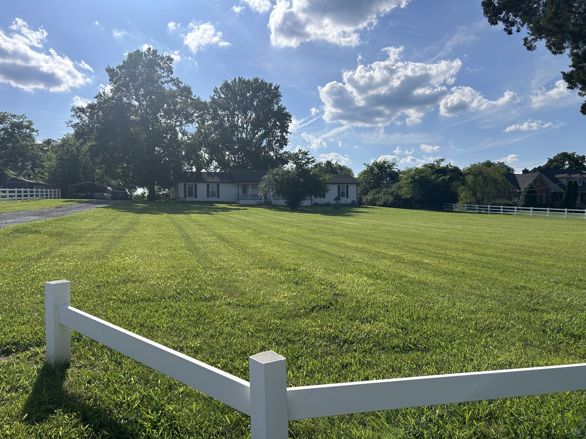 Williamson County-Franklin, TN-Lovely 5-acre property with endless potential. A 24-hour notice is required to show. Ideal for horses—approximately 2.5 acres are fenced and cross-fenced, and the 30x40 barn includes a tack room with exterior water access. The current owner has kept two horses comfortably on the property. The main home features 3 bedrooms, and a detached 1-bedroom apartment, also finished by a previous owner, is available. This space is perfect for an office, studio, guest suite, or homeschool area. The apartment features a new HVAC system installed in 2021. Home updates include new windows in 2014, a roof replaced in 2007, and granite countertops added to the kitchen in 2007. A 12x24 storage building with electricity and a new metal roof provides great additional storage. Beyond the fenced pasture are 2.5 wooded acres, offering privacy and room to explore. The property also includes multiple carports that can accommodate up to 15 vehicles. Enjoy peaceful country living from the charming covered rocking-chair front porch. 35 minutes from Nashville and the Nashville International Airport. 15 minutes from the square in downtown Franklin, Franklin is within a 4-6 hour drive to the beach or the mountains. Country living with conveniences nearby.