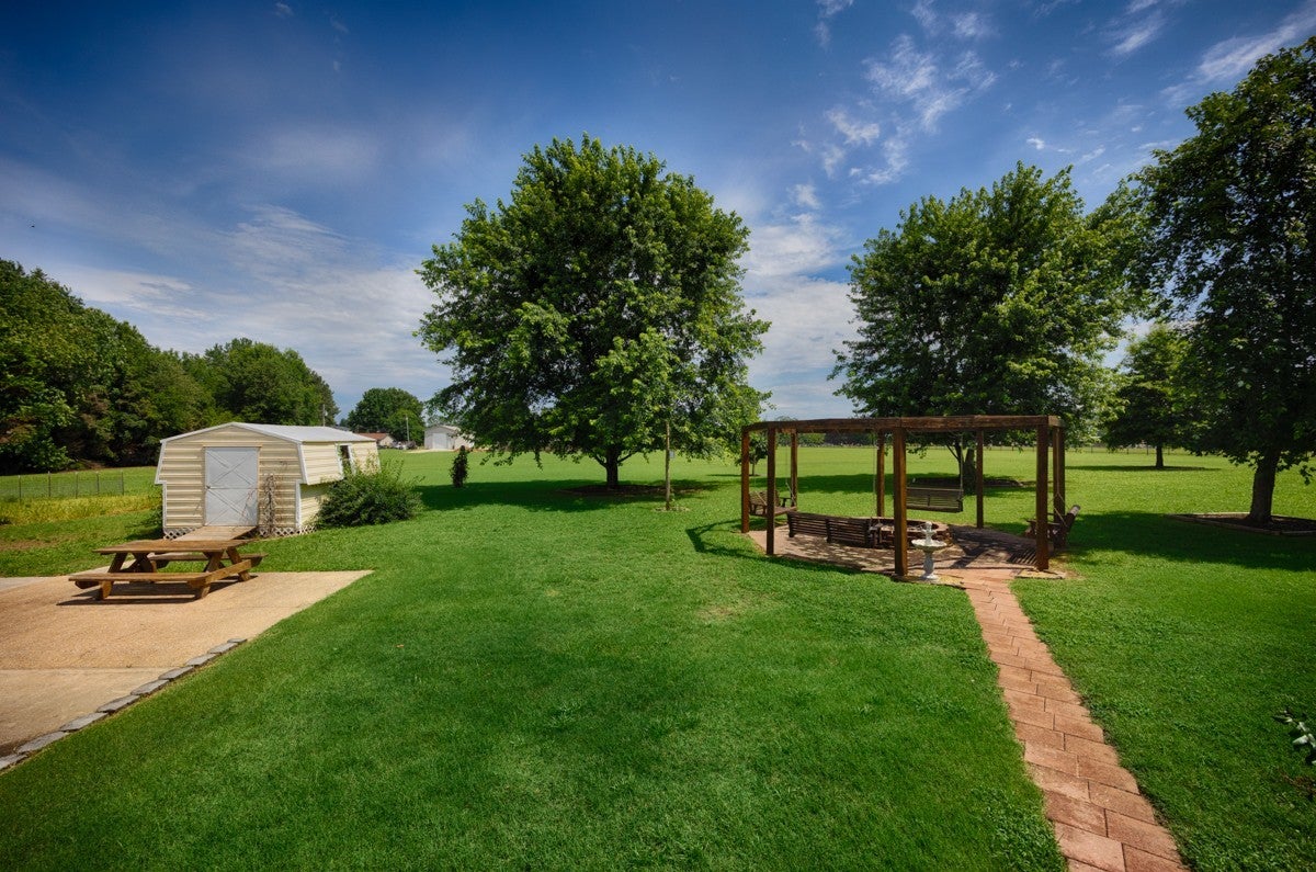 Beautiful 5BR/4BA 3812sf brick home on +/- 2.5 acres in a private country setting in Athens and convenient to 72 and I-65! This spacious home has one bedroom on the main floor and 4 upstairs. Each bathroom has custom tile showers. Home has a large eat in kitchen and a formal dining room. The living room and den both have gas log fireplaces. Many spaces for outdoor entertaining: a pergola with a fire pit, a gazebo, mostly level yard with mature trees to provide shade, open deck, a patio and a large, covered porch. Property is equipped with two central units in the home, concrete driveway and sidewalk, detached 2-car garage with saferoom, additional 12x16 outbuilding and a garden spot.