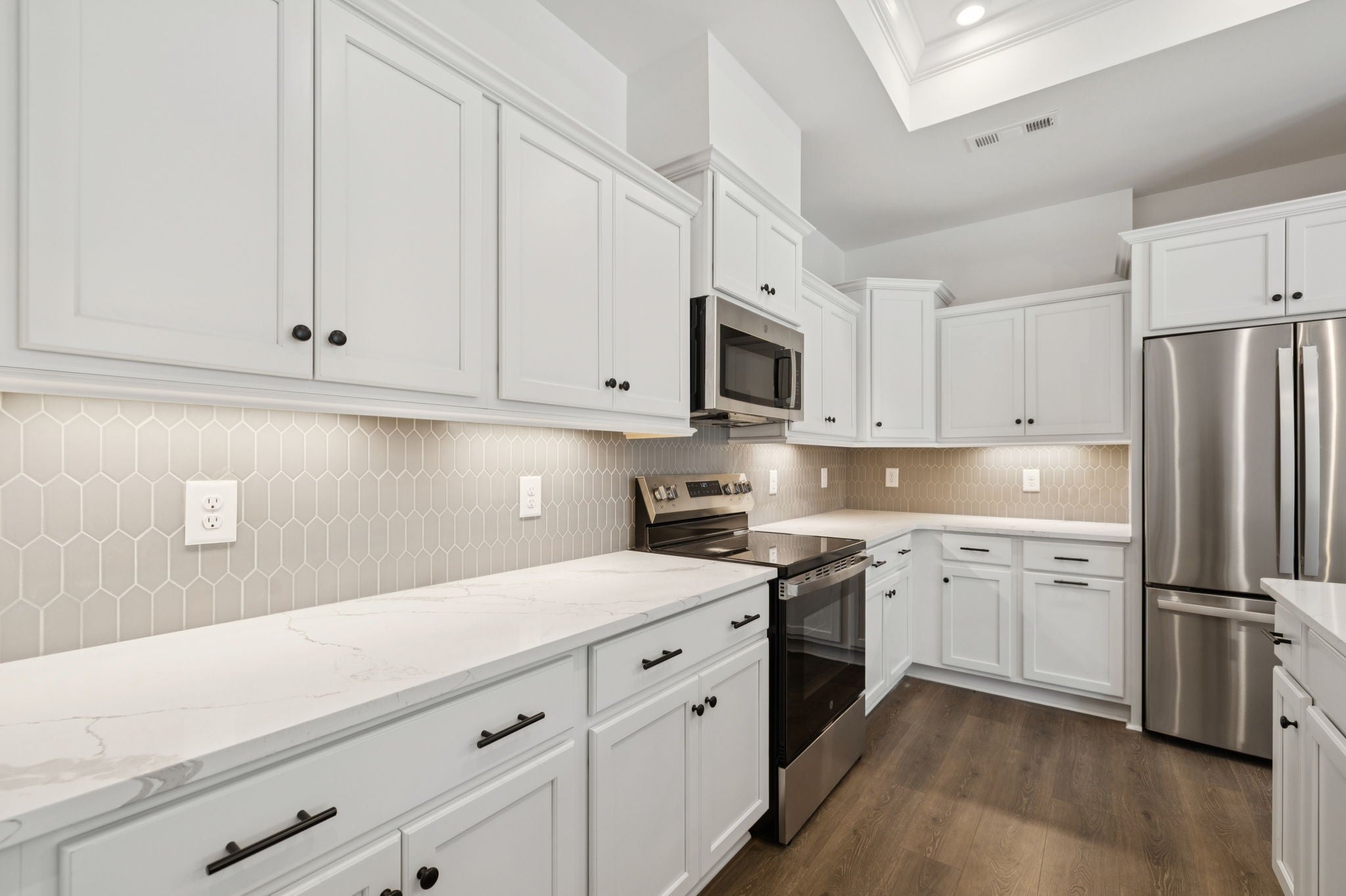 - Electric Range, Dishwasher, Disposal, Microwave, Stainless Steel Appliance(s)