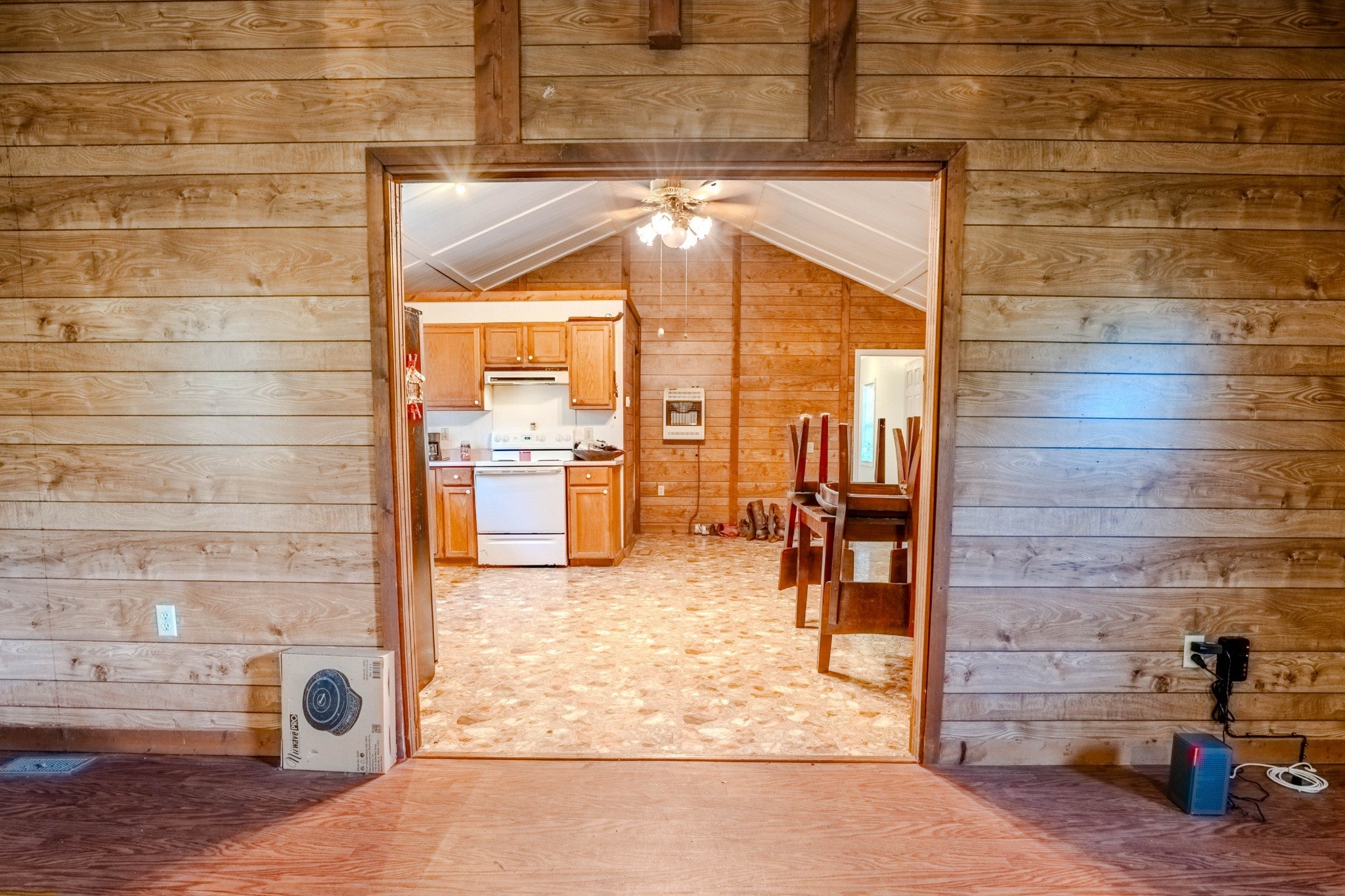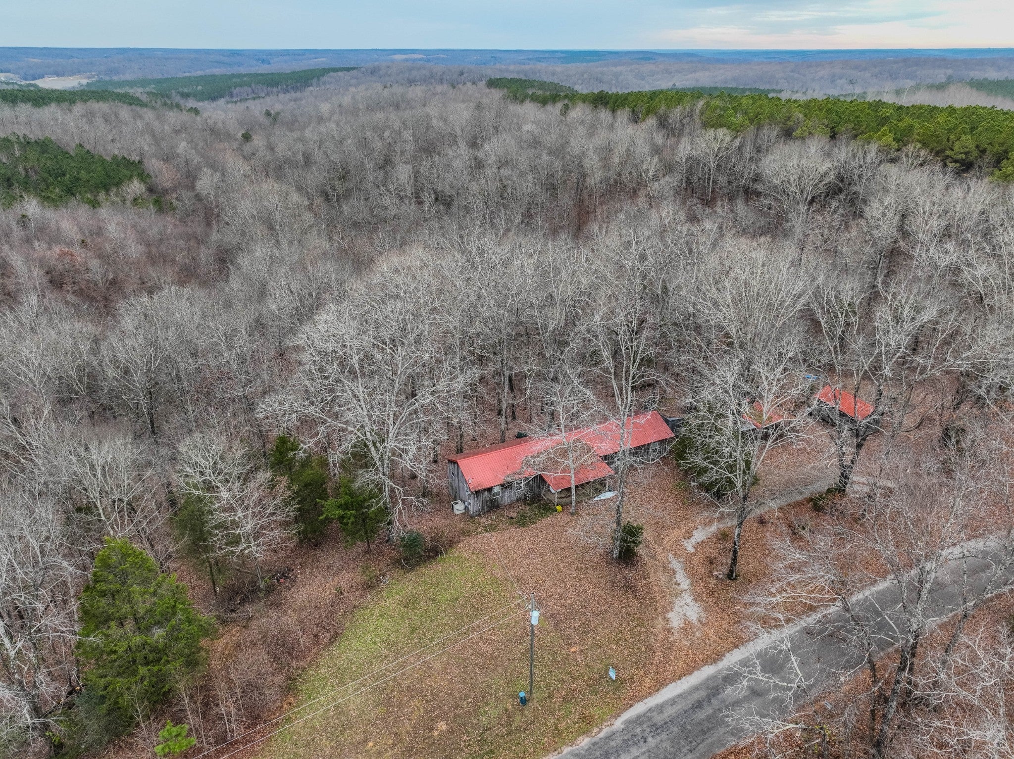 Located in a very private setting, this 2-bedroom, 2-bath wood-sided home with a red metal roof offers peace, space, and functionality. The home features a large living room, open kitchen and dining area, and a spacious primary bedroom with its own door to the outside. The primary bathroom includes a walk-in shower and a washer and dryer. A matching storage building adds convenience. With approximately 1,500 sq ft of living space and 50± wooded acres, this property is perfect for enjoying nature and offers excellent deer hunting.