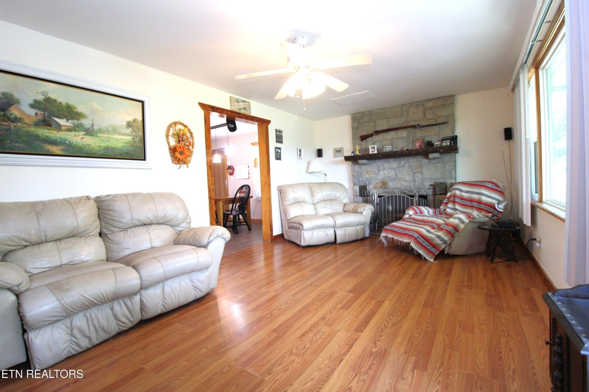 Farm life is the best! NO Restrictions with views that will make you sleep outside! 89-Acre Farmstead with farmhouse that has some updating. Welcome to your dream countryside escape! Settled in the heart of 89 picturesque acres, this exceptional Tennessee farmstead offers mountain views, stocked ponds, wildlife and turnkey functionality—perfect for agriculture, recreation, or private retreat living. The charming 1,467 sq. ft. farmhouse has been thoughtfully updated from 2018 to the present, blending rustic character with modern upgrades. This 4-bedroom, 1.5-bath home features solid wood cabinetry with under-cabinet lighting, stainless steel appliances, durable flooring throughout, new vinyl windows, and a cozy wood-burning fireplace. The owner's suite opens through sliding glass doors to a partially covered deck—overlooking one of three serene ponds, two of which are fully stocked for fishing or recreation surrounded by open fields with horses. A gated, 1/4-mile private drive leads to the centrally located homesite, ensuring ultimate privacy and tranquility. Enjoy stunning views of open fields, peaceful water features, and native wildlife from both the inviting front porch and spacious back deck. The land itself is a working gem—70 acres of cross-fenced, productive pasture land that has historically yielded three hay cuts annually. A majestic 100-year-old barn stands tall with a 6'' poured concrete floor, oversized entry doors, and a loft—ready to be revitalized with minimal effort. The property also features three wells, a paddock, mature hardwood trees, and a commercial-grade, hard-piped airflow system. Additional highlights include: Property enrolled in Tennessee Greenbelt program for reduced property taxes, Public water service to the home, in addition to three wells, Natural gas service to the home, Large storage building, Generac whole-house generator with a privately owned propane tank, Security system for peace of mind.