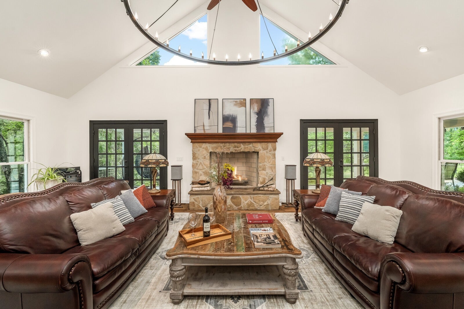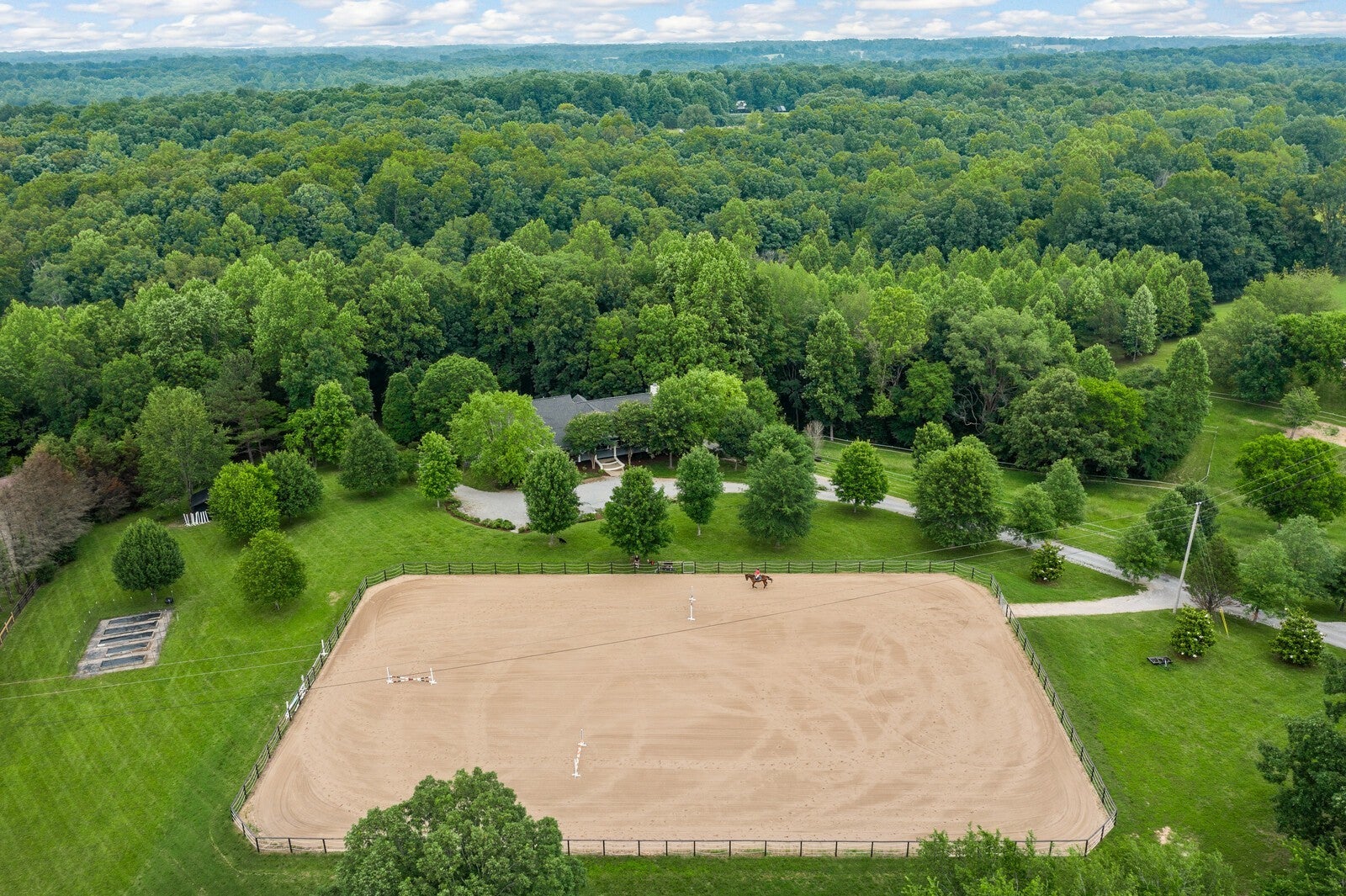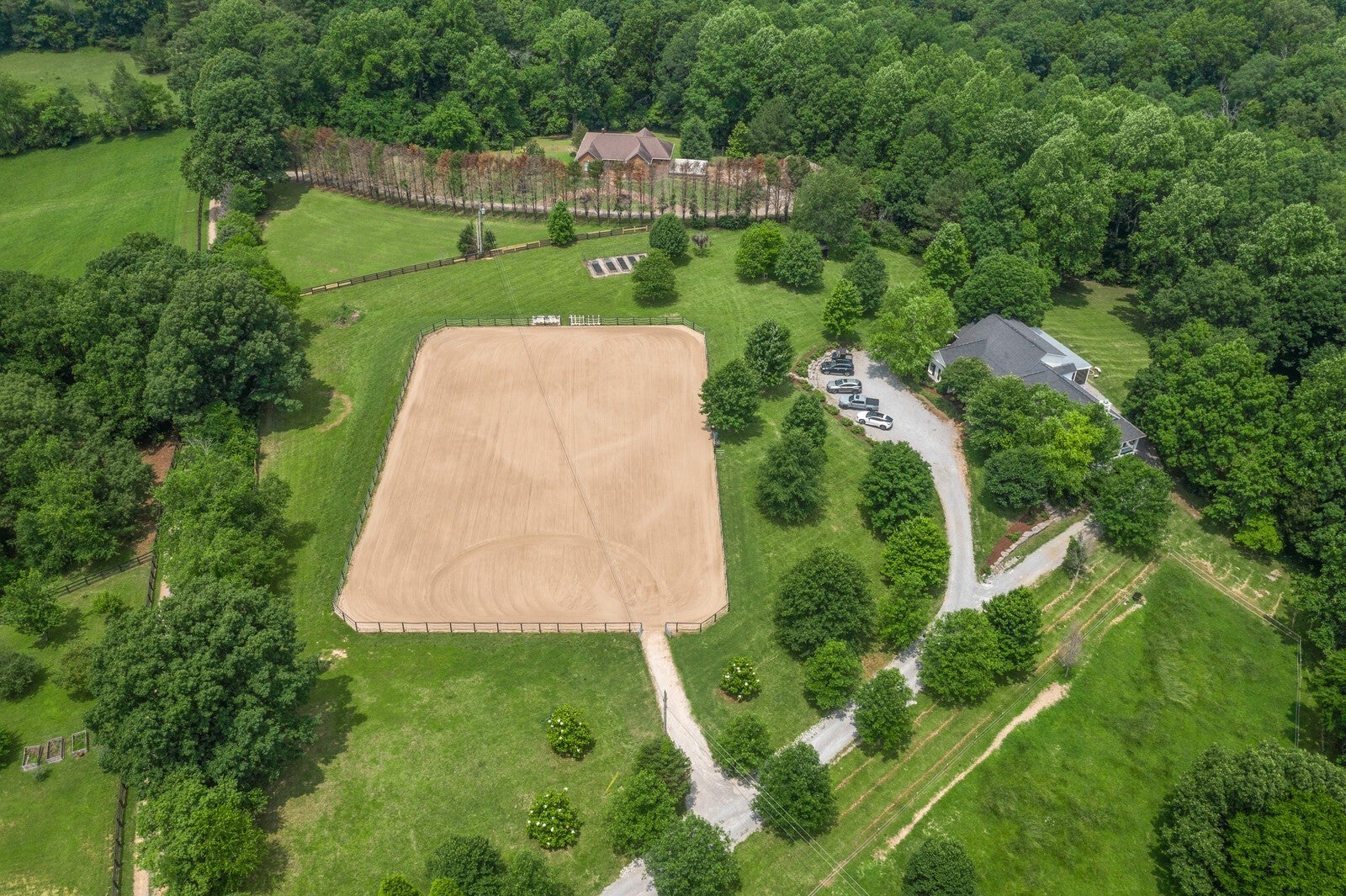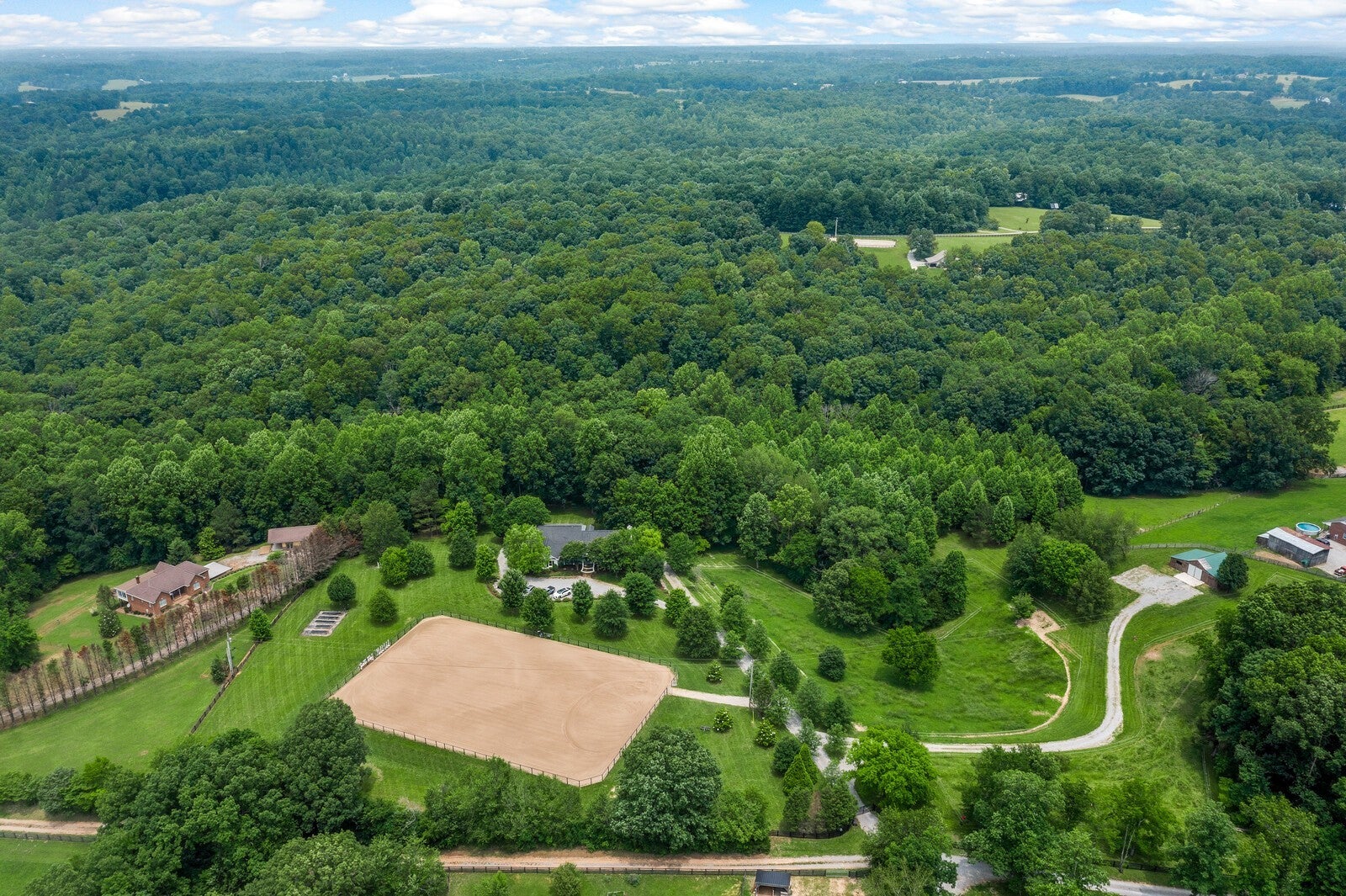 BRING YOUR HORSES and MUSICIANS! Welcome to Greenhaven Estate in Williamson County —luxury equestrian hilltop property on 21 private acres just off Interstate 840, and only minutes from Leiper's Fork and Franklin. 4-stall HORSE BARN with concrete aisle. NEW 135'x210' EQUESTRIAN ARENA. FENCED PASTURE. FOREST for HUNTING and HIKING. GATED Property. 7,000 sq.ft. 5 bedrooms, 5-1/2 bathrooms. Gourmet kitchen. 3 fireplaces. 2,300 sq. ft. basement apartment with spacious bedroom, full-sized kitchen, 1-1/2 baths and has room for your recording/rehearsal studio, game room, theater, gym, wine cellar, etc.. Greenhaven Estate - Luxury, Privacy, Horses and Entertaining in the rolling hills of Williamson County.