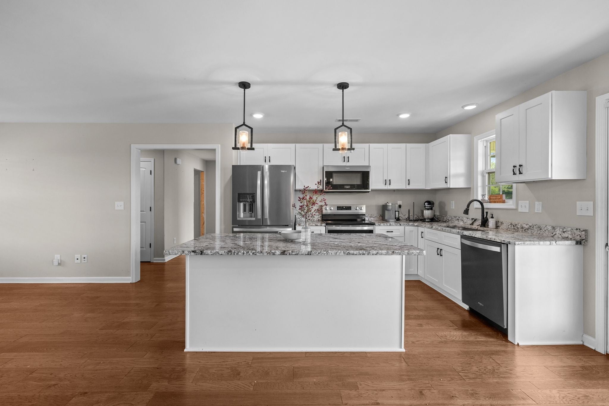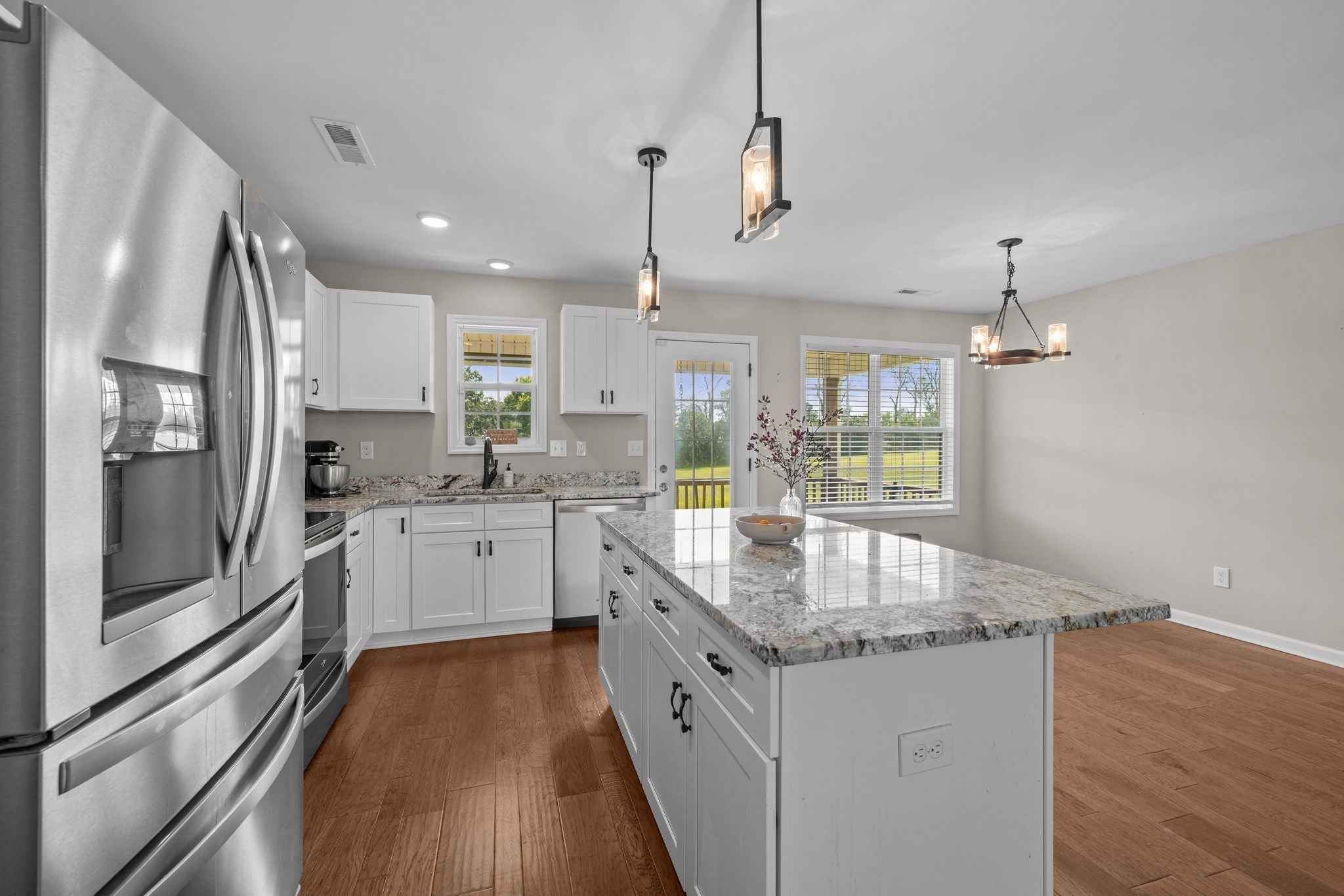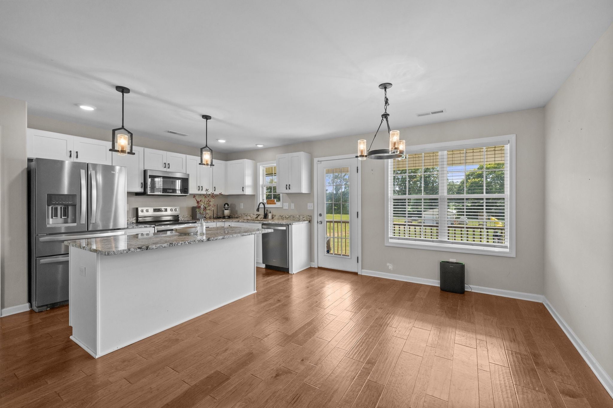 Built in 2021, this charming 3-bedroom, 2-bath home offers 1,533 square feet of well-planned living space on a generous 1.26-acre lot. On the inside you will find beautiful hardwood floors, granite countertops in the kitchen and stainless-steel appliances. The back porch offers a serene surrounding. There is plenty of space in the detached shop for hobbies or extra storage space. This location gives a good country setting feel and is one you don't want to miss out on. Bring your toys and live the country life!