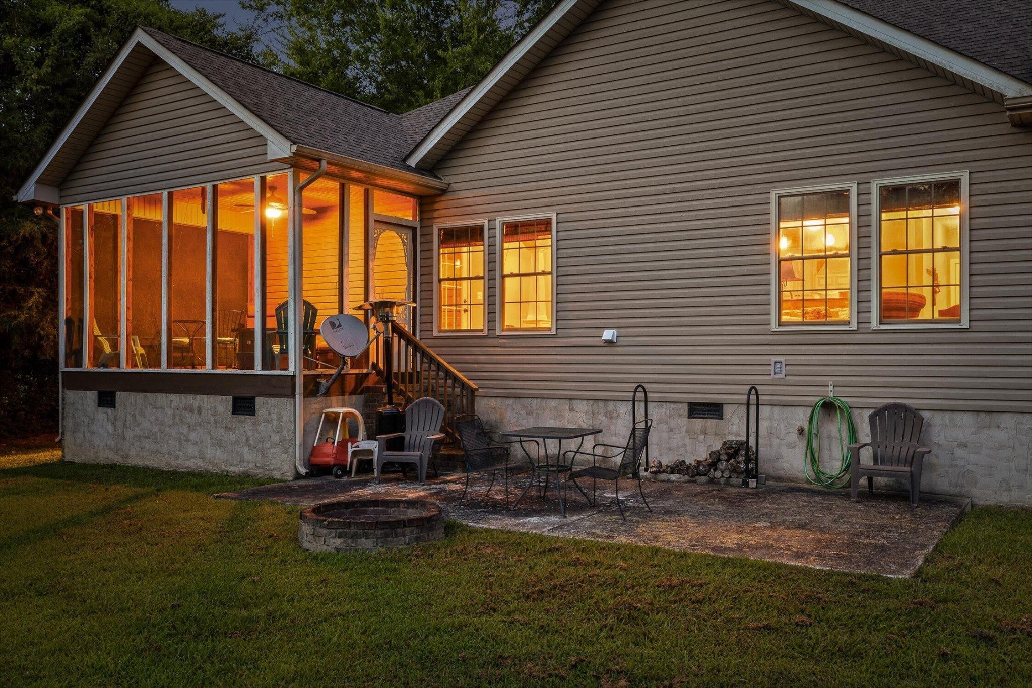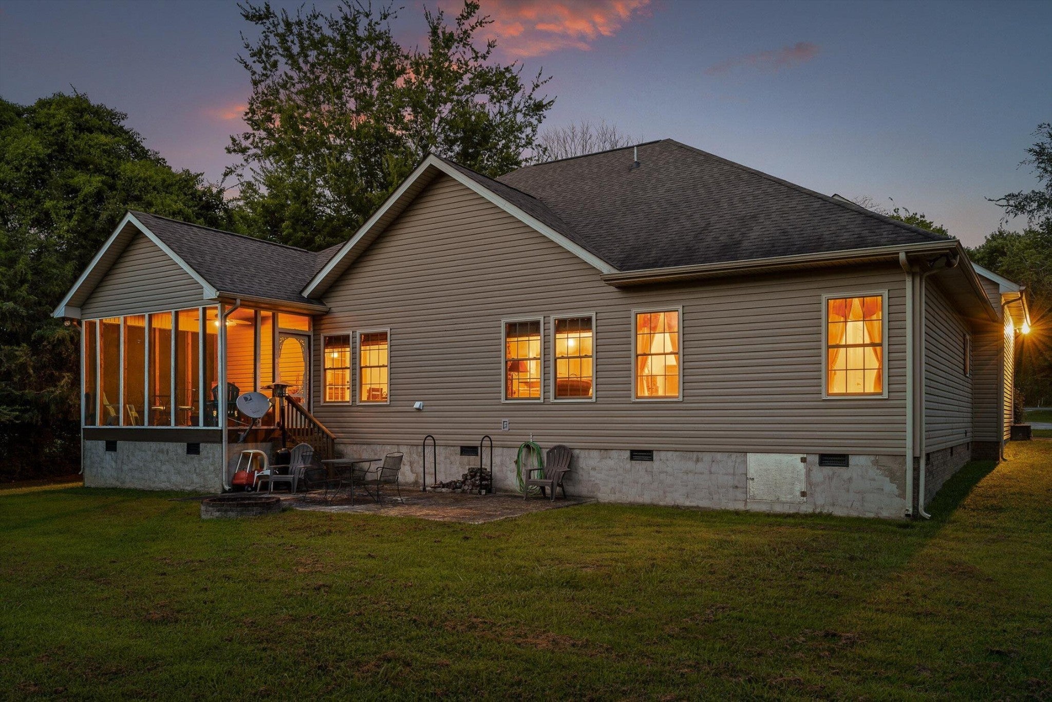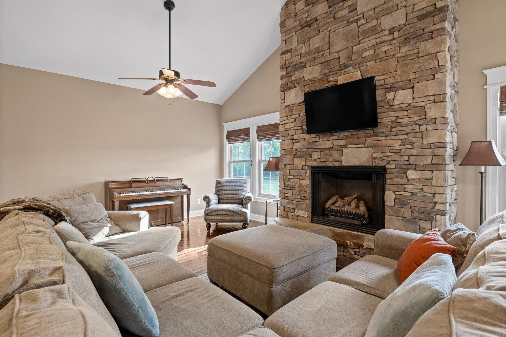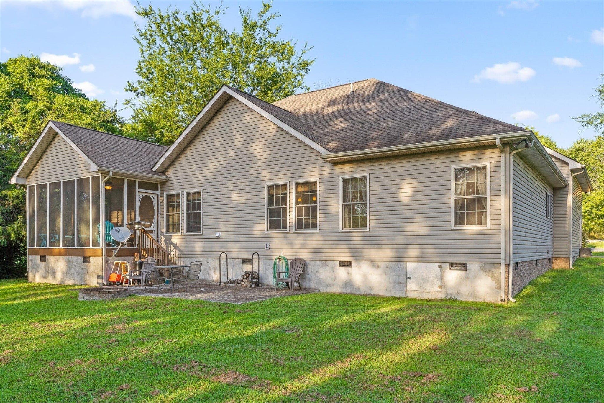 Step into this beautiful 4-bedroom, 2-bathroom home nestled on just under an acre of flat, open land—perfect for enjoying the peace and space of country living. The spacious floorplan welcomes you with vaulted ceilings in the living room, creating an airy and inviting atmosphere centered around a striking stone fireplace, ideal for cozy evenings. The connected kitchen combines the feel of a traditional separate kitchen with the benefits of an open floorplan, maintaining seamless flow into the living space. Just off the kitchen, the dining room offers plenty of room for gatherings and opens to a private screened-in back deck. Overlooking the expansive backyard, the deck is perfect for entertaining or simply relaxing while taking in the view. With room to create your dream outdoor retreat—be it an inground pool, a landscaped hideaway, or a large play space for kids—the possibilities are endless. The primary bedroom is a serene escape with trayed ceilings, a ceiling fan, and abundant natural light. The en-suite primary bathroom offers a spa-like feel with dual vanities, a luxurious soaking tub, and an oversized walk-in shower. A second bedroom is also conveniently located on the main level, while the third bedroom enjoys extra privacy as a bonus room above the garage. Additional features include a two-car garage providing ample storage and parking. Don't miss the chance to make this versatile and spacious property your own—offering both comfort and room to grow in a picturesque setting.