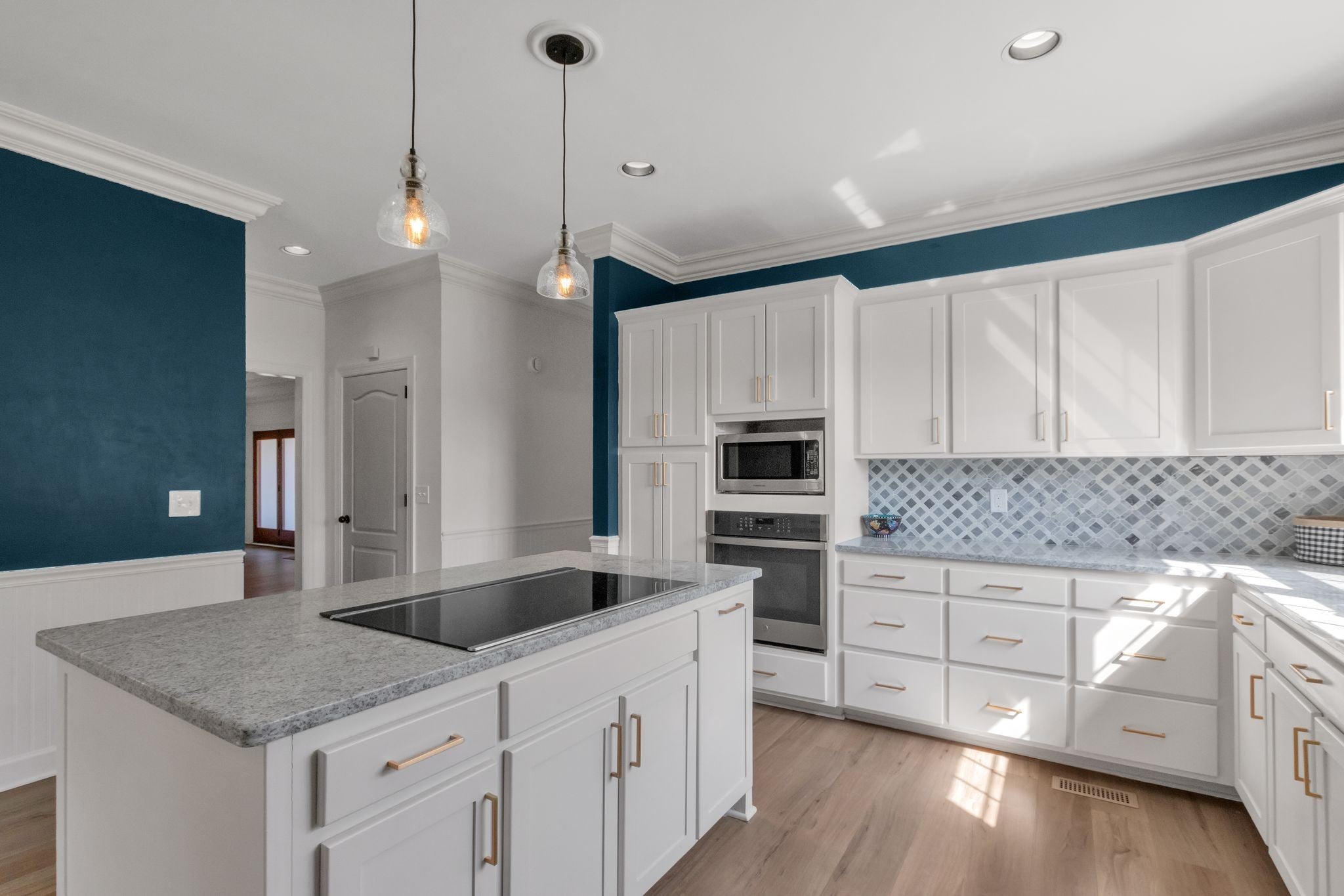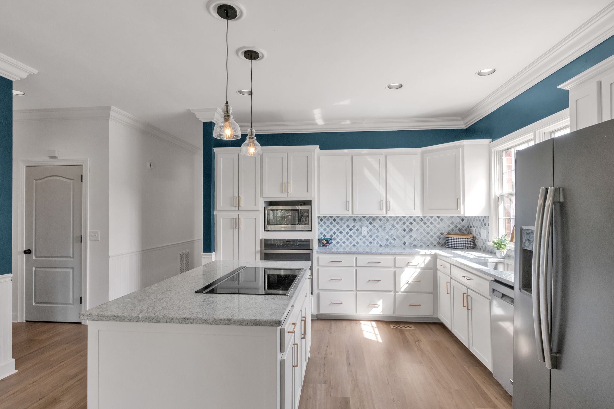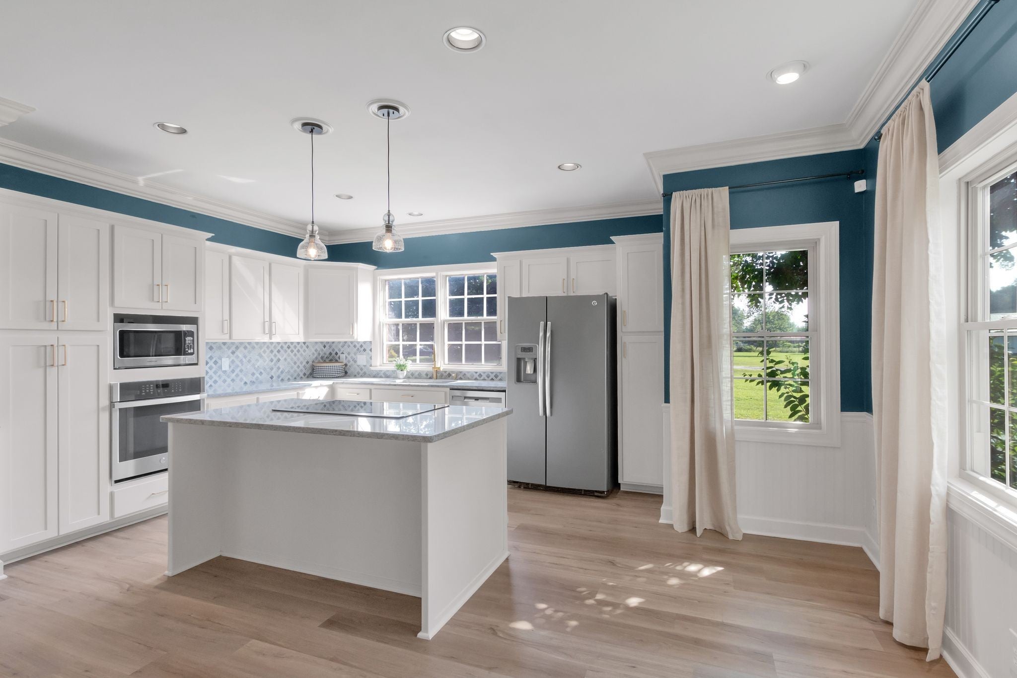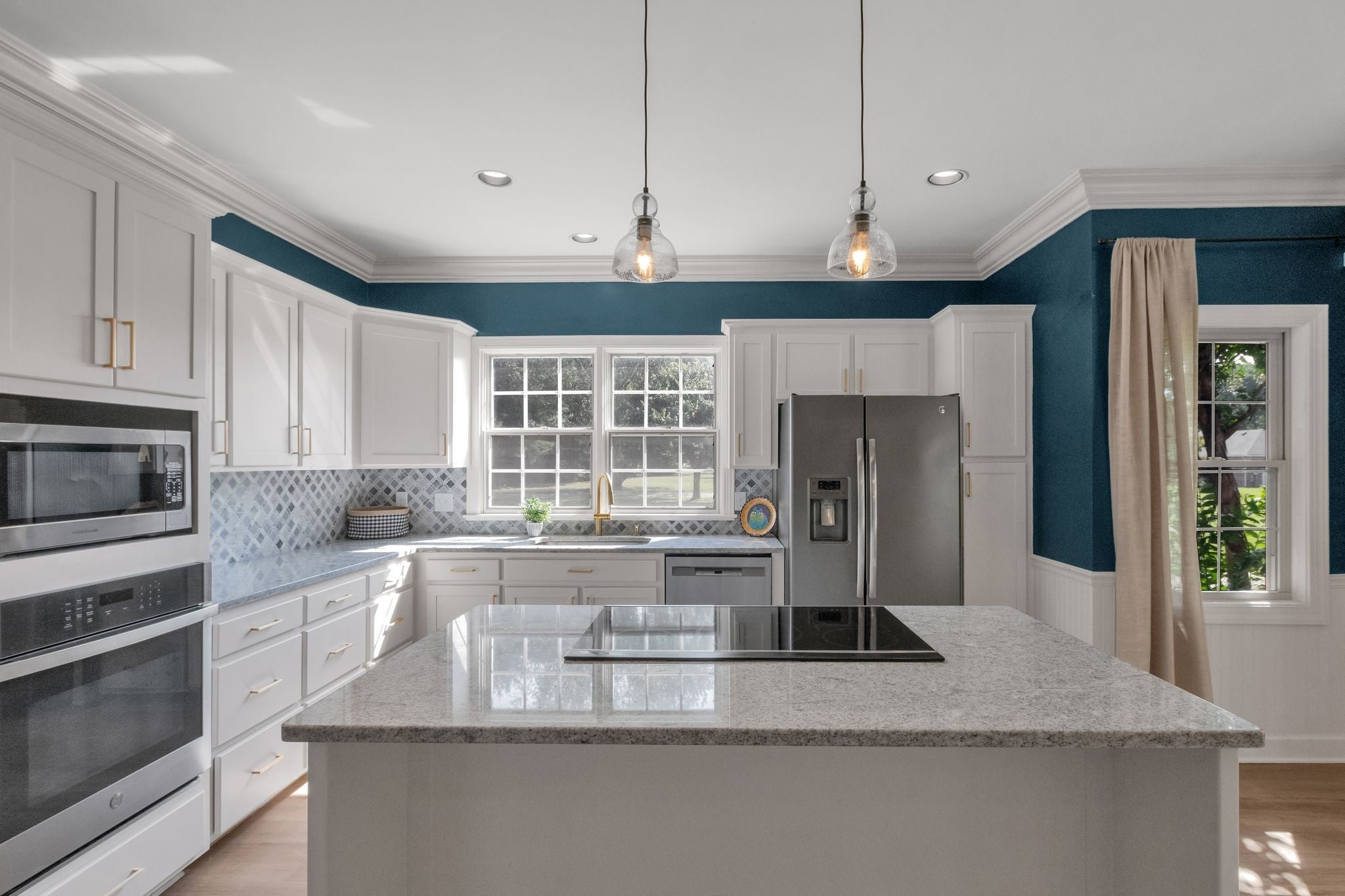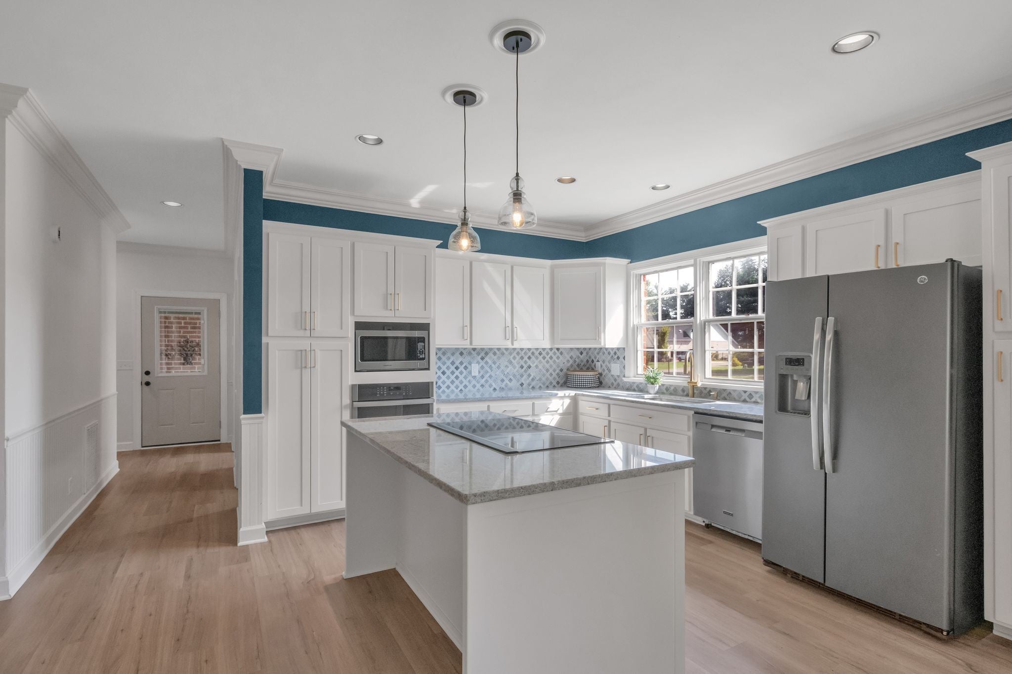 - Built-In Electric Oven, Cooktop, Dishwasher, Disposal, Dryer, Microwave, Refrigerator, Stainless Steel Appliance(s)