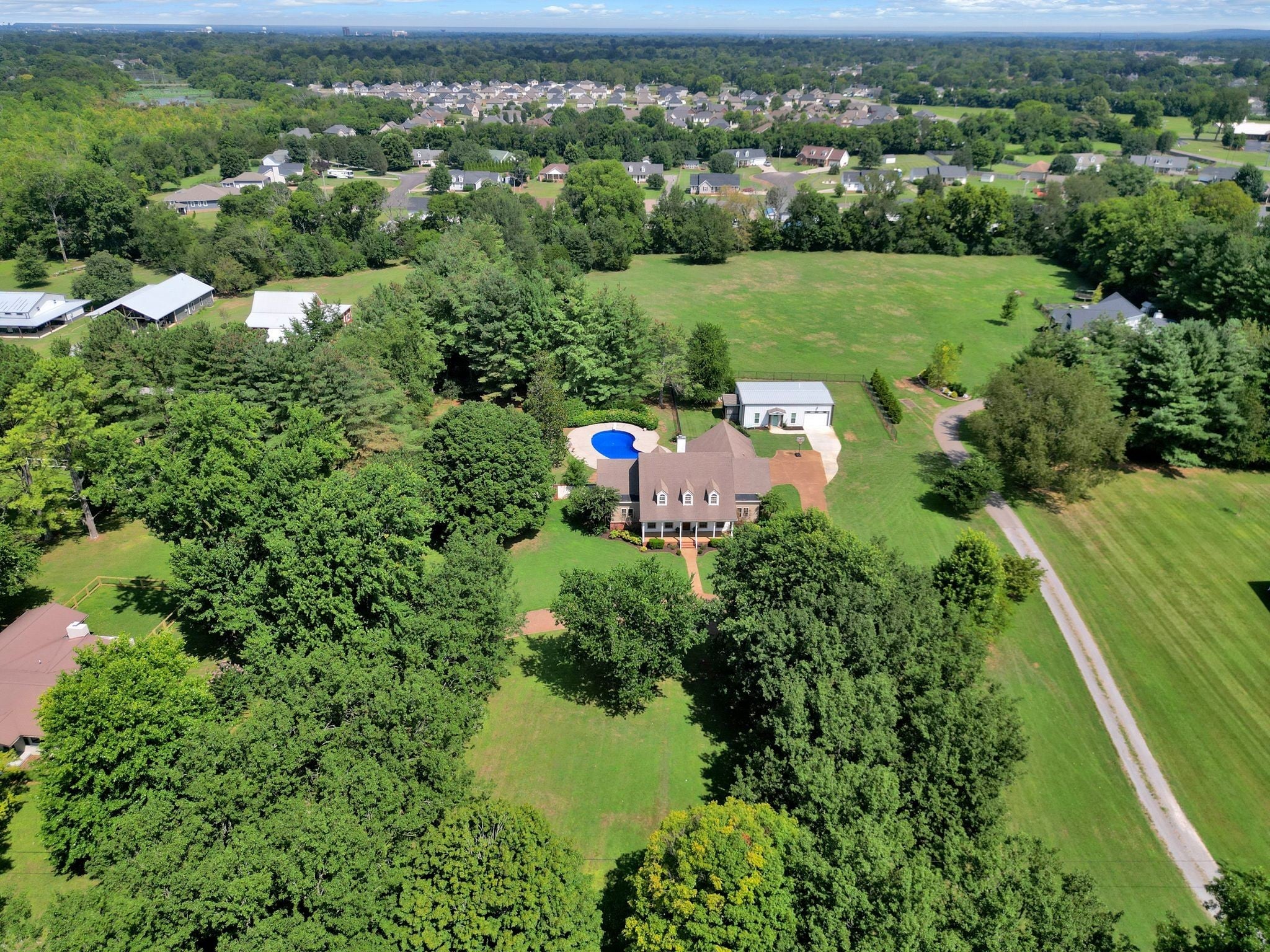 75K PRICE IMPROVEMENT ON THIS MULTI-GENERATIONAL PROPERTY! Welcome to 2329 & 2325 Irby Lane-(no steps to second home), a UNIQUE and HARD to find setup all on 2.36 beautiful acres only 5 minutes from a Publix and 7 minutes from MTSU! 26trees line the circular drive leading up to the Southern Living front porch! The 2 entrances are flanked with stately brick columns and wrought iron fencing. **A heated in-ground pool greats you from the huge TREX decking in the back.** Masonry and brick fence provide privacy for back yard** **1st floor features a true dining room, an office or (a great piano room)**Primary suite down has new modern shower and large soaking tub and a closet that is big enough for furniture or your own design** Kitchen has white cabinets and new countertops and backsplash Appliances including the INDUCTION cooktop are 4 years old**Fresh wall & door paint**New plumbing and light fixtures, LVP flooring, too many renovations and improvements have been made in the last 4 years to mention here. 2 bedrooms up with J&J bath and a finished storage/craft room in addition to the 4th bedroom up with Private bath and sitting room that can be a second primary suite. ***Now, the 4 year old second home is an 860 ft barndominium with 1 bdrm, walk-in shower, great room, dining area, screened in porch and oversized garage perfect for a rental or family needs. Call agent for more details on this one of a kind find in the heart of Murfreesboro!! *NOTE -INSPECTIONS WELCOMED but due to reduction in price home being sold AS-IS***Black chain fence to the right of 2nd home and back property line belong to owner on back property. **Home originally permitted for 3 bdrms, seller has new permit for 2nd home. Seller request 24 hr. notice and after 3 PM or later showings on 2nd home as it is occupied temporarily ( family with new baby ). (Main house-anytime-vacant.) Buyer or buyers agent to verify information important to them such as taxes, etc. Agent is related to seller.