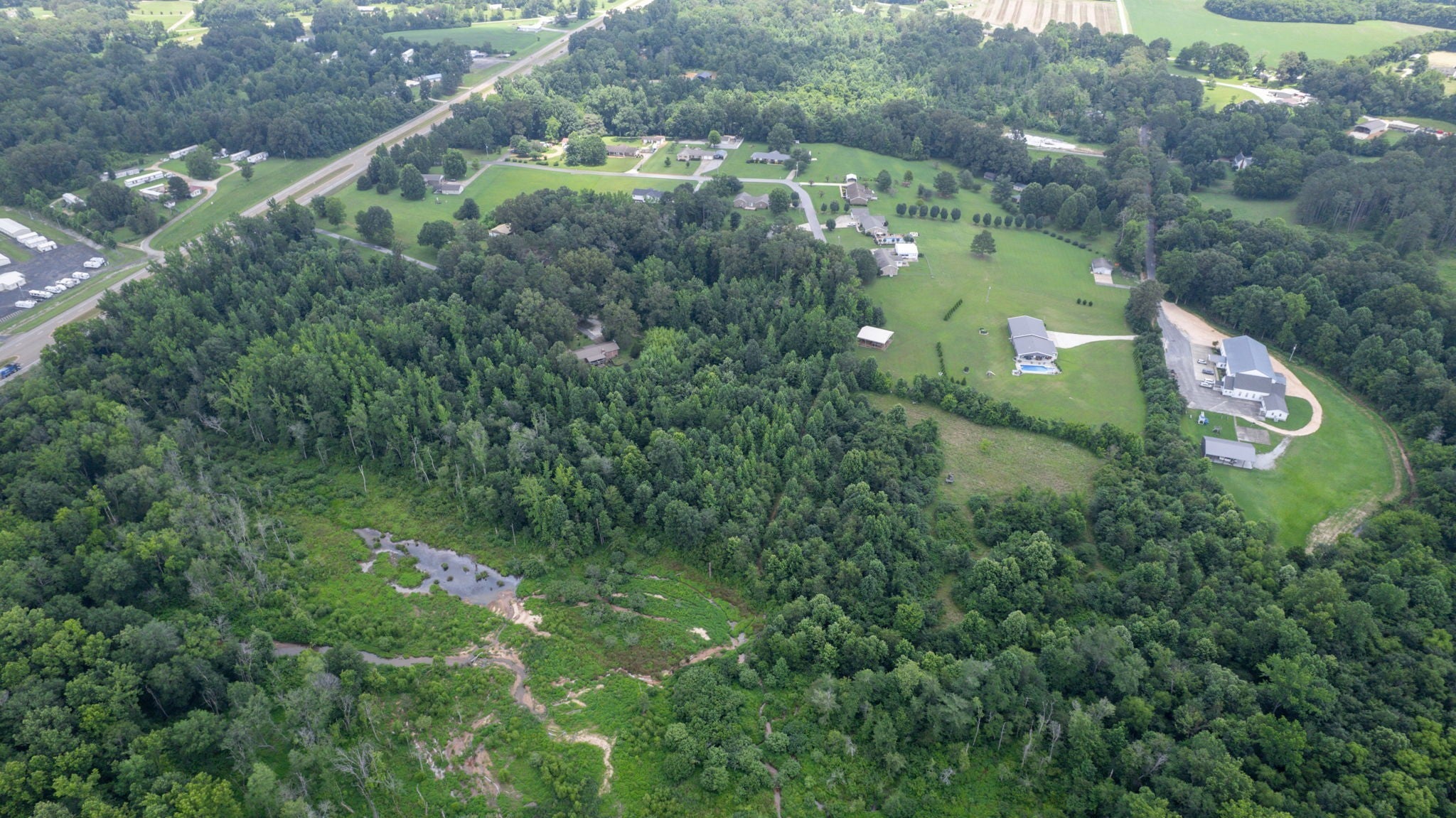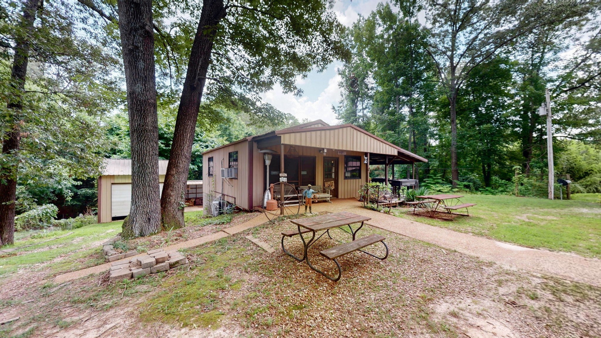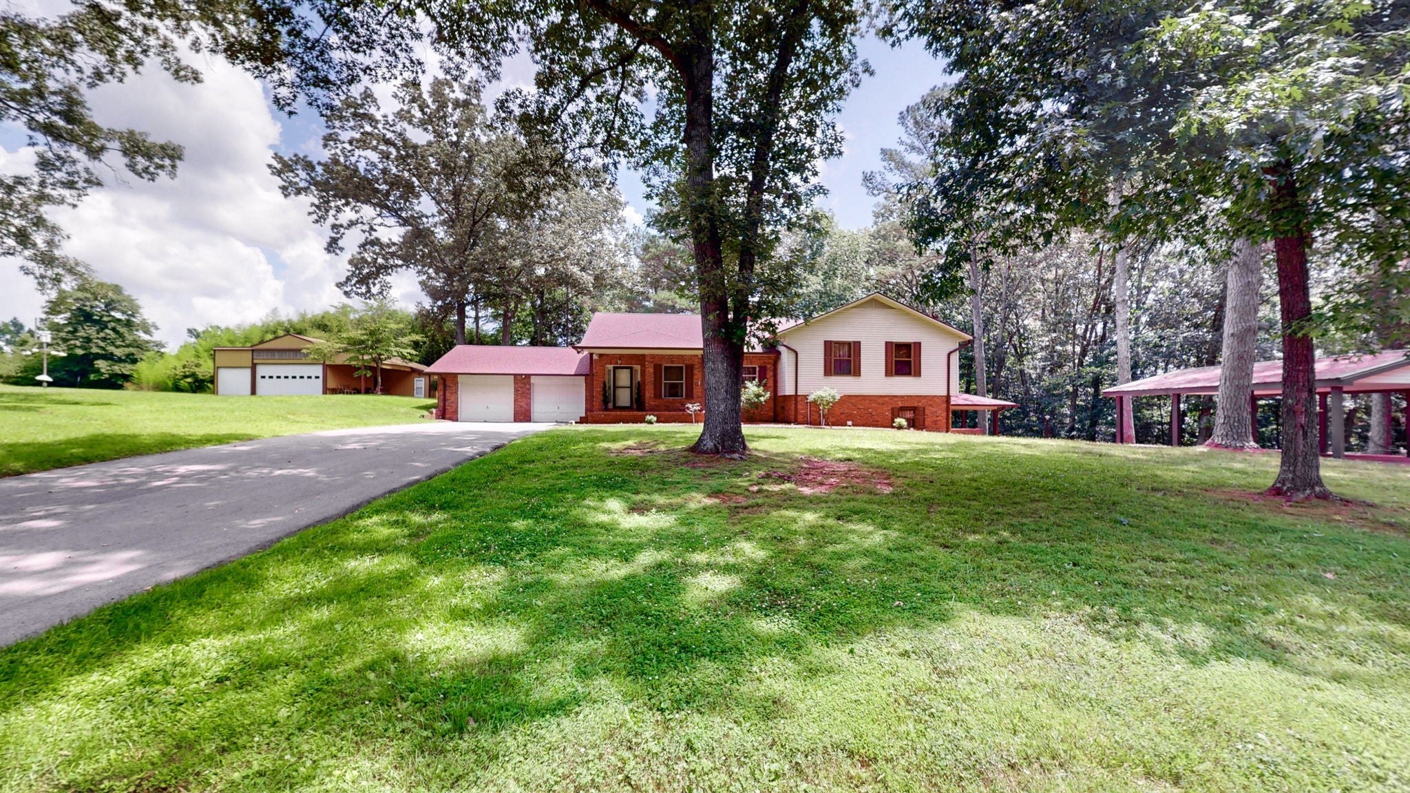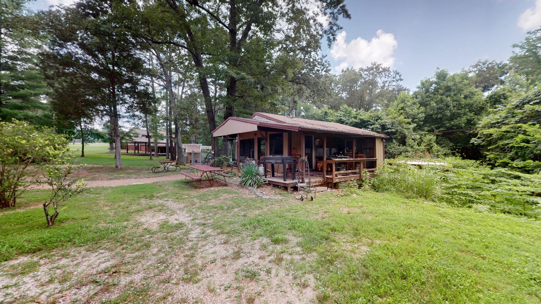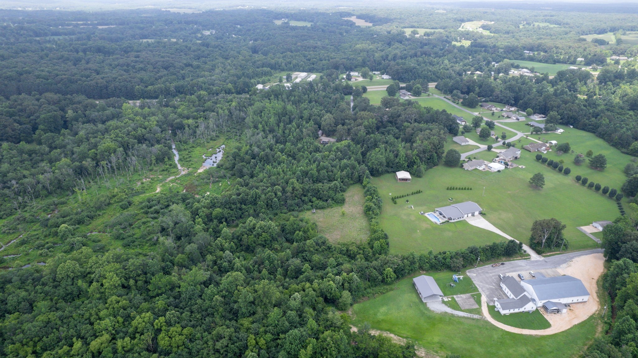 Secluded Paradise minutes from beautiful Kentucky Lake features approx. 20.8 ac +/-, immaculate 4 bedroom 3 bath home, finished basement, 9 ft, ceilings on main level of home with beautiful stone gas fireplace. Custom Kitchen on main level with granite counter tops, tile backsplash, eating bar, pantry area and ample cabinets with pull outs. Basement has additional full kitchen and dinette area off den area. 40x30 Metal building with propane tank & heat, finished 15x14 den featuring wood interior walls, stone & window unit. Add'l 30x24 Metal outbuilding with kitchen, oven, stove top, window unit, ductless h/c unit, flat screen tv, half bath, electric hot water tank, wood stove, roll up door, additional garage bay space & storage under, Additional Equipment shed located behind w/ even more storage space. Expansive dog runs, fenced area and dog shed/house. Mostly Locust Dr is a private Drive & will convey with sale. Neighbor to have easement to 160 Mostly Locust Dr.