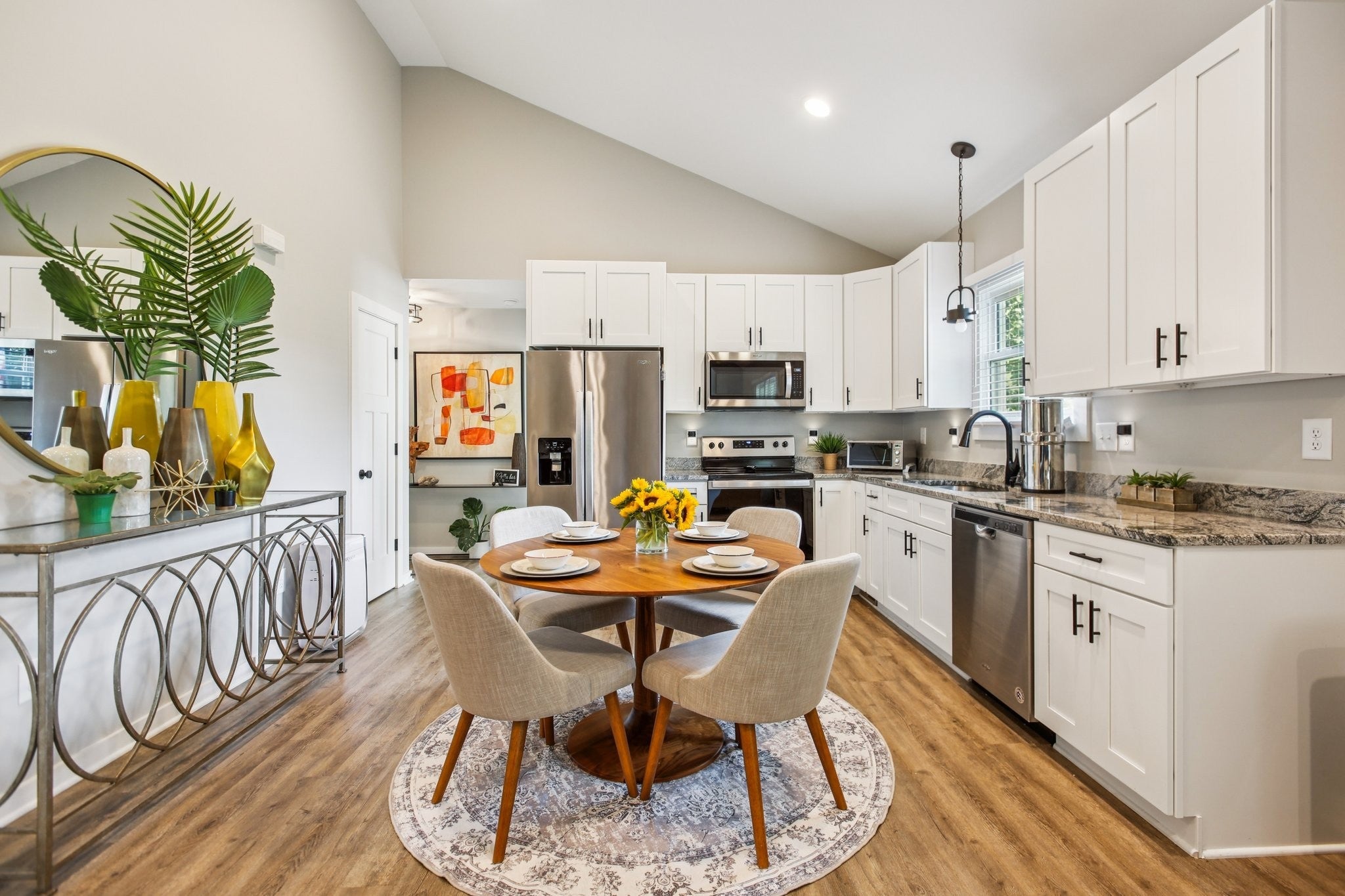 - Built-In Electric Oven, Built-In Electric Range, Dishwasher, Microwave, Stainless Steel Appliance(s)