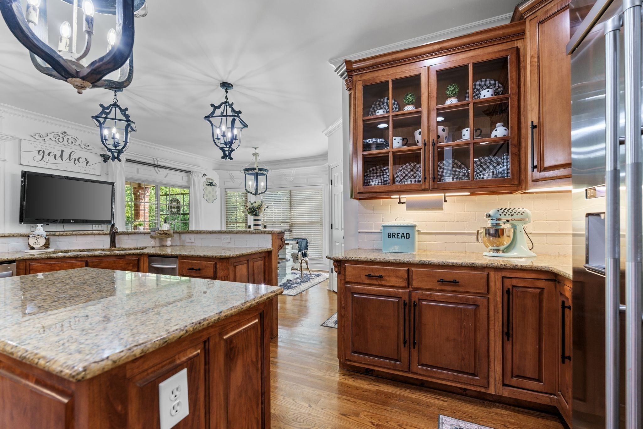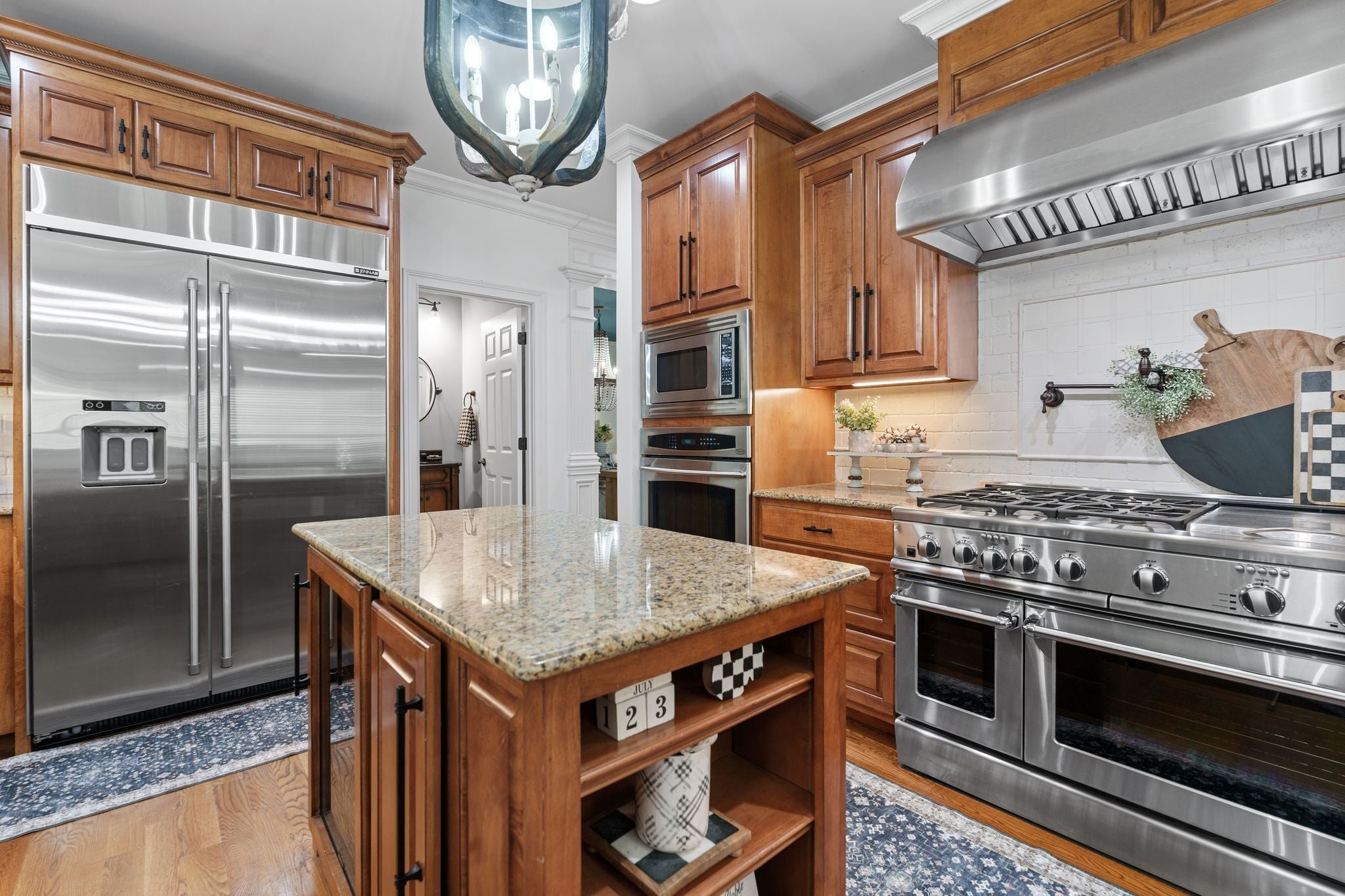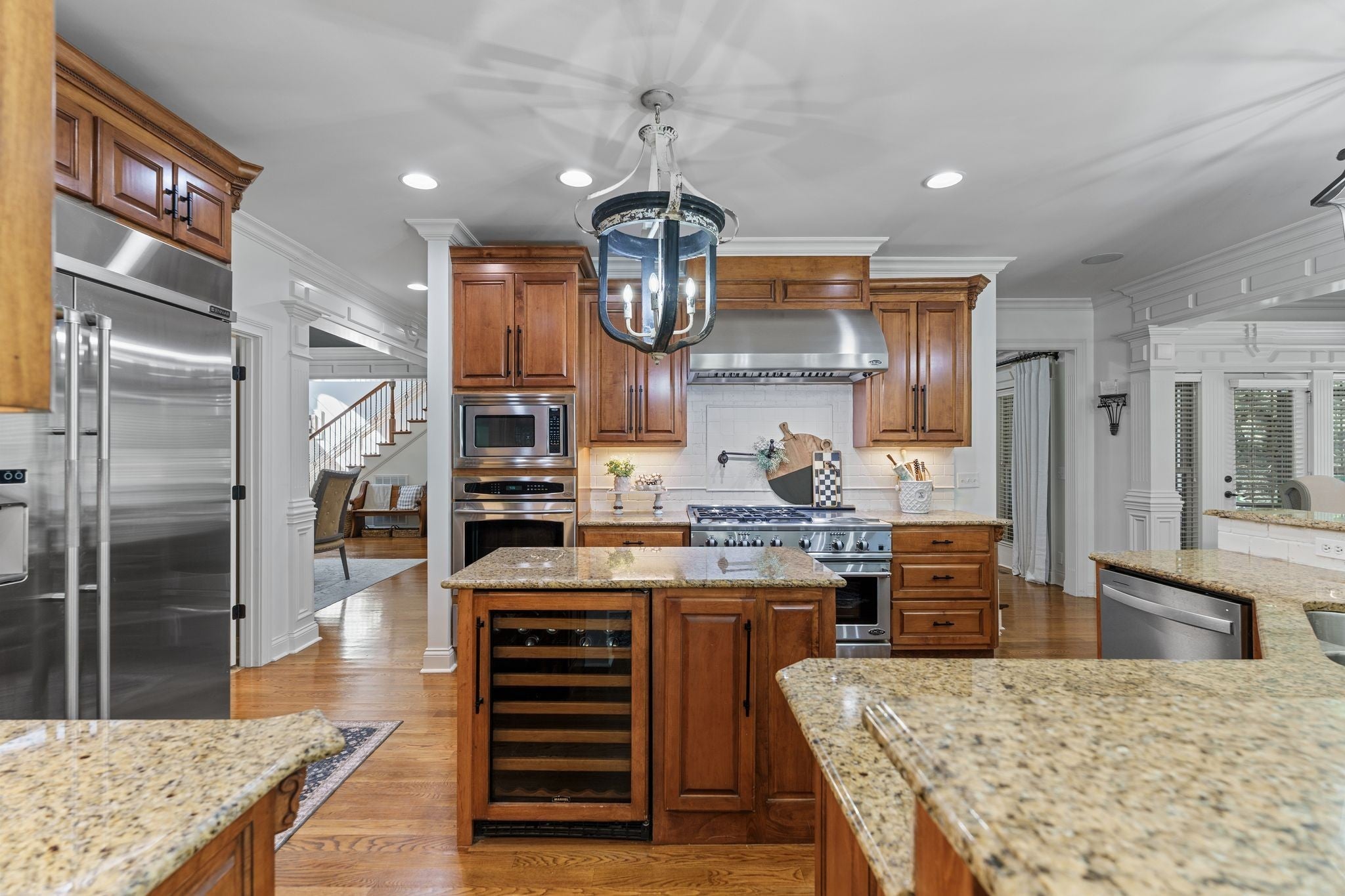 - Built-In Electric Oven, Built-In Gas Range, Trash Compactor, Dishwasher, Disposal, Ice Maker, Microwave, Refrigerator, Stainless Steel Appliance(s)
