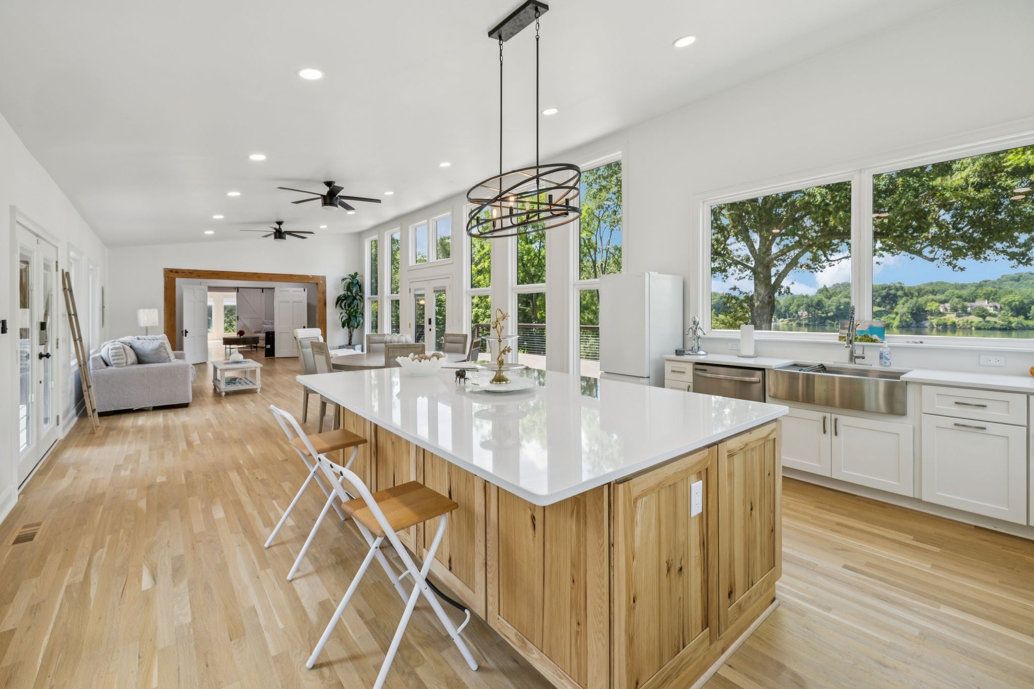 Discover an exquisite waterfront estate spanning 3 acres, where stunning water views grace every angle of the home. Nestled on a peninsula at the confluence of the Little River and the Tennessee River (Ft. Loudoun Lake), this property is a mere 10 minutes from downtown Knoxville, TN, seamlessly blending tranquility and accessibility The gently sloping lot ensures straightforward access to the waterfront, suitable for both foot and vehicle traffic. This property is a distinctive opportunity, combining comfortable living with versatile expansion options. Reach out to us with any inquiries or to arrange a virtual or in-person tour of this remarkable estate. Recently transformed, the home boasts a brand-new 1,000-square-foot vaulted great room, highlighted by a striking wall of windows that captures breathtaking lake vistas, flooding the space with natural light. Every aspect of the interior has been meticulously upgraded, merging modern elegance with practical comfort. Enhancing the estate is a versatile detached building, poised for your imagination. Whether you dream of a chic guesthouse, an inspiring home office, an art studio, or a workshop, this flexible space adapts to your lifestyle. Experience the perfect harmony of luxury living and captivating natural beauty at this unparalleled waterfront sanctuary. The gently sloping lot ensures straightforward access to the waterfront, suitable for both foot and vehicle traffic. This property is a distinctive opportunity, combining comfortable living with versatile expansion options. Reach out to us with any inquiries or to arrange a virtual or in-person tour of this remarkable estate.