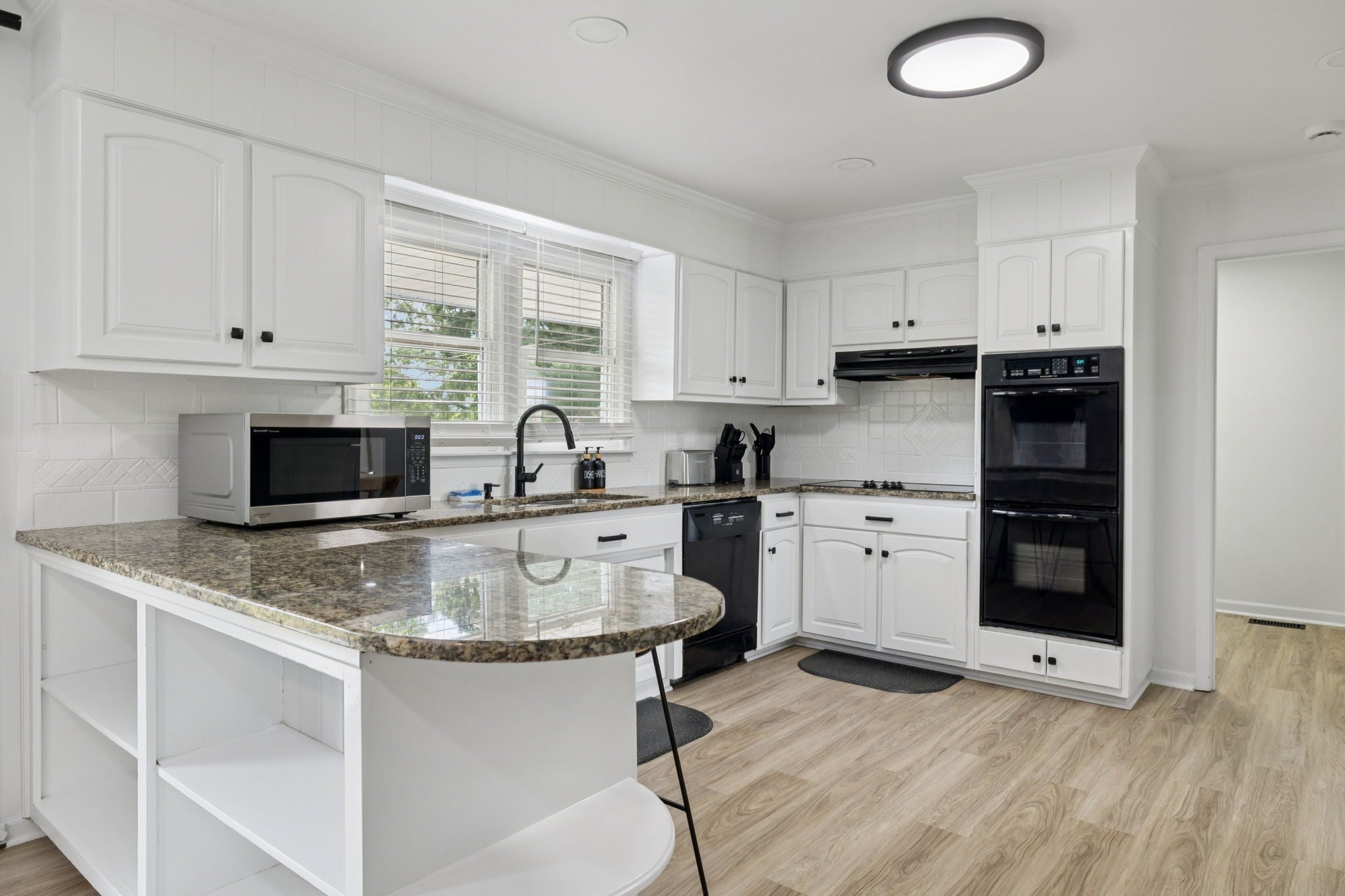 - Double Oven, Cooktop, Dishwasher, Microwave, Refrigerator
