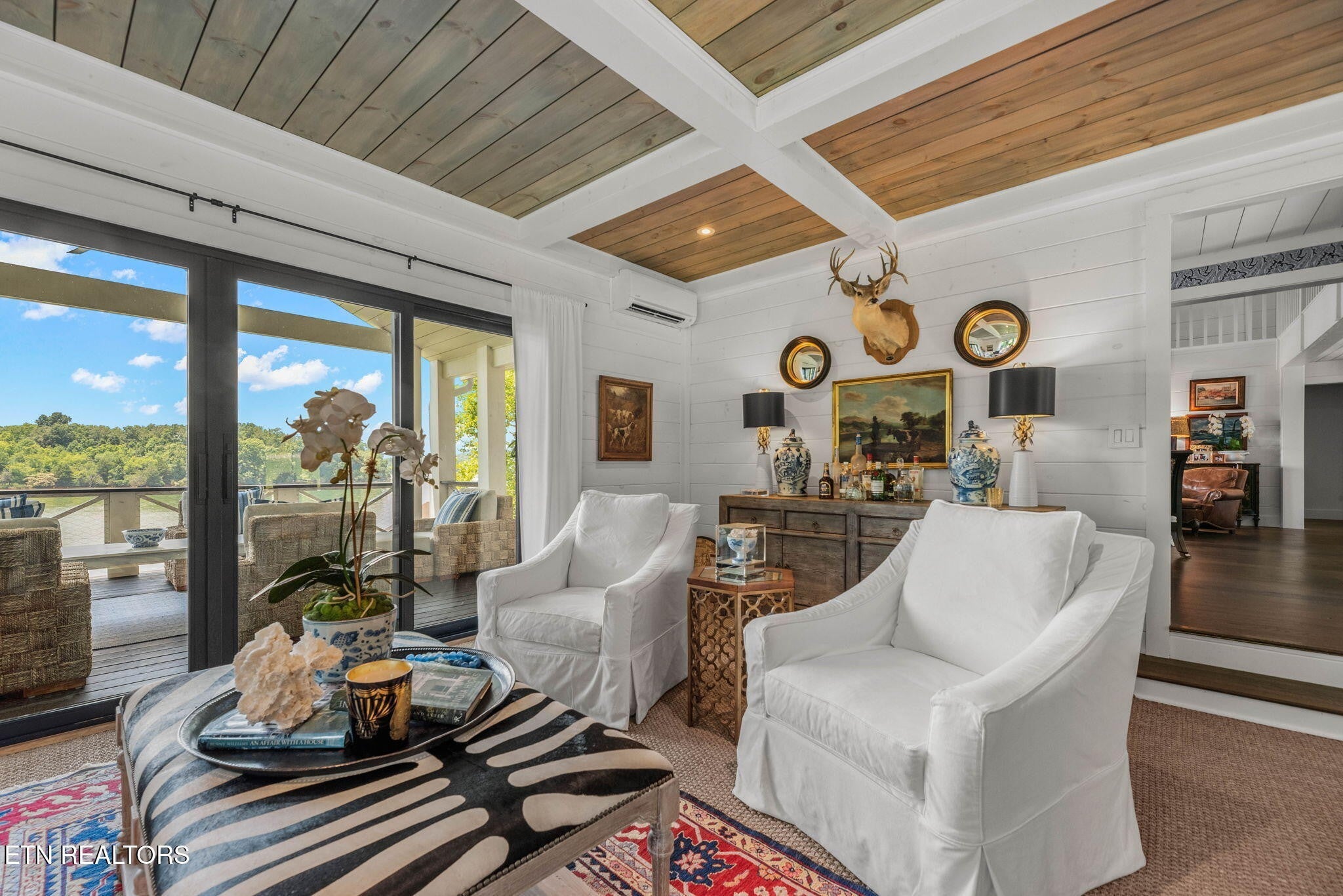 Live Inspired. Live Relaxed. Live Lakeside. Welcome to Your Dream Home - From the moment you arrive, it's clear—this home is something special... This Lakeside Retreat blends Effortless Elegance and Serene Charm. Professionally designed inside and out, with every detail thoughtfully appointed to create a coastal-inspired escape that blends luxurious comfort with the breezy charm of the British West Indies. Perched on year-round with main channel water views, this resort-like retreat offers over 3,670 sq ft of open and airy living space, infused with natural light and surrounded by expansive verandas designed for both relaxation and grand entertaining. Step inside and experience: 2 bedrooms (sellers currently using home as 4 bedrooms, septic permit for 2 bedrooms) | 3.5 baths, Owner's suite on the main level with tranquil lake views, Great room and Family room perfect for gathering , Chef's inspired kitchen with a sleek granite island and a premium Bertazzoni Italian induction range-and all Premium stainless appliances included. This outdoor paradise continues with Covered lakeside dock with lift, Custom-built teakwood grilling station, Outdoor TV entertainment area - ready for game days or sunset movie night, Ample walk-in outdoor storage for all your lakeside essentials. Designed for effortless entertaining and everyday serenity, this lakeside gem captures the heart of luxury living with a laid-back coastal soul. RSVP now to schedule your private showing—Be Careful you may not want to leave !!
