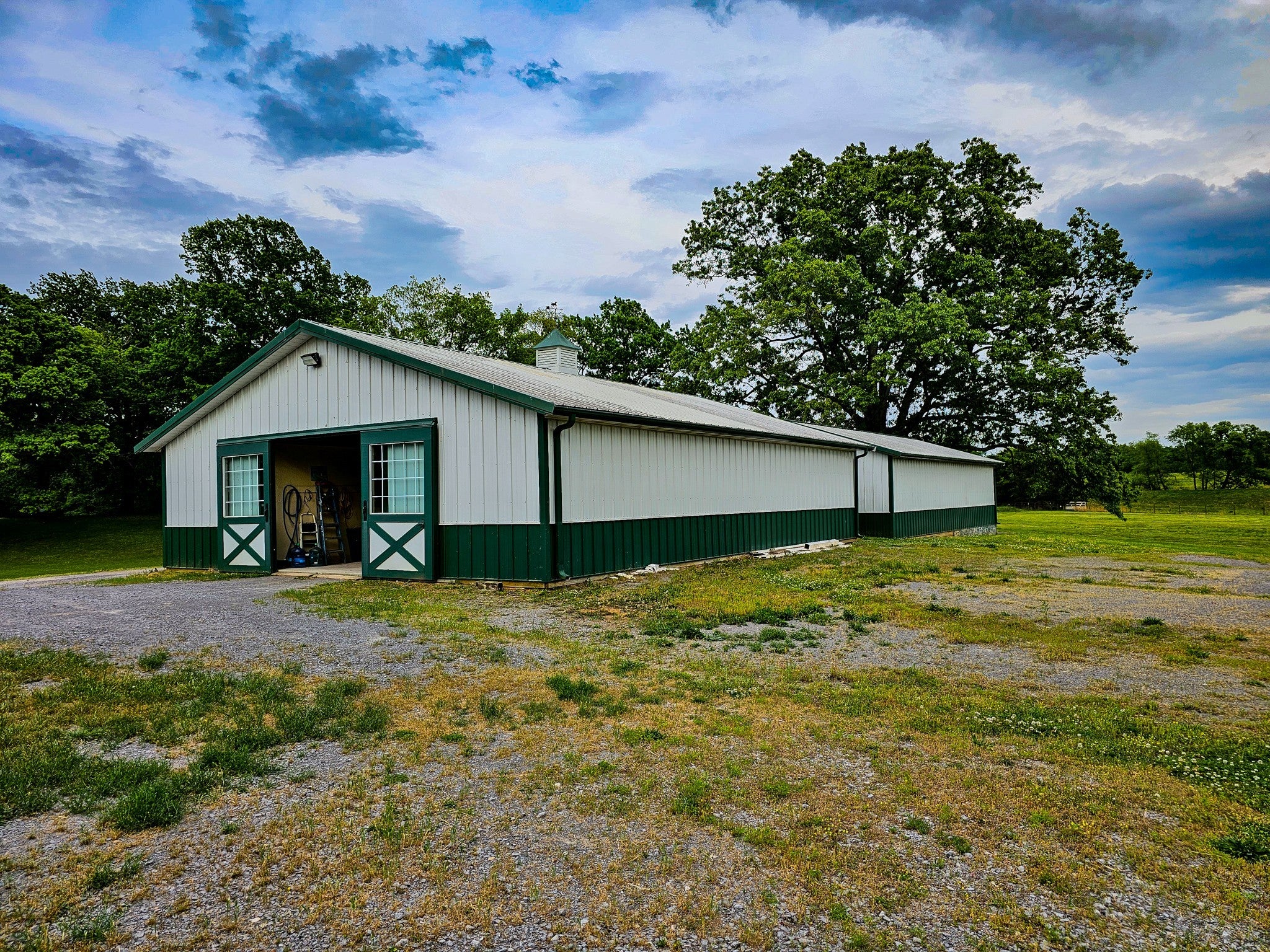17 stall Morton barn with gas heat, washroom, grooming area, tack room and bathroom with washer/dryer and refrigerator. Room to add more stalls. 2025 sq. ft. +/- home with 2 bedrooms and 2 baths. Bonus room that can serve as an additional bedroom. Extra-large patio. 3 additional barns/sheds on property. White vinyl fencing along road. Gorgeous pastures and beautiful wooded trails perfect for relaxing walks or horse rides. Peaceful setting with lots of wildlife. Must have 24 hour notice to show. Must have pre-approval or proof of funds to view property. Owner/agent. Contact agent for showing. 615-289-7137.