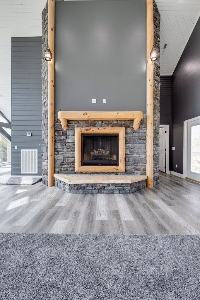- Stone, Wood Siding