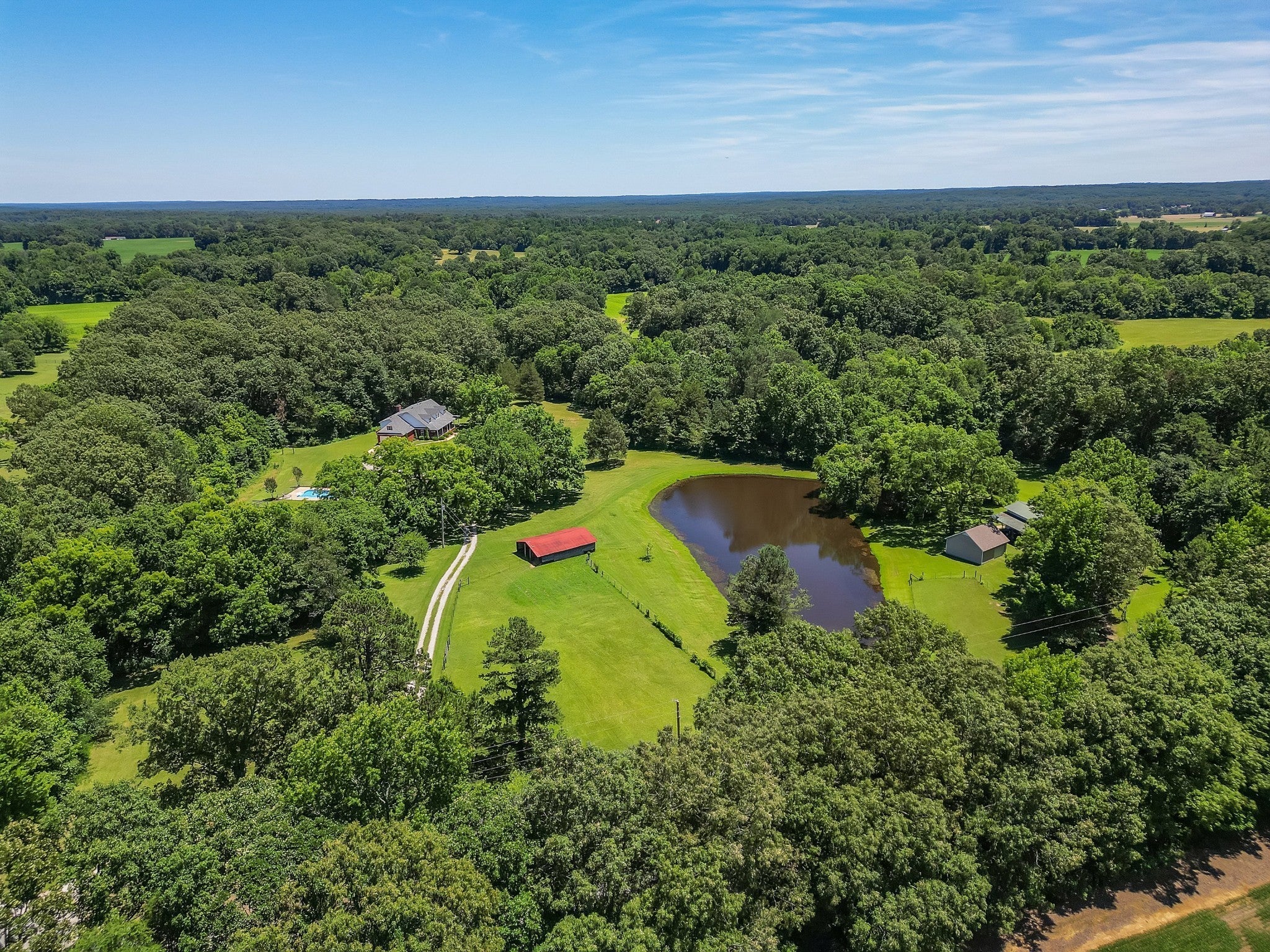 Looking to get away from it all? Then check out this 61 acre property. Complete with Pool, 30x19 Barn, 24x24 Wired Workshop, Fenced Pastures, Row Crop, Woods and Wildlife. Top it all off with a 4100 square foot custom built, one owner 6 bed 4 bath house over looking a pond. All new bathrooms and paint. Granite countertops, custom wood cabinetry, and large pantry. Hardwood Floors. 2 Car attached garage and tons of storage. 16x20 Deck and more! Call your favorite Realtor for more information today.