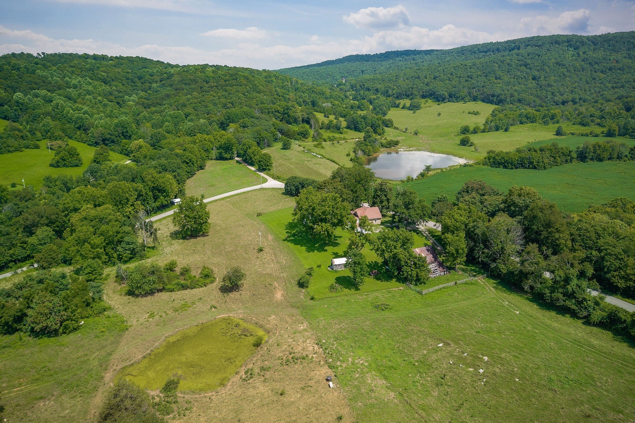 Unrestricted 70-acre farm with breathtaking views, ready for your vision! This beautiful property is fully fenced and features a charming farmhouse full of potential—just needs a little TLC to shine. Enjoy wide open spaces, rolling pastureland, and peaceful privacy. A detached garage and barn offer ample storage and space for equipment or animals. Whether you're dreaming of a working farm, private retreat, or homestead, this rare opportunity has endless possibilities. Come make it your own!