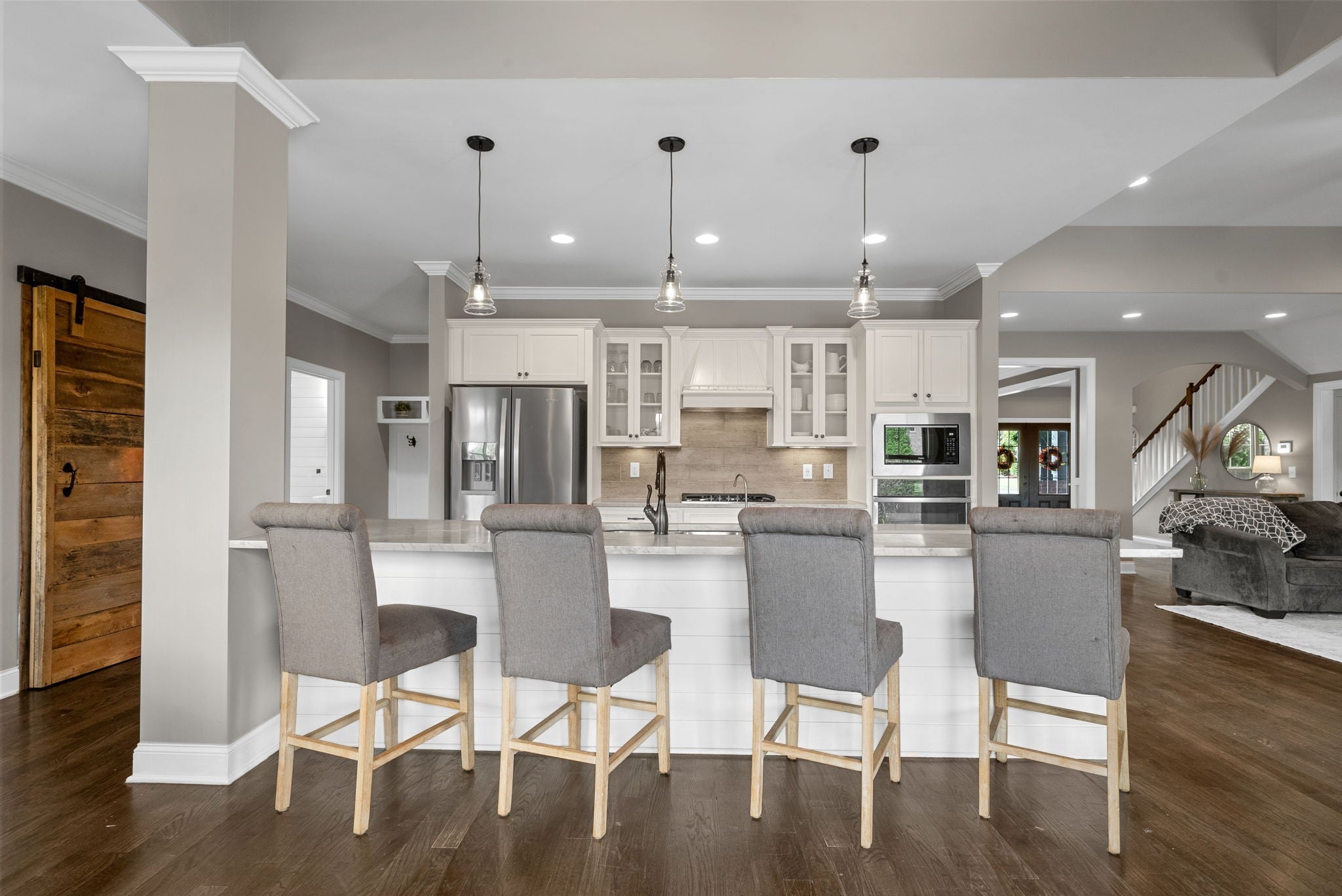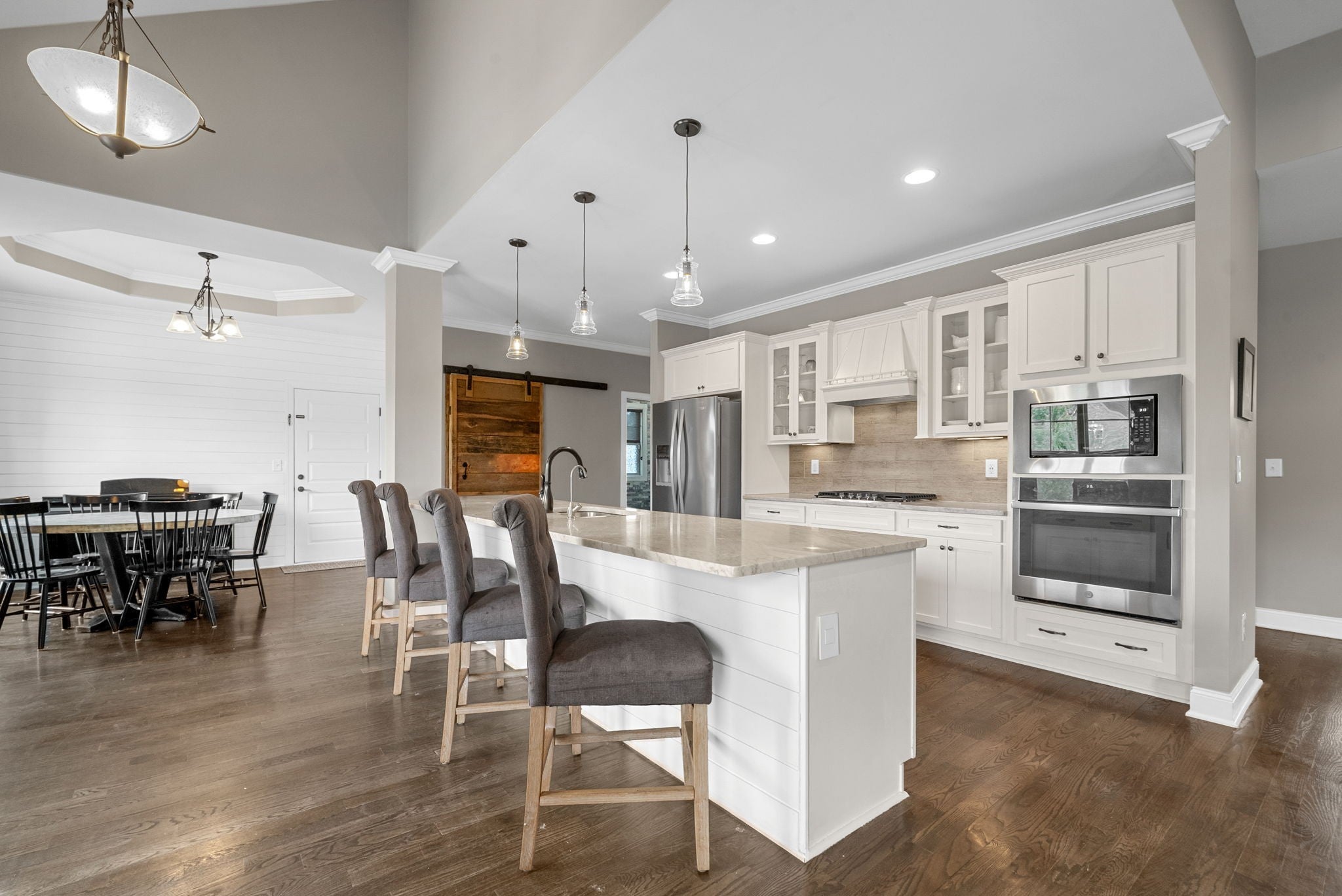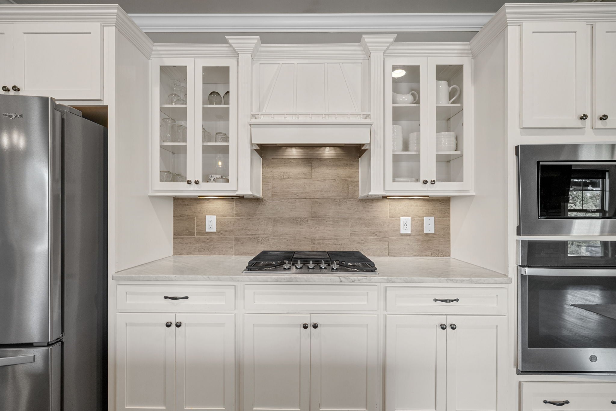 - Built-In Electric Oven, Built-In Gas Range, Dishwasher, Disposal, Ice Maker, Microwave, Refrigerator, Stainless Steel Appliance(s)