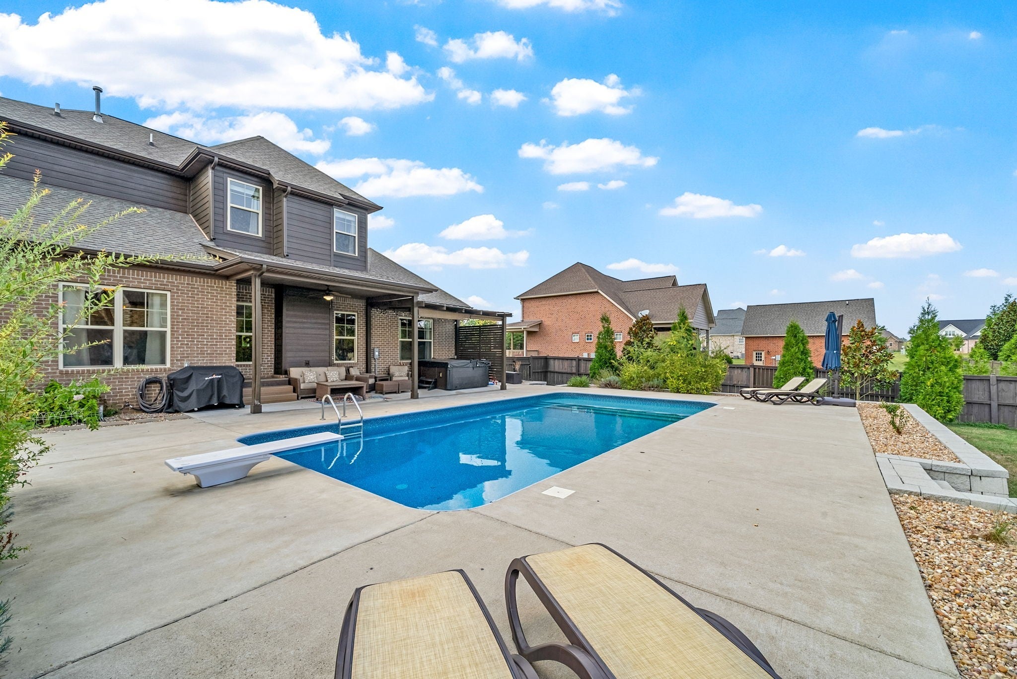 Experience luxury living in a family-friendly subdivision, nestled in one of the area’s most sought-after neighborhoods with sidewalks and underground utilities. This beautifully appointed 4-bedroom, 3.5-bath home is situated on a premium corner lot and offers an ideal blend of elegance and comfort. The primary suite is on the main level featuring a private ensuite with double vanity, walk in shower, and relaxing soaking tub. Upstairs you'll find three additional bedrooms, two full bathrooms, and a raised bonus room—perfect for a media space, home office, or playroom. The open kitchen includes both a casual breakfast room and a formal dining space, making entertaining effortless. A spacious 3-car garage with a carriage bay offers additional charm and functionality. Step into your backyard oasis complete with a covered patio, relaxing hot tub, and a beautifully landscaped pool—your personal paradise awaits. This home is the total package for luxury and lifestyle.